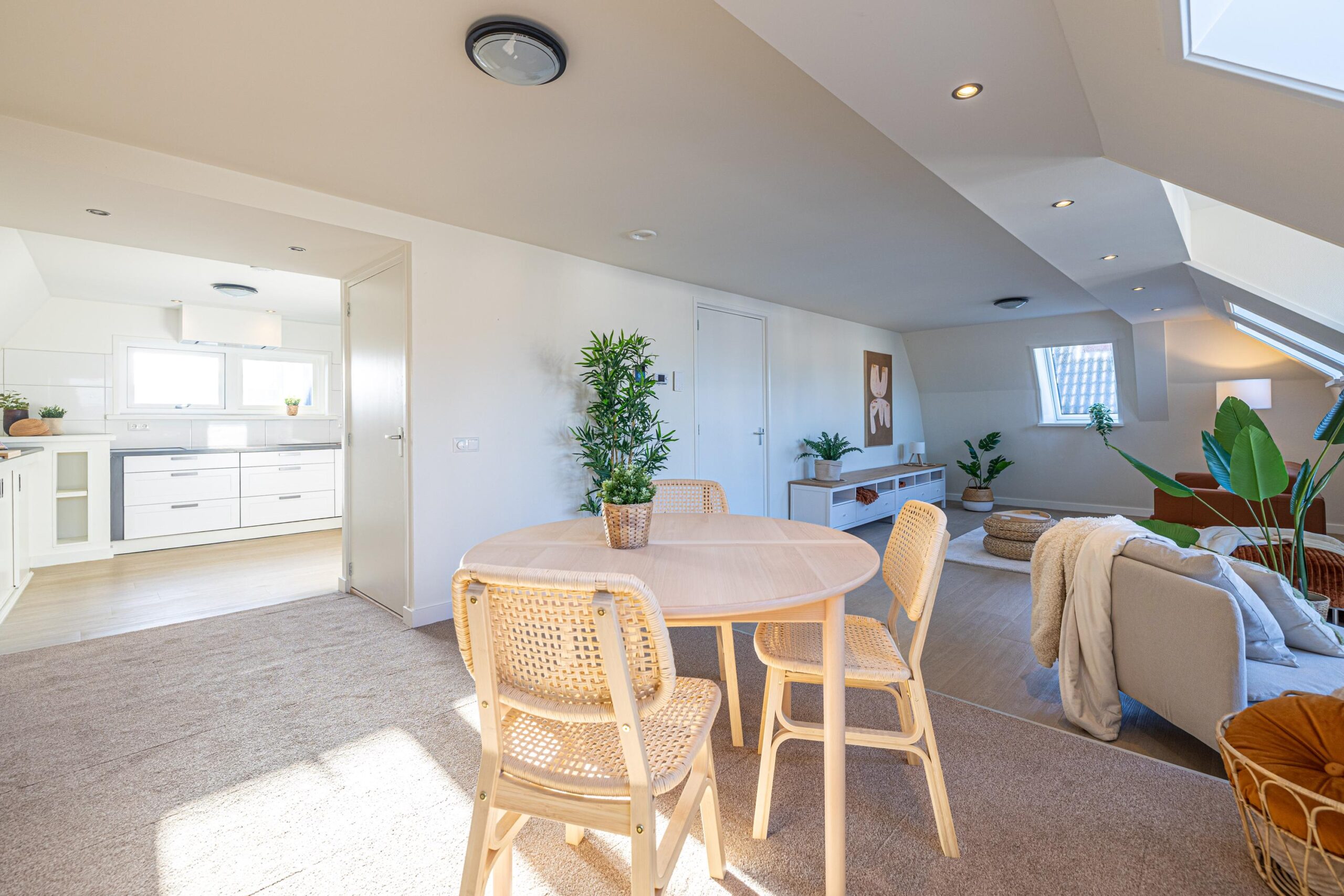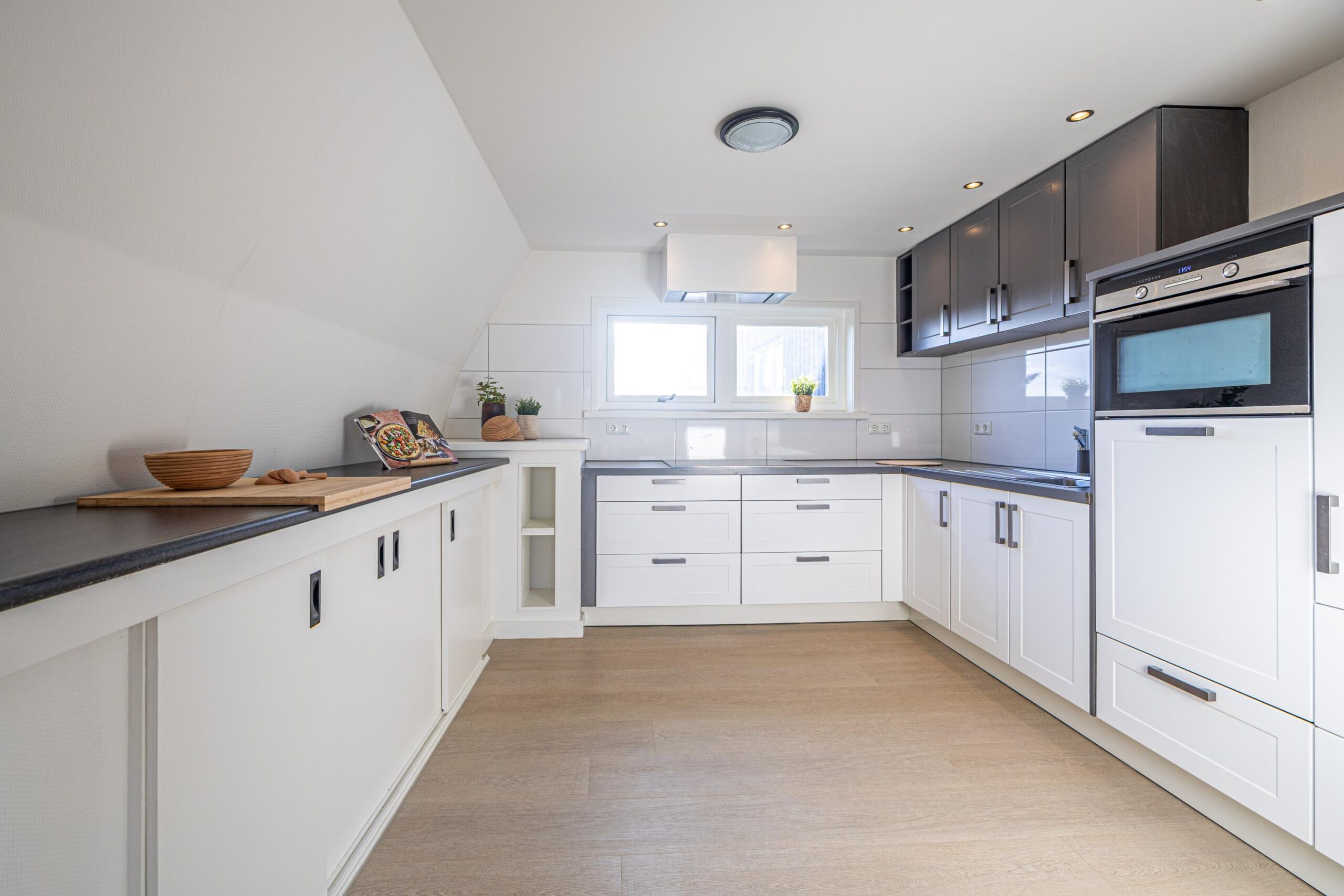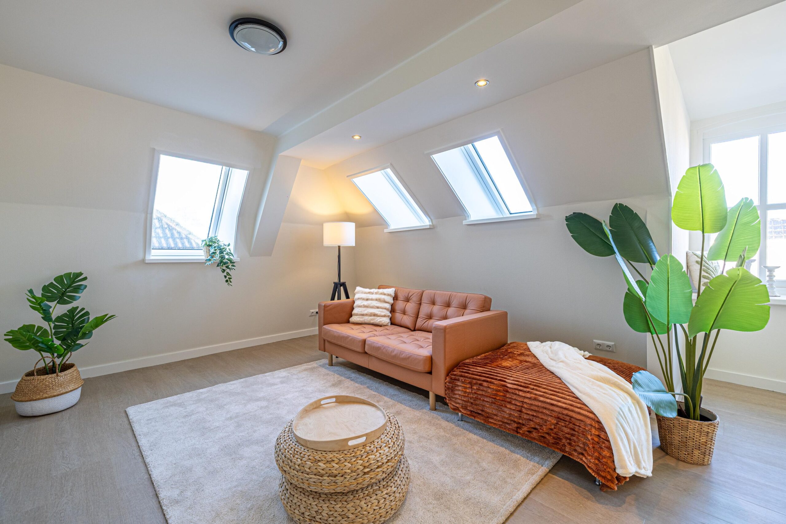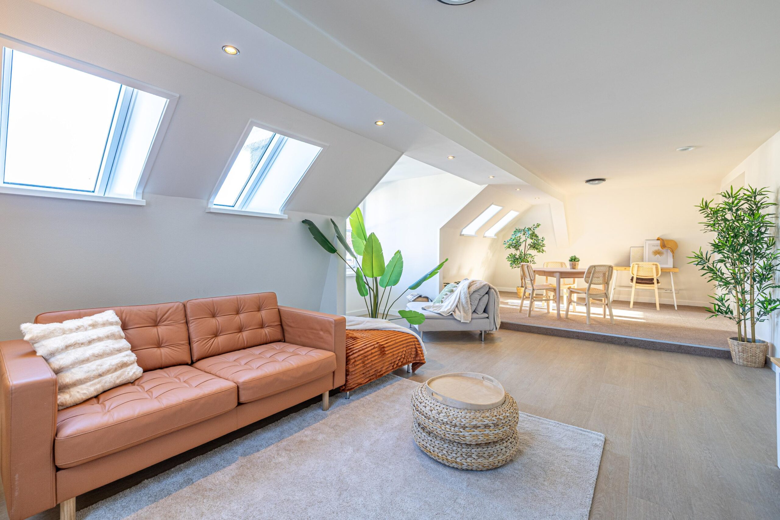 Via de zijkant van het pand is de bovenwoning bereikbaar. Op de begane grond heb je een eigen en separate ingang met eigen stroom- en watermeter. Op de verdieping heeft de woning een kleine hal/overloop met toegang tot de royale woonkamer. Door de vele dakramen en het royale dakkapel heb je hier veel lichtinval. De woonkamer is tevens ruim genoeg om eenvoudig een wand te plaatsen, waardoor een extra (slaap)kamer kan worden gerealiseerd. Vanuit de woonkamer met eethoek stap je door naar de moderne keuken, die in 2025 is geplaatst en is uitgerust met diverse inbouwapparatuur. Tevens bevindt zich hier een aansluiting voor de wasmachine. Het appartement beschikt verder over één ruime slaapkamer en een fraaie, luxe badkamer met toilet, wastafel en inloopdouche. De technische ruimte bevind zich te midden van het appartement. Hier zijn de binnenunit van de lucht-water warmtepomp (Bosch) met een 50 liter buffervat, evenals de omvormer en de WTW-unit gesitueerd. Op het platte dak bevinden zich de zonnepanelen en de buitenunit van de warmtepomp.