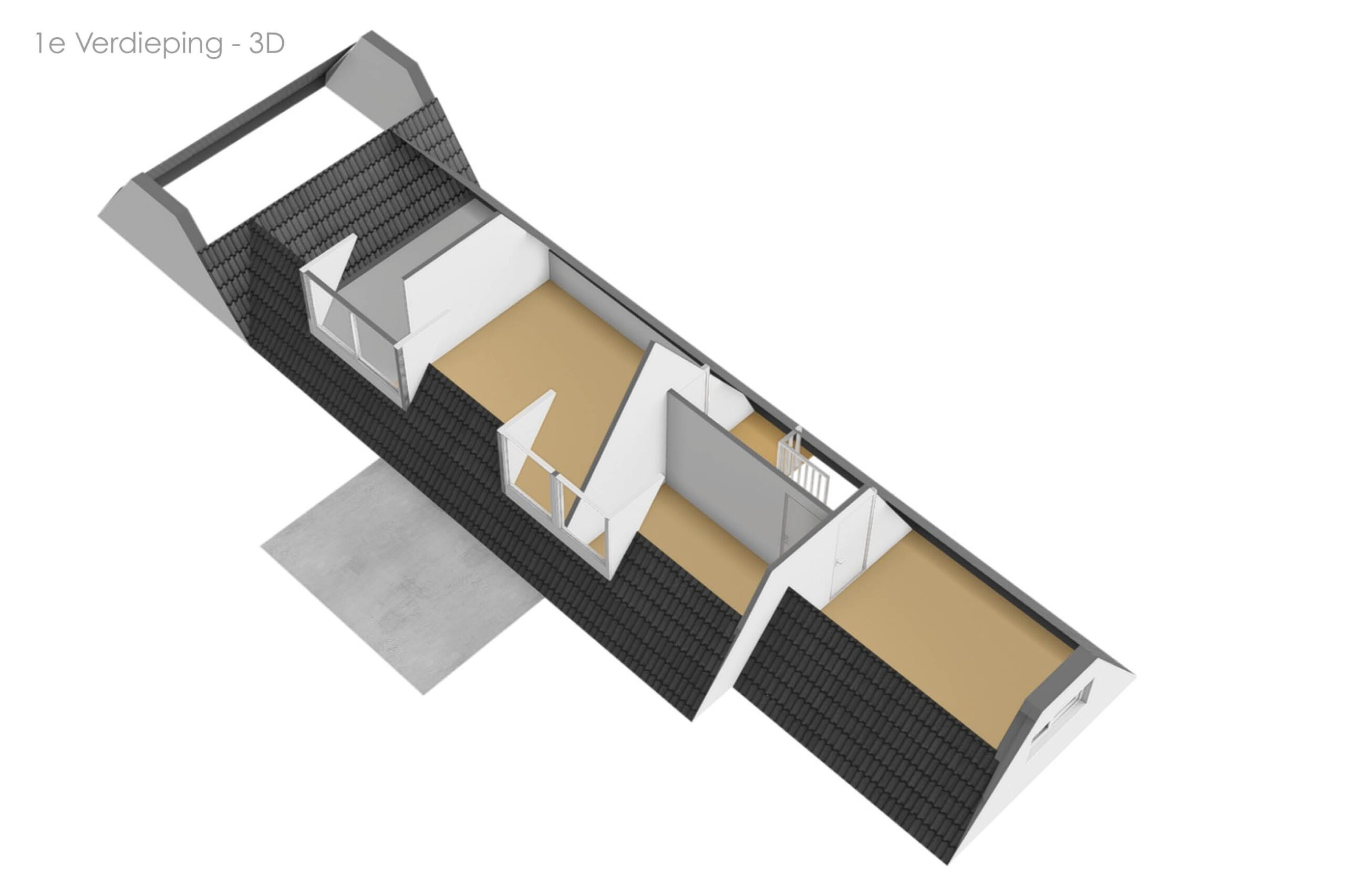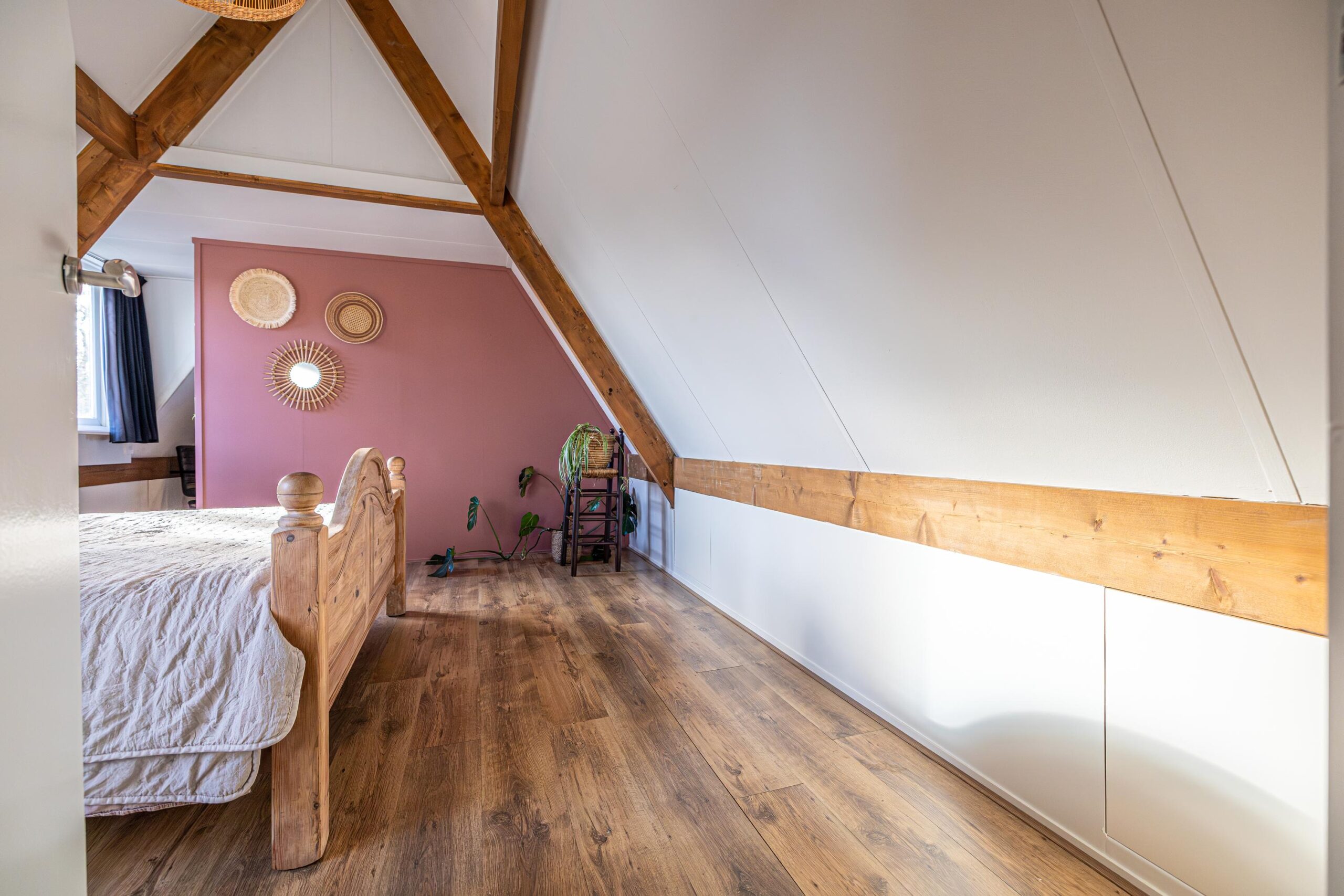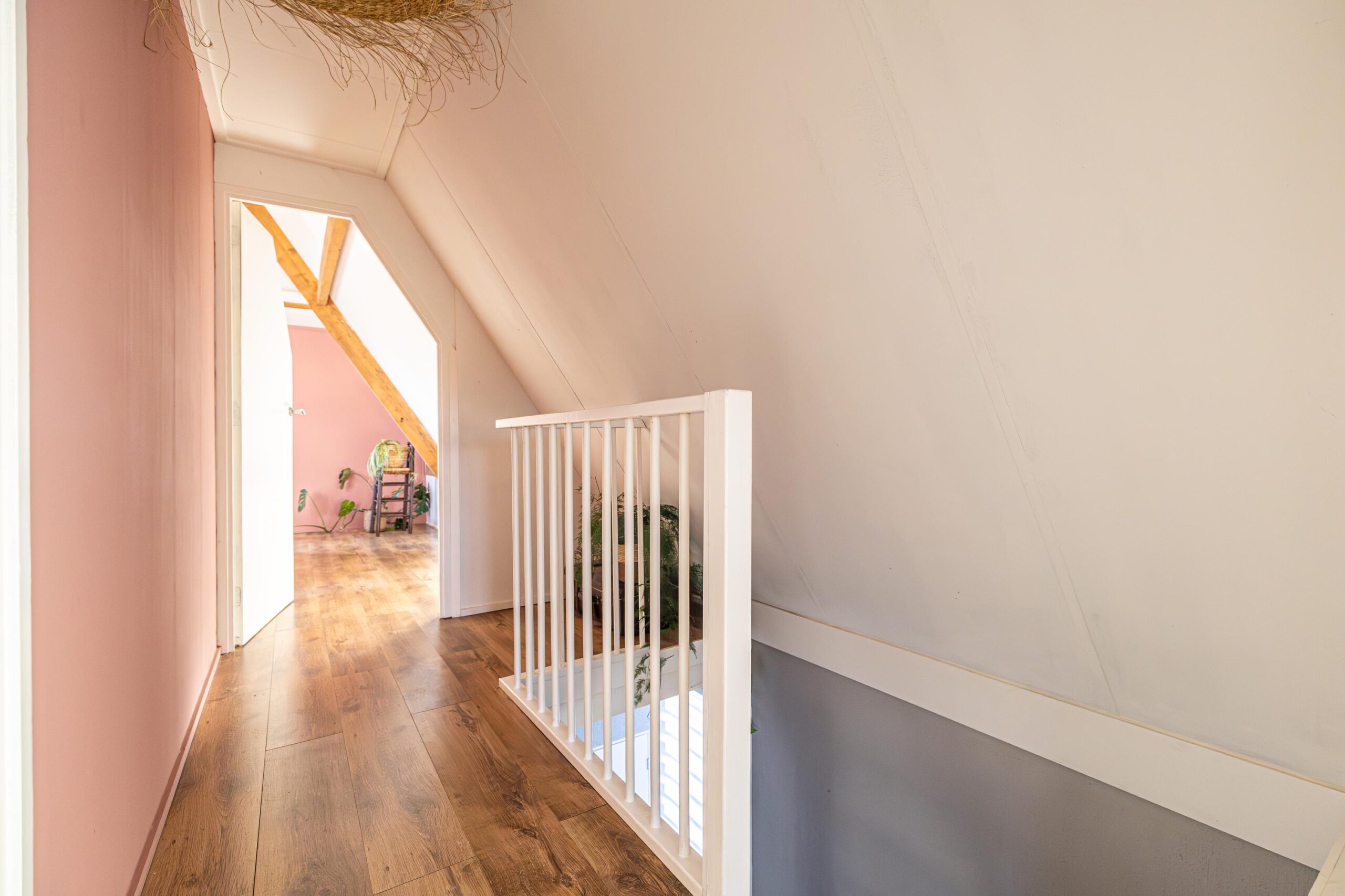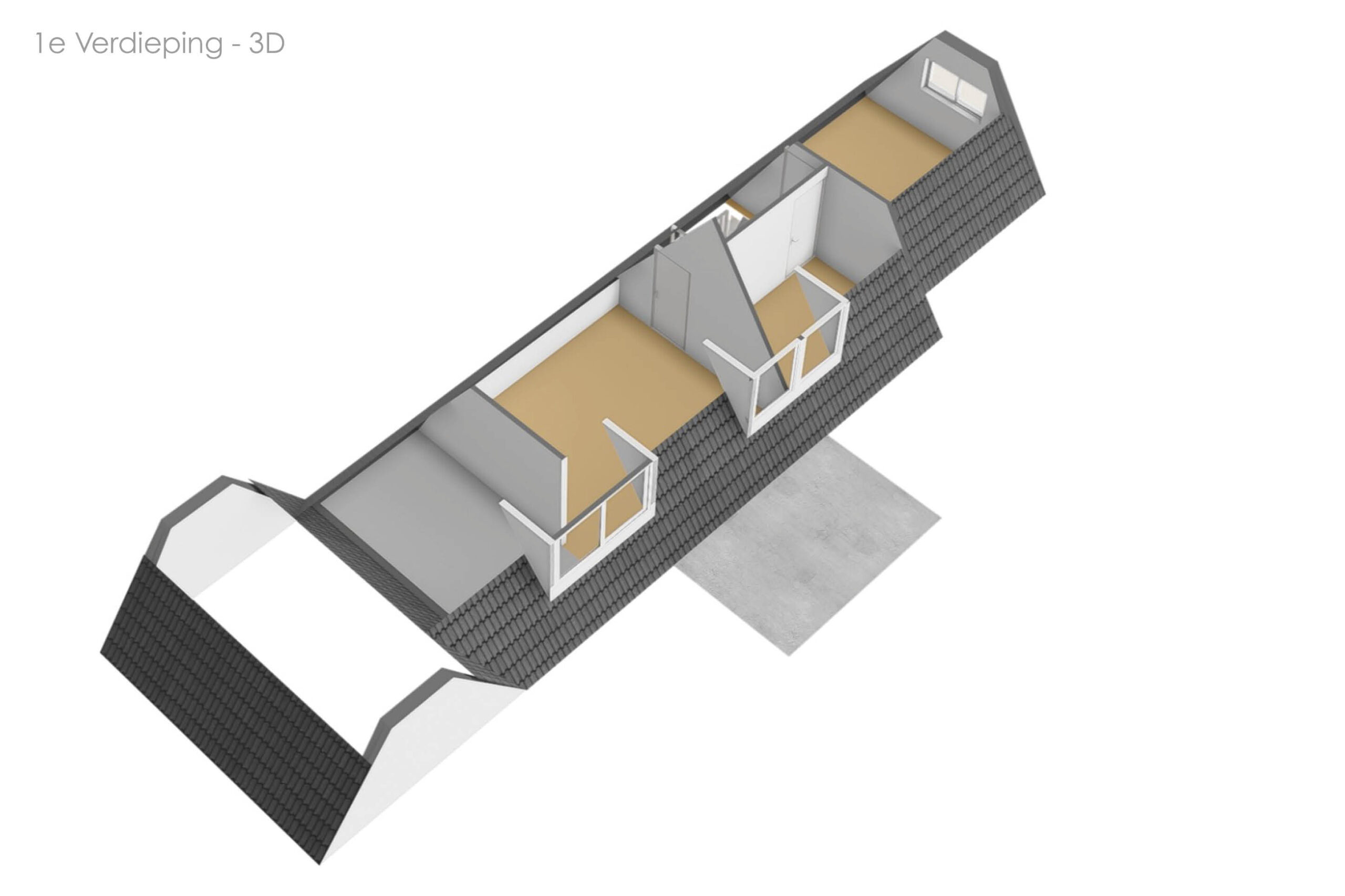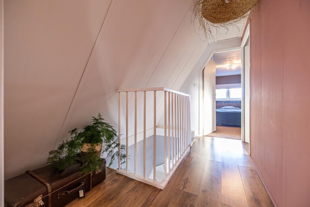 Op de eerste verdieping ligt de overloop, die toegang geeft tot drie slaapkamers. De eerste slaapkamer bevindt zich aan de voorzijde van de woning. De tweede slaapkamer is uitgerust met een dakkapel, wat zorgt voor extra licht en ruimte. Ook de derde slaapkamer beschikt over een dakkapel en is daarnaast voorzien van een ruime walk-in closet.