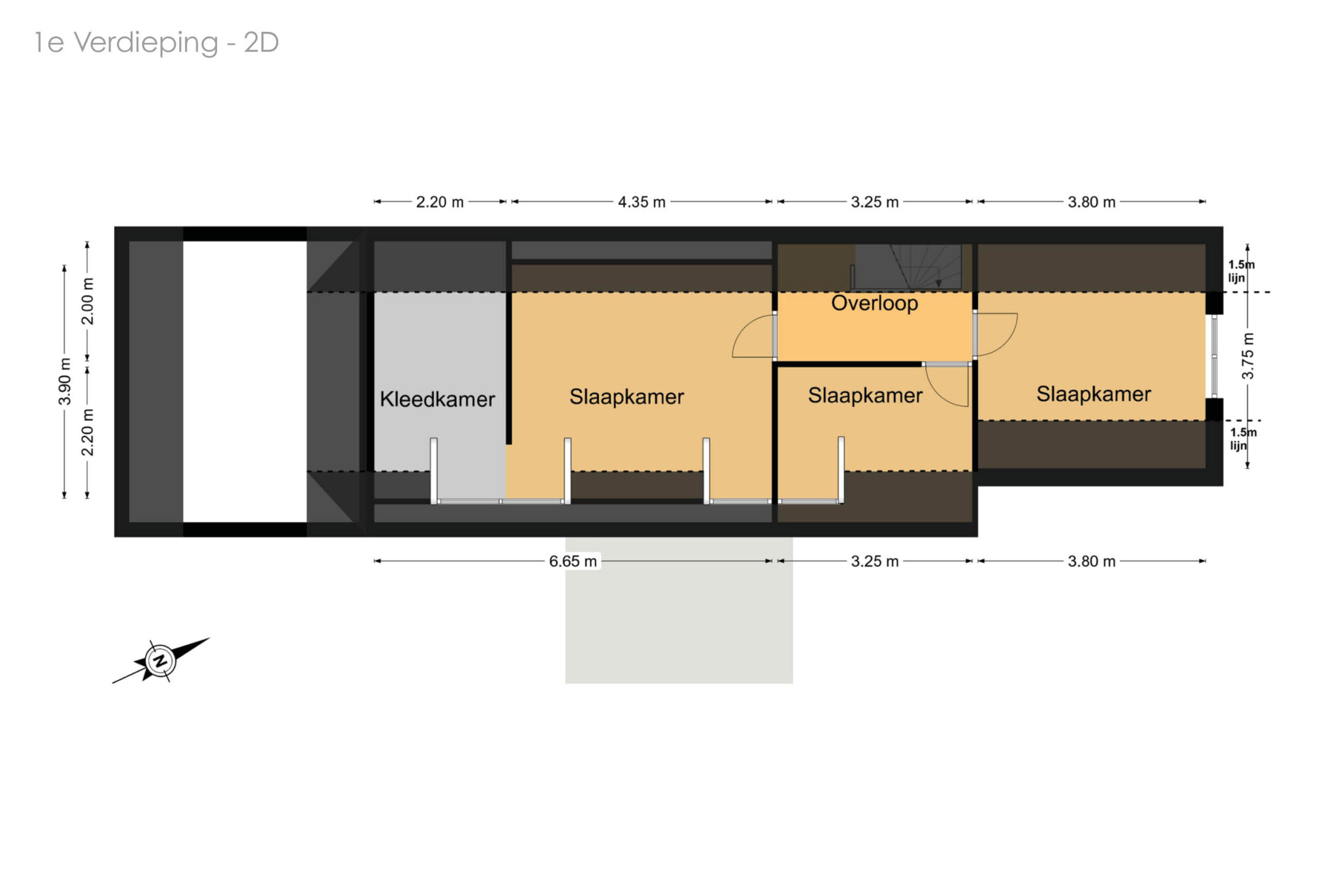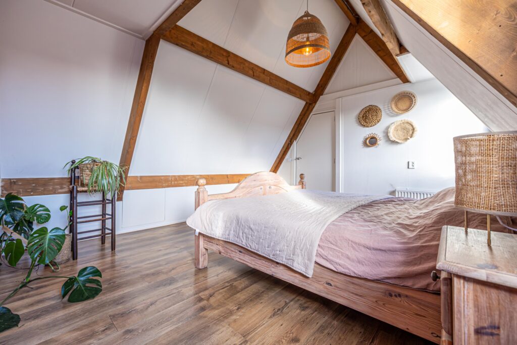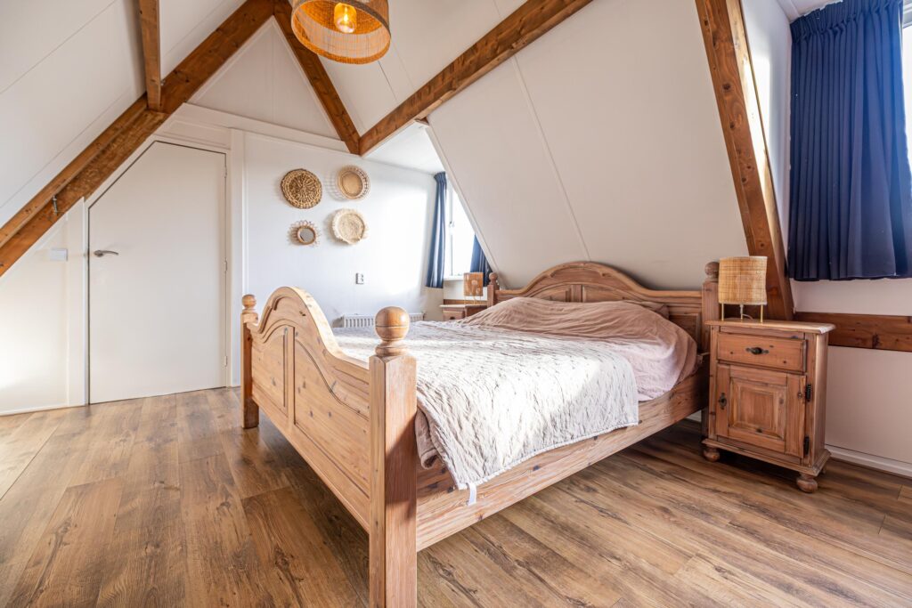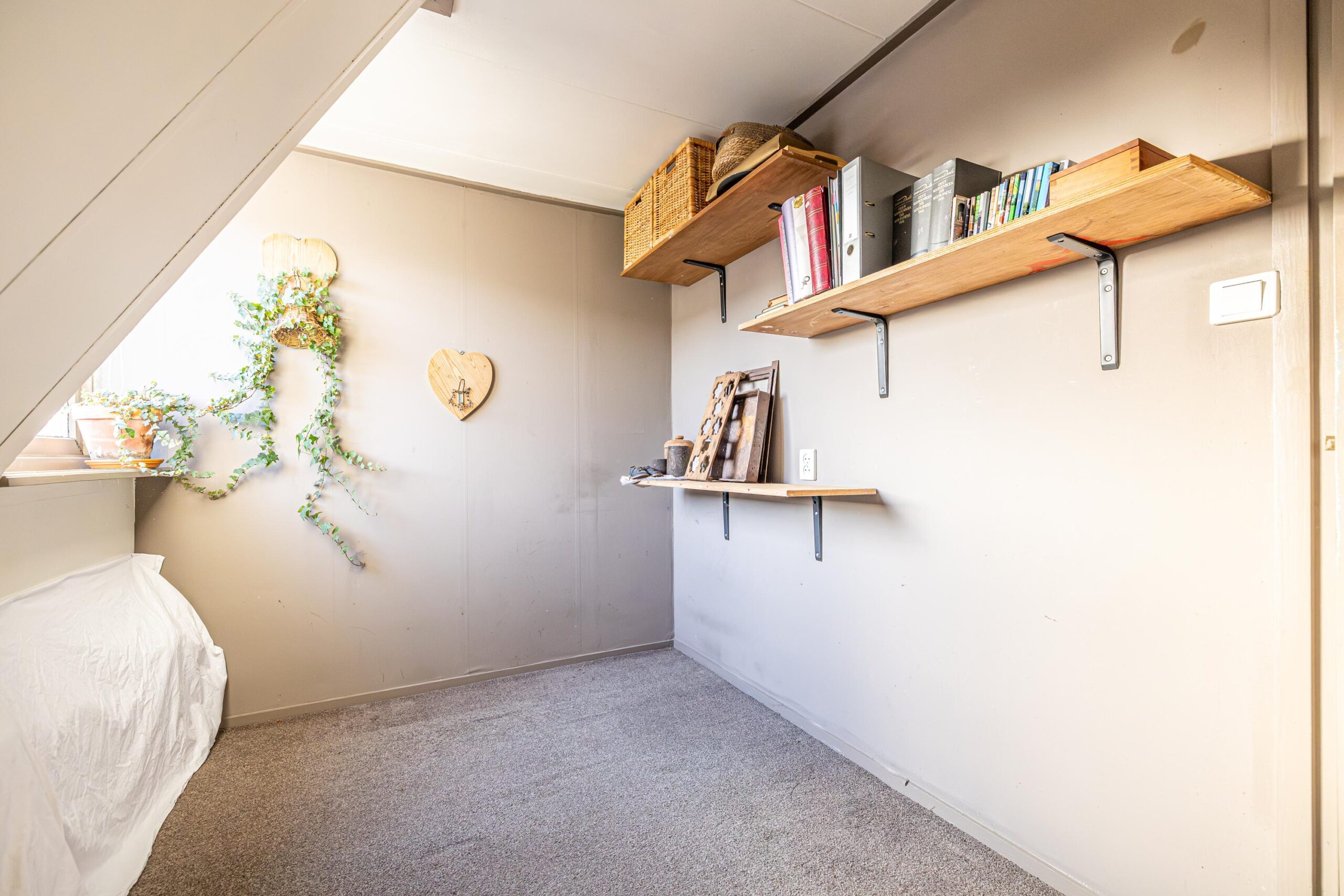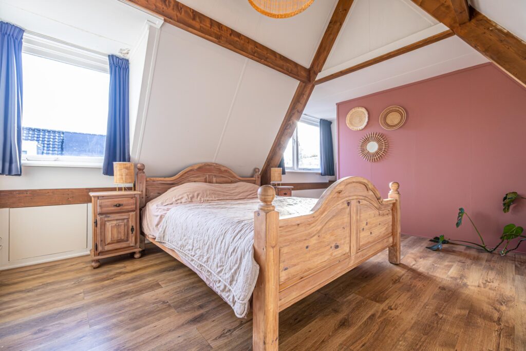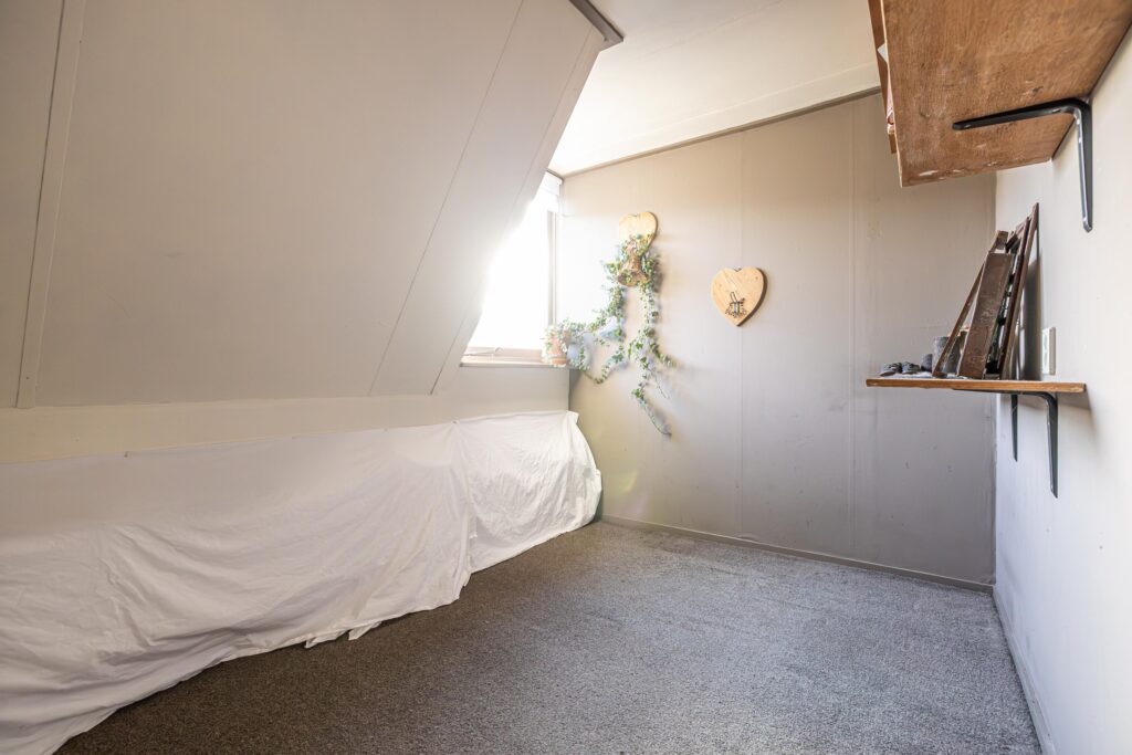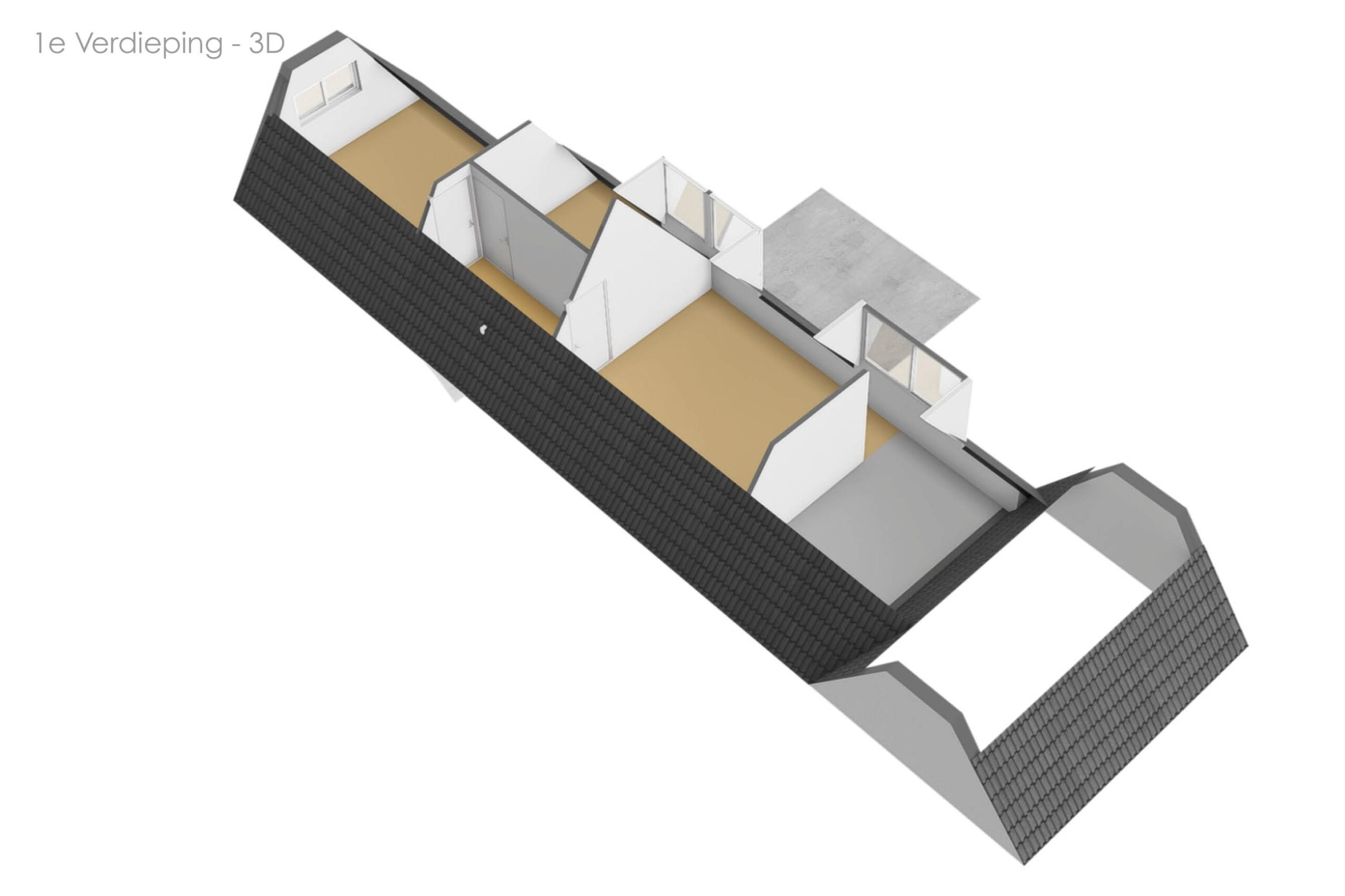 Op de eerste verdieping ligt de overloop, die toegang geeft tot drie slaapkamers. De eerste slaapkamer bevindt zich aan de voorzijde van de woning. De tweede slaapkamer is uitgerust met een dakkapel, wat zorgt voor extra licht en ruimte. Ook de derde slaapkamer beschikt over een dakkapel en is daarnaast voorzien van een ruime walk-in closet.