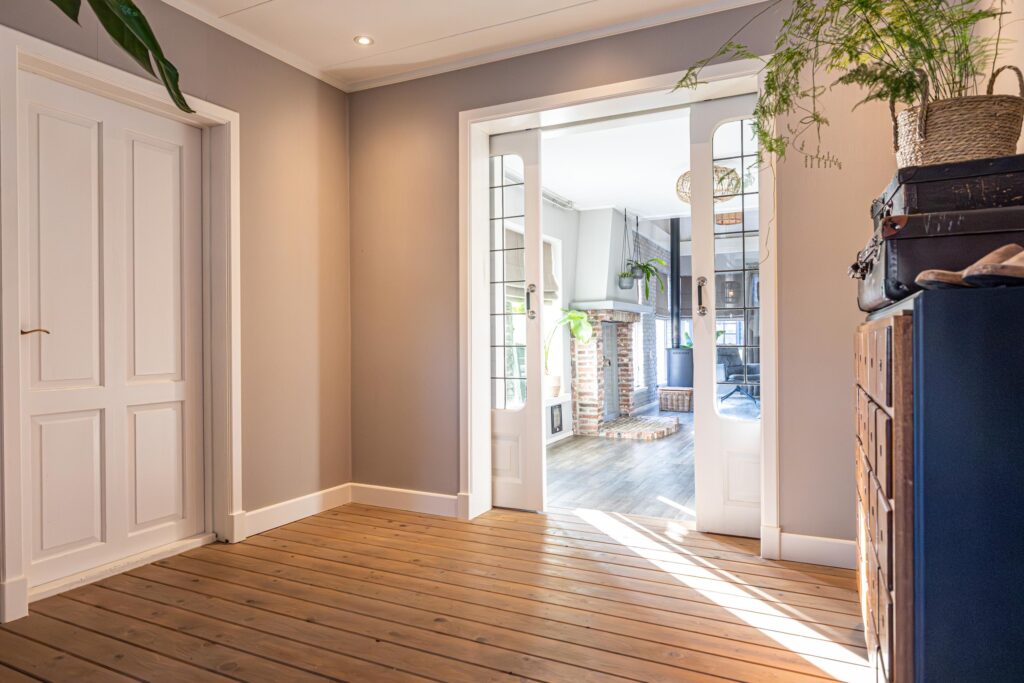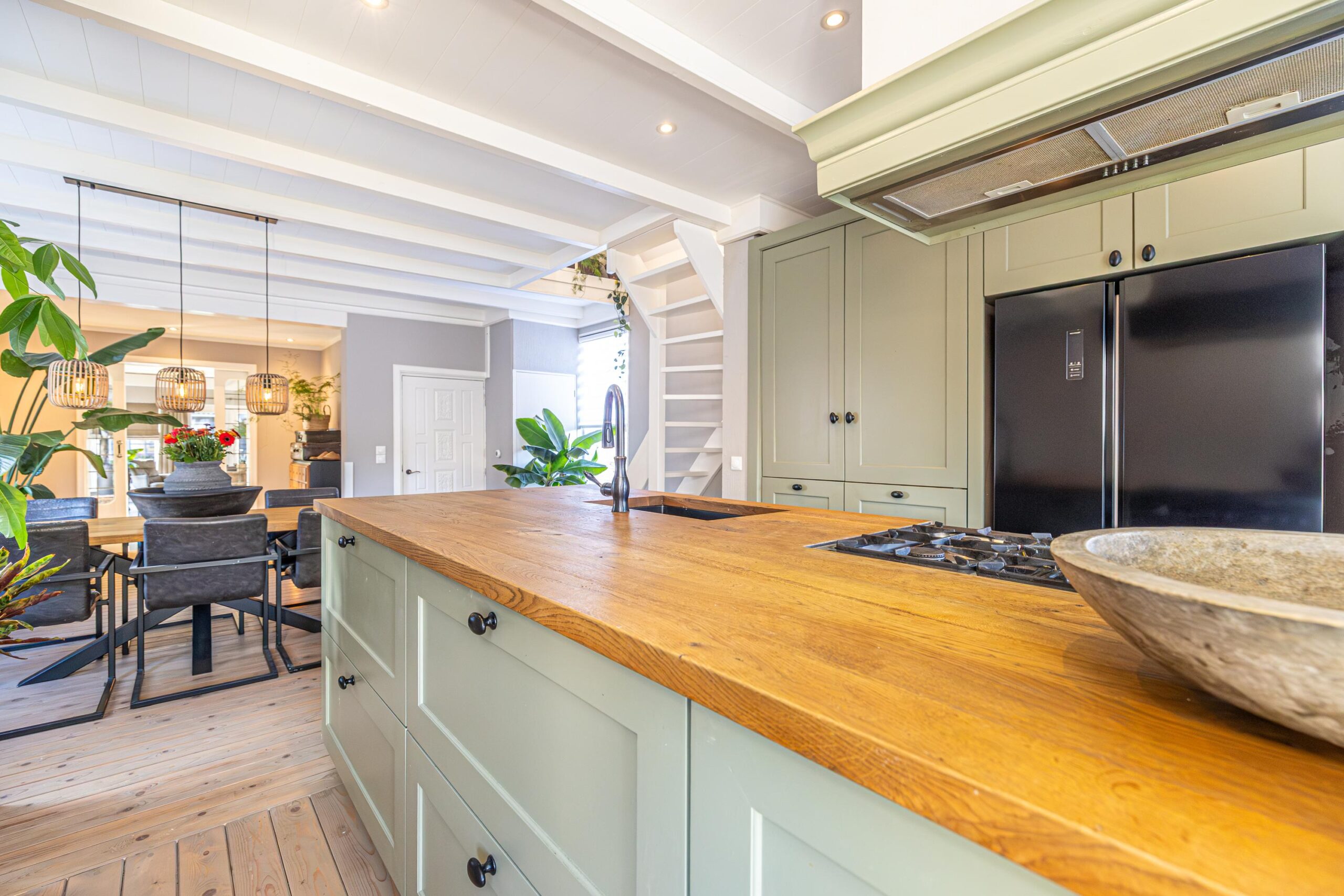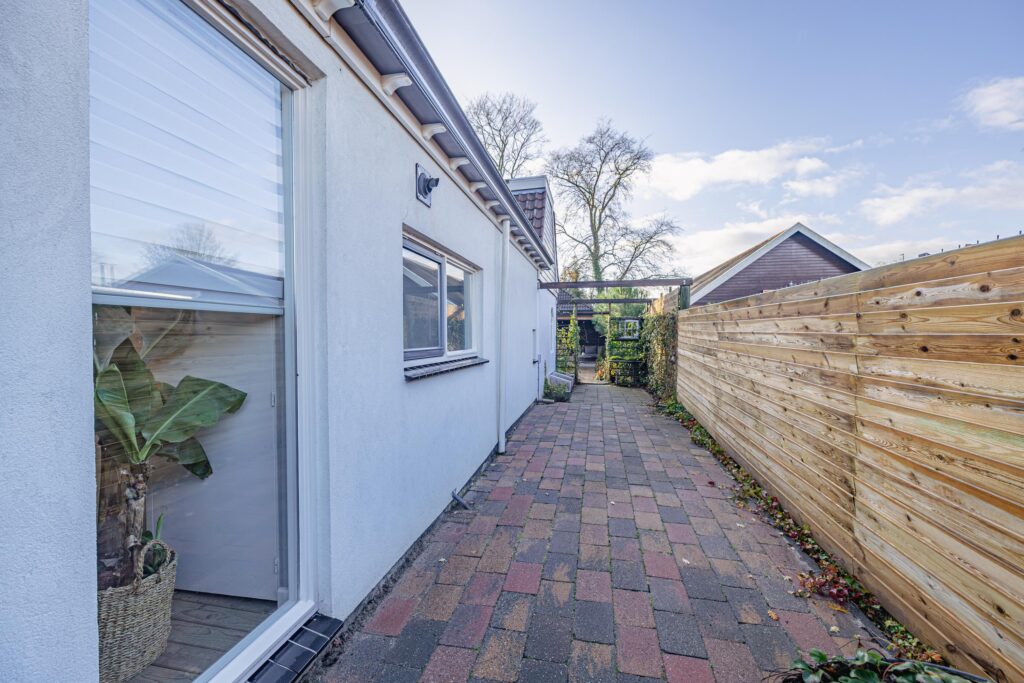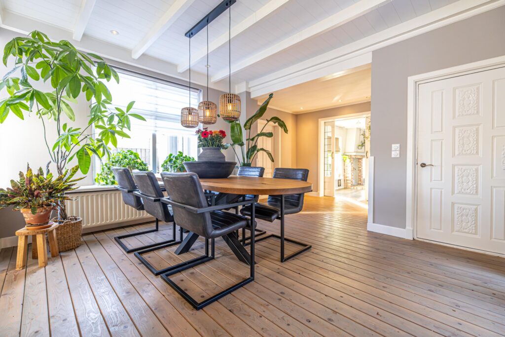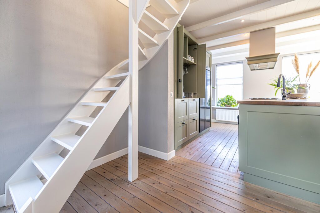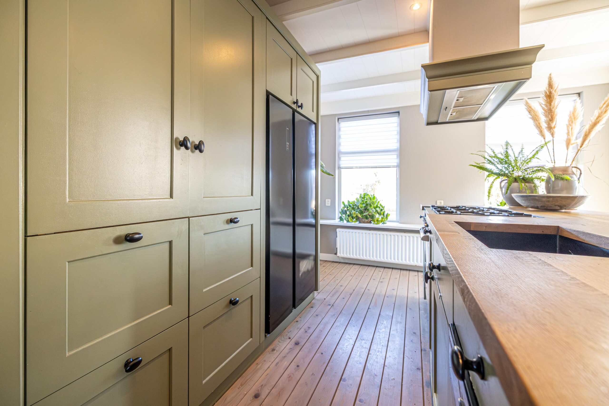 Op de begane grond kom je binnen via de entree/hal, vanwaar je toegang hebt tot zowel de berging als sfeervolle woonkeuken. De keuken is in 2023 compleet vernieuwd en van alle gemakken voorzien. Deze keuken is uitgerust met diverse inbouwapparatuur, waaronder een 6-pits gasstel, oven, vaatwasser en afzuigkap. In dezelfde ruimte bevinden zich tevens de meterkast en de trapopgang naar de eerste verdieping. Aansluitend bevindt zich de bijkeuken, met de C.V.-opstelling en aansluitingen voor het witgoed. De woonkamer bevindt zich aan de achterzijde van de woning en is voorzien van dubbele openslaande deuren naar de achtertuin. Via schuifdeuren is de woonkamer verbonden met de woonkeuken. Verder beschikt de begane grond over een hal met toegang tot een separate toiletruimte en de badkamer, uitgerust met een douche, wastafelmeubel en designradiator.