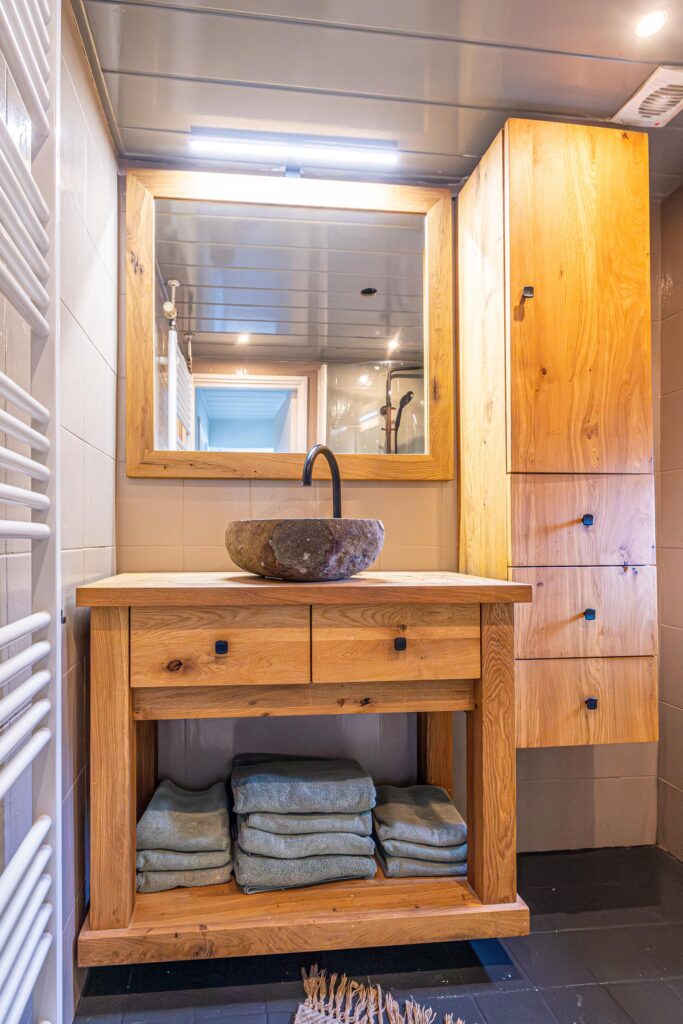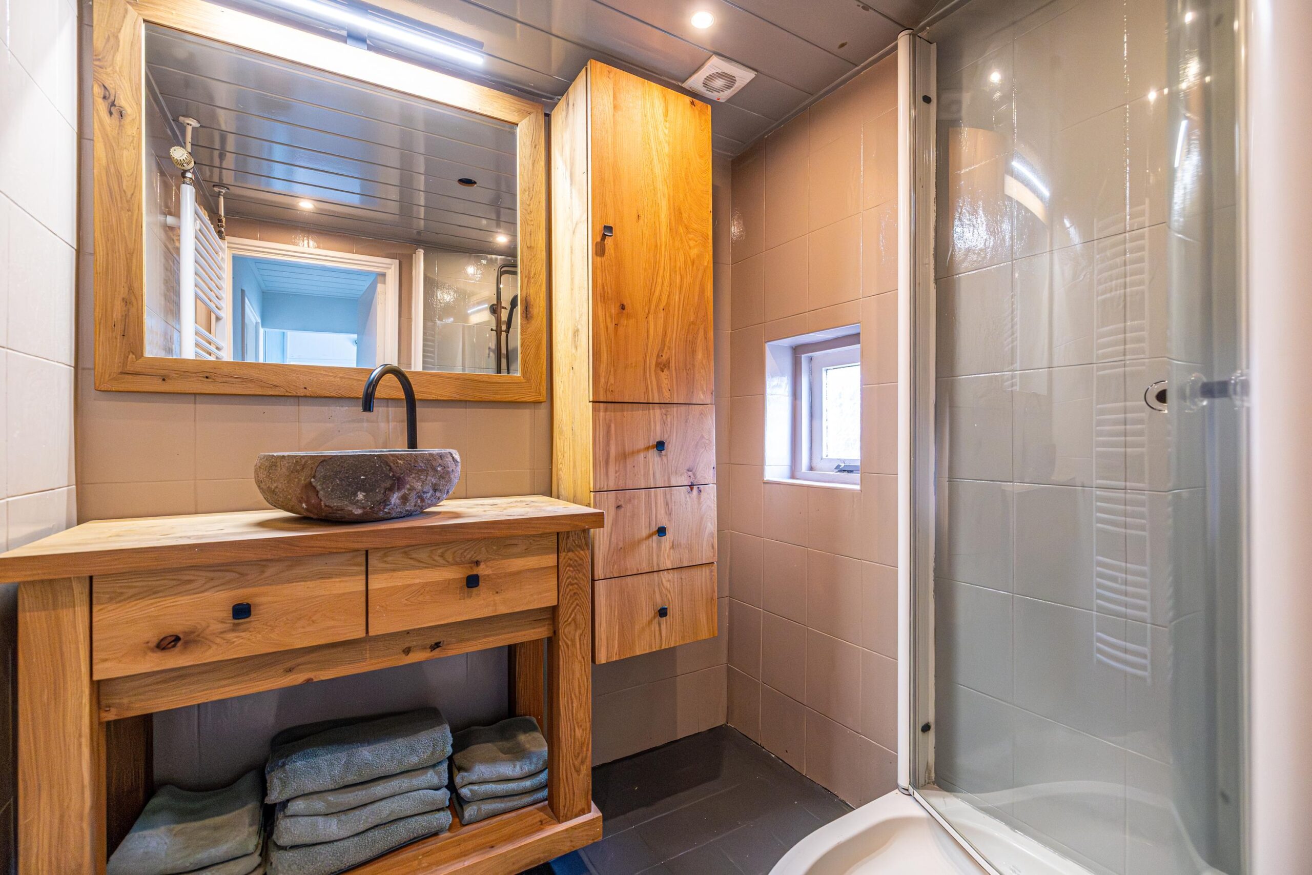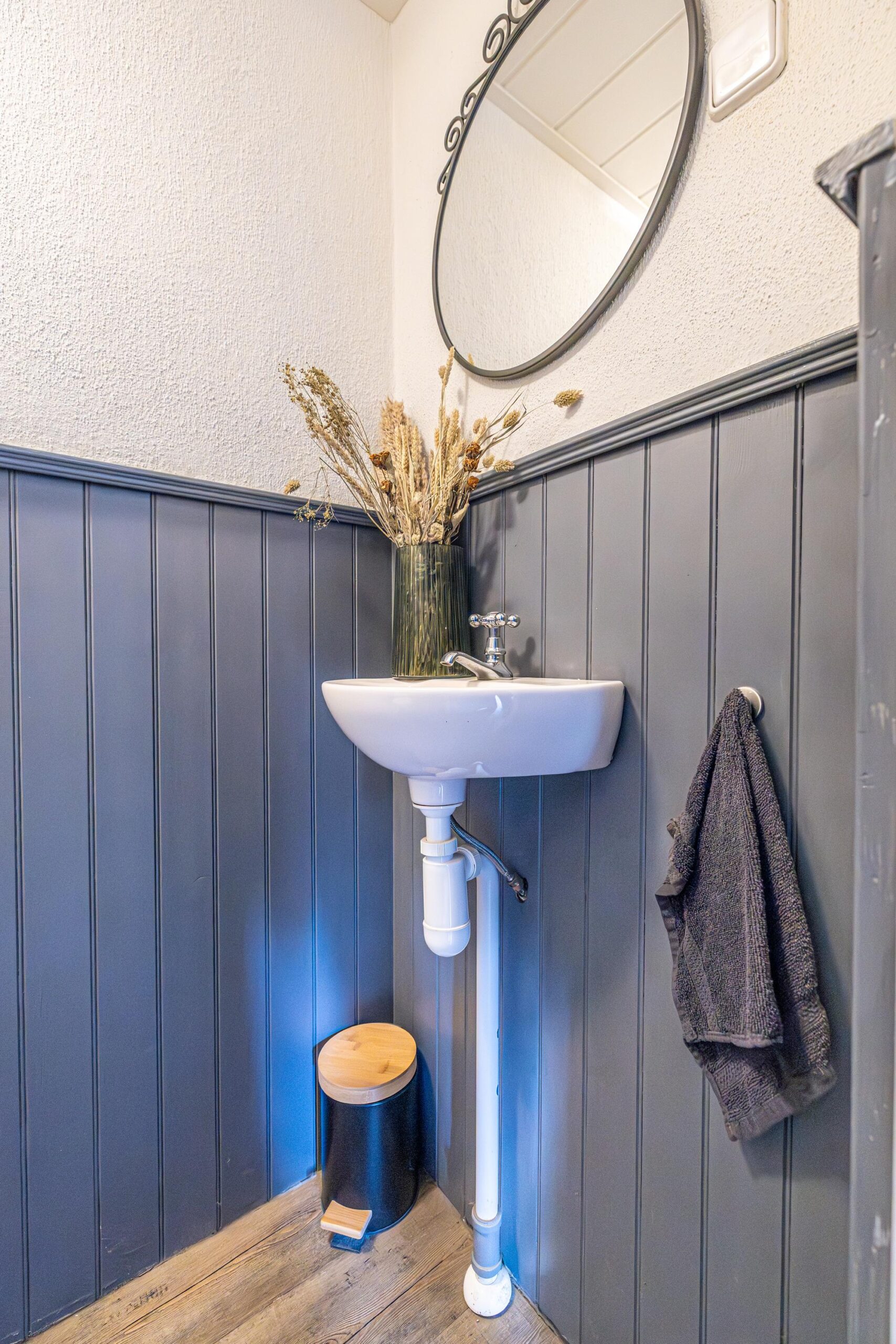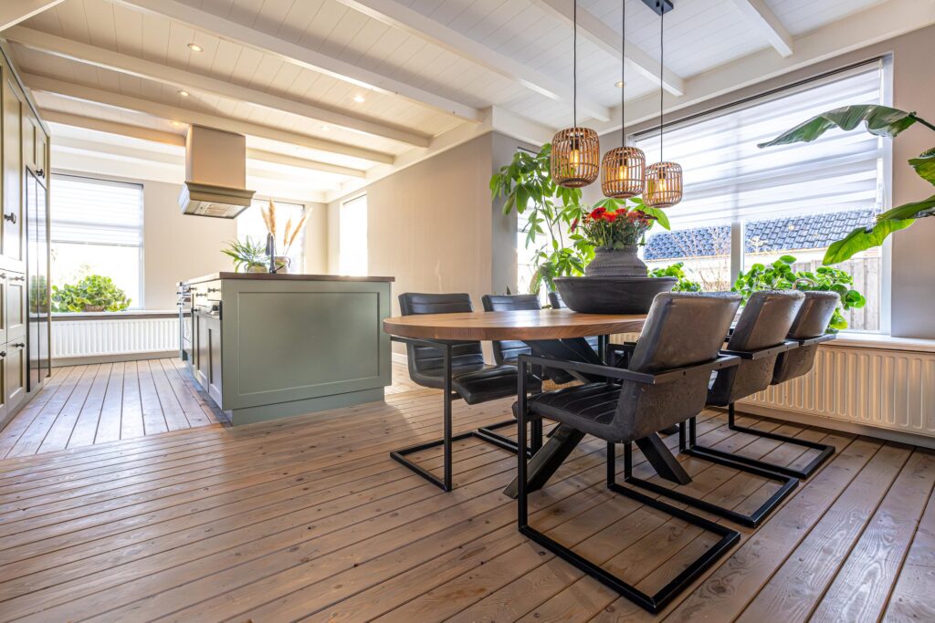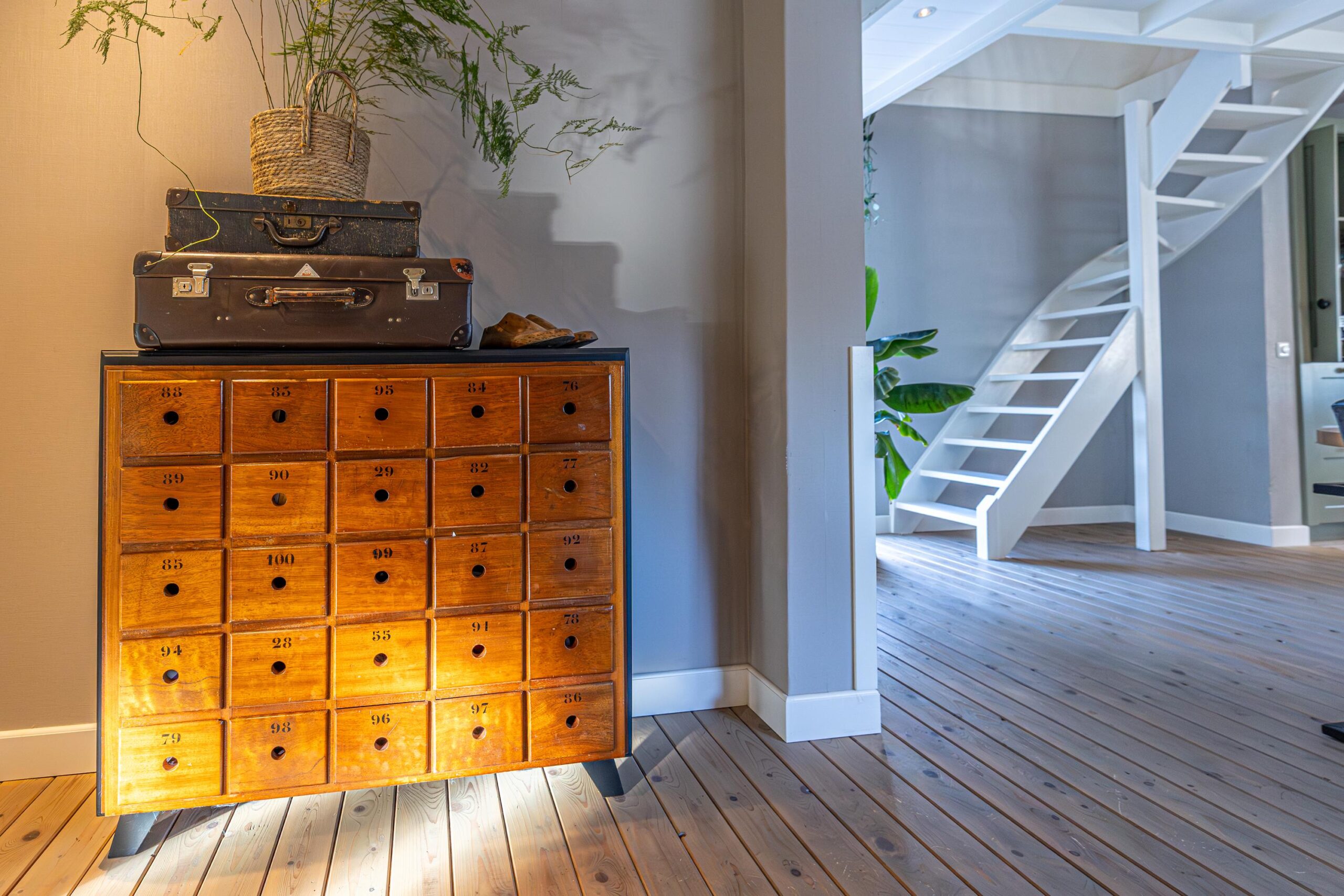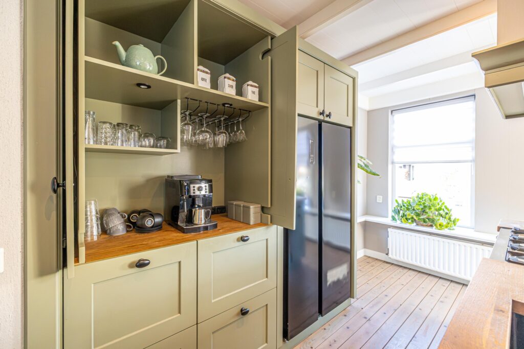 Op de begane grond kom je binnen via de entree/hal, vanwaar je toegang hebt tot zowel de berging als sfeervolle woonkeuken. De keuken is in 2023 compleet vernieuwd en van alle gemakken voorzien. Deze keuken is uitgerust met diverse inbouwapparatuur, waaronder een 6-pits gasstel, oven, vaatwasser en afzuigkap. In dezelfde ruimte bevinden zich tevens de meterkast en de trapopgang naar de eerste verdieping. Aansluitend bevindt zich de bijkeuken, met de C.V.-opstelling en aansluitingen voor het witgoed. De woonkamer bevindt zich aan de achterzijde van de woning en is voorzien van dubbele openslaande deuren naar de achtertuin. Via schuifdeuren is de woonkamer verbonden met de woonkeuken. Verder beschikt de begane grond over een hal met toegang tot een separate toiletruimte en de badkamer, uitgerust met een douche, wastafelmeubel en designradiator.