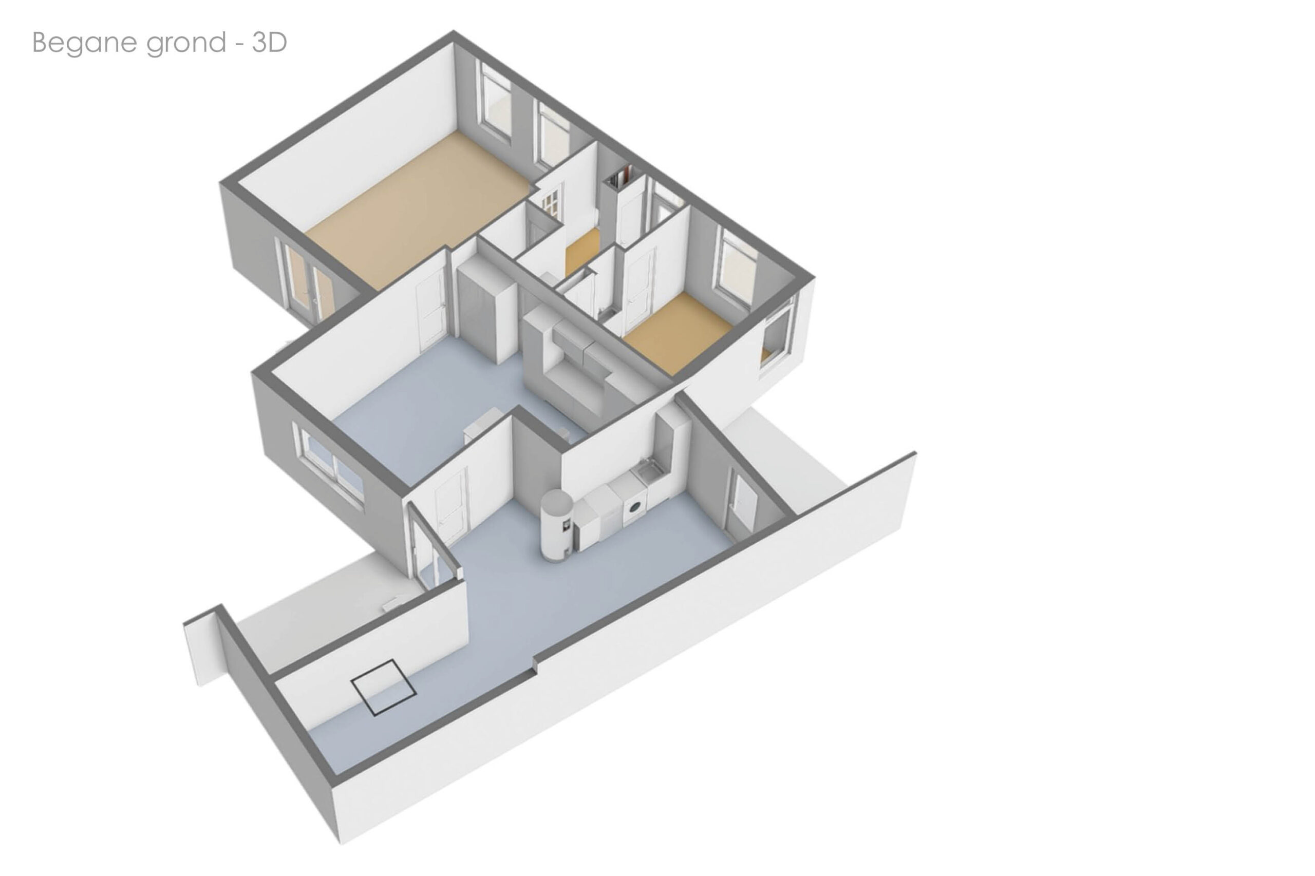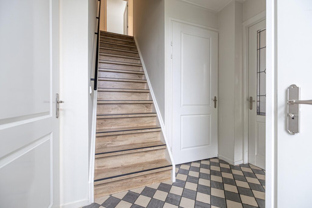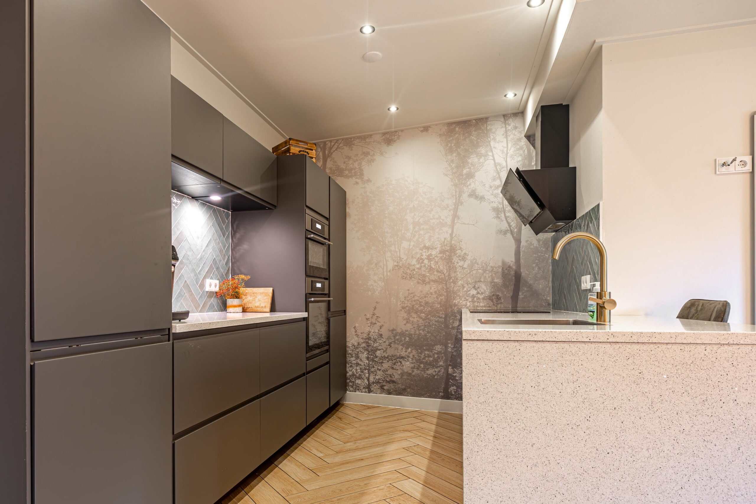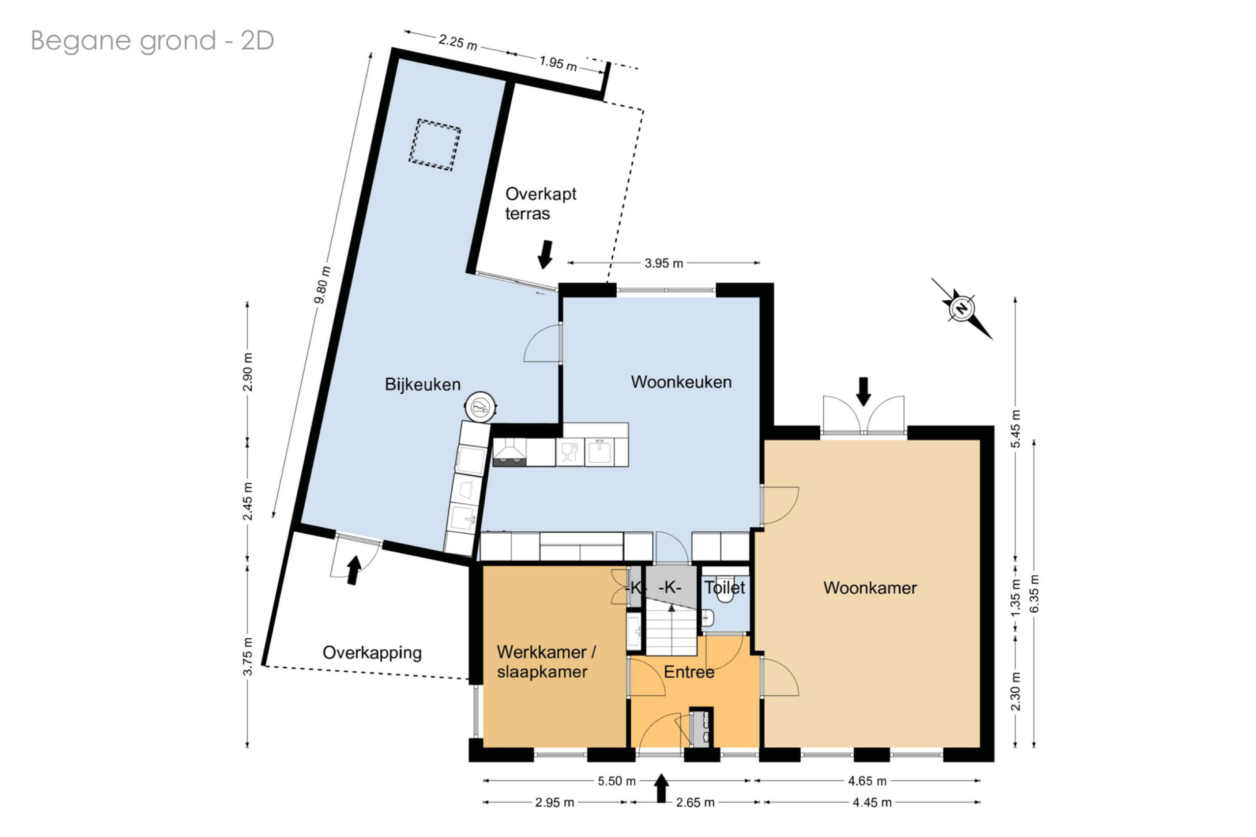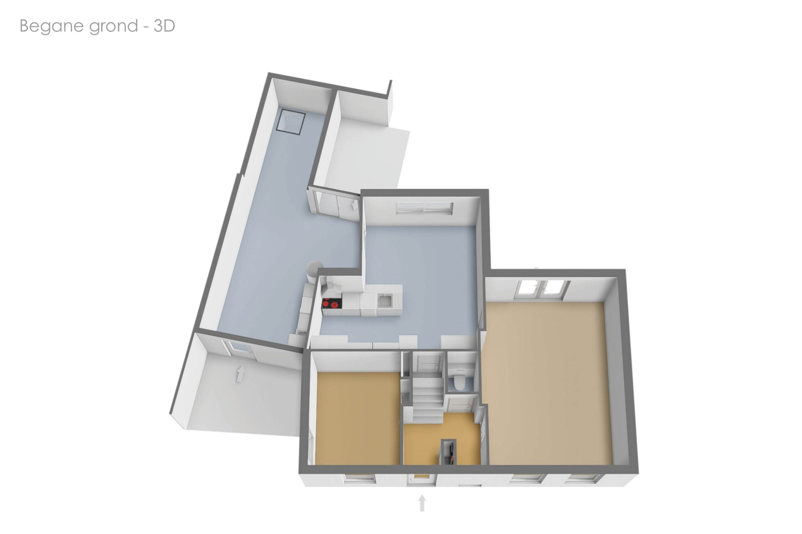 Via de hal bereik je de woonkamer, de fijne slaap-/werkkamer met wastafel en het toilet. De ruime en lichte woonkamer is voorzien van openslaande deuren naar de achtertuin. Vanuit de woonkamer bereik je de luxe woonkeuken met inbouwapparatuur en een kookeiland. Aangrenzend bevindt zich de royale bijkeuken, voorzien van een keukenblok met kastjes en aansluitingen voor witgoed. Daarnaast biedt deze ruimte plaats voor opslag van spullen en fietsen. Via de schuifpui heb je directe toegang tot de zonnige achtertuin. De begane grond is volledig voorzien van vloerverwarming, met uitzondering van het aangebouwde gedeelte bij de bijkeuken.