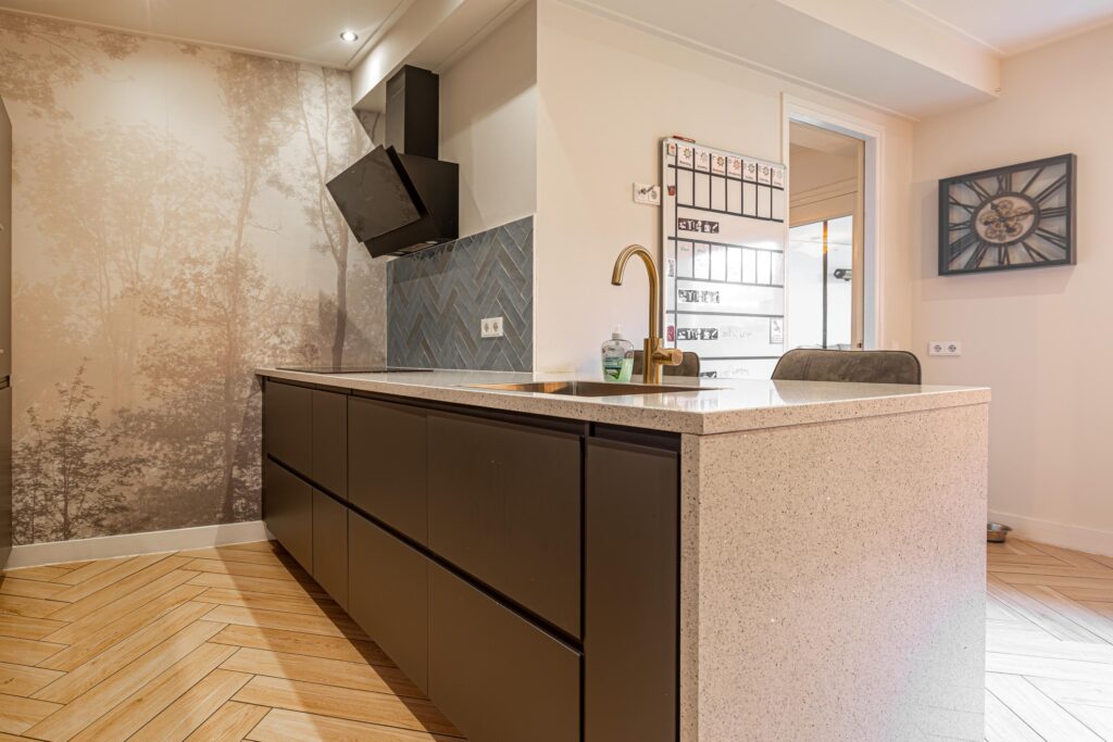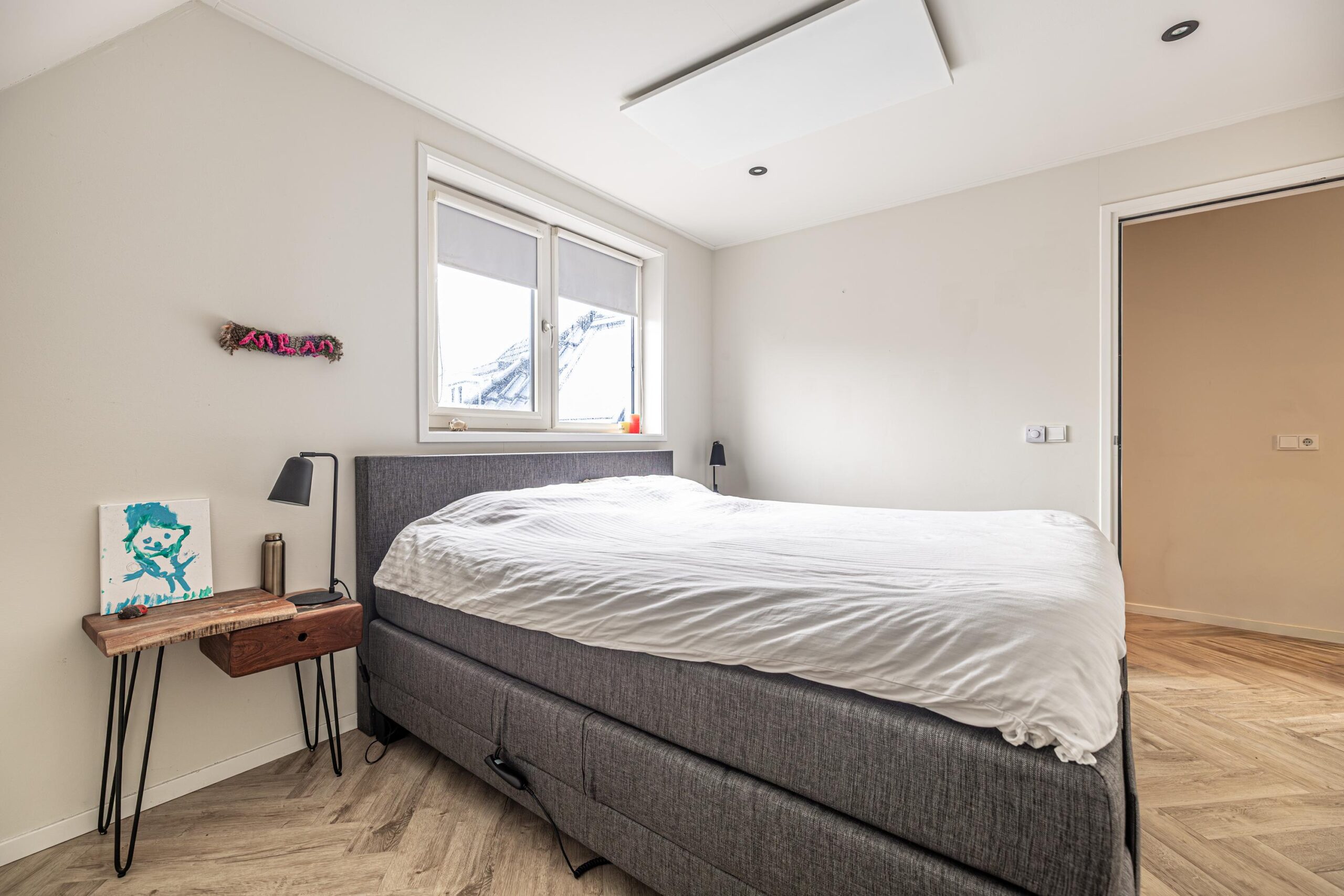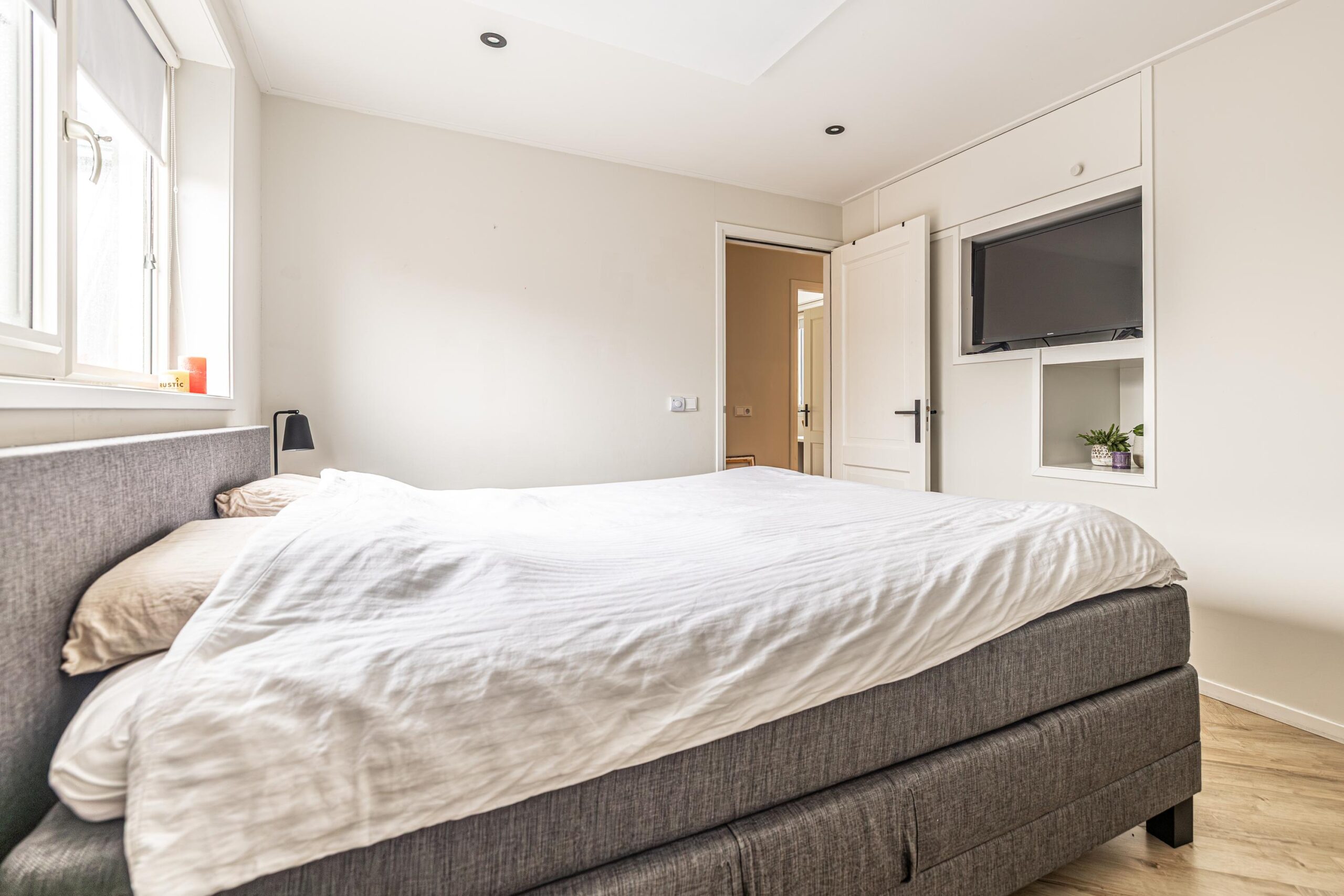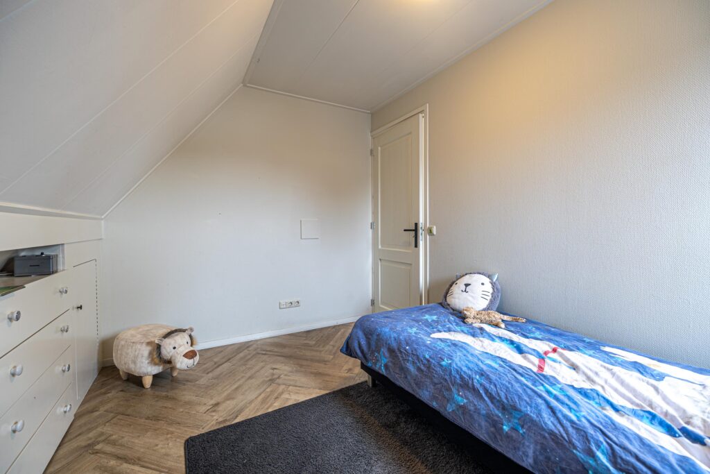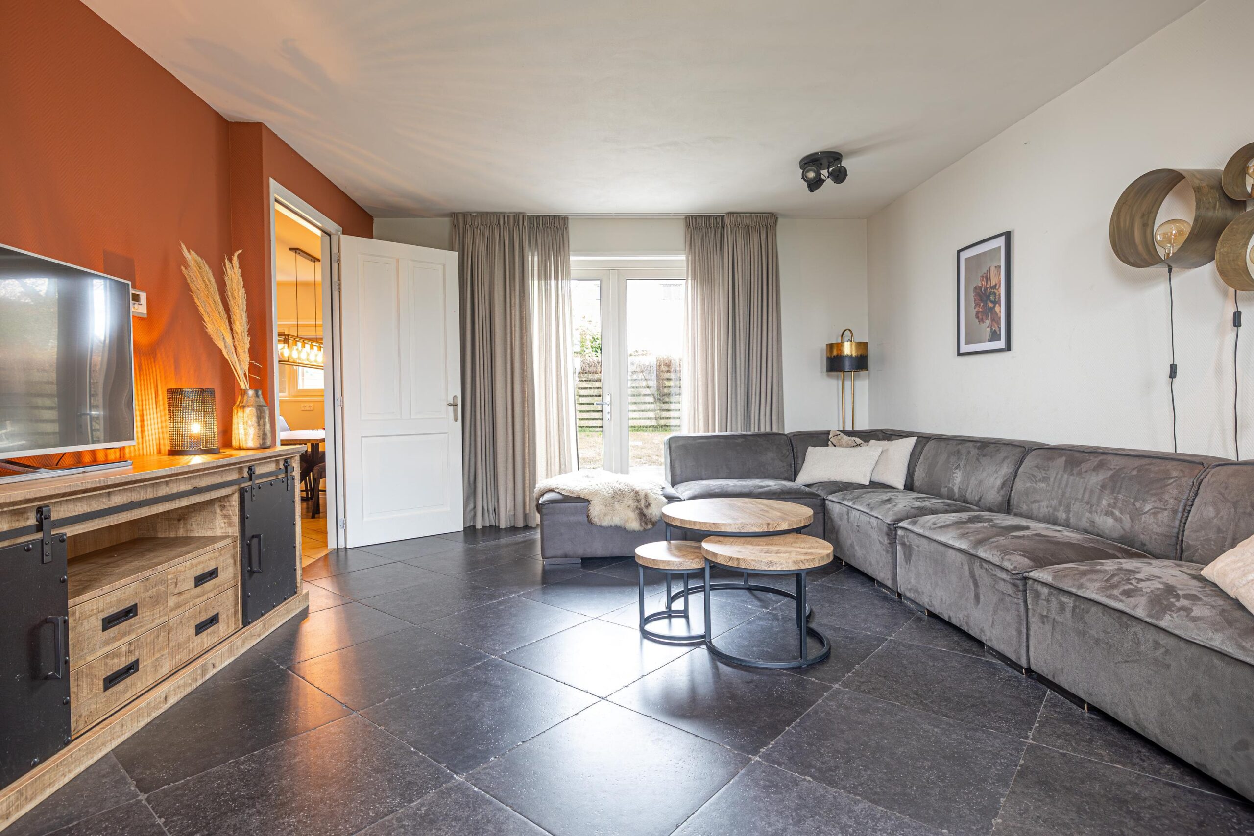 Via de hal bereik je de woonkamer, de fijne slaap-/werkkamer met wastafel en het toilet. De ruime en lichte woonkamer is voorzien van openslaande deuren naar de achtertuin. Vanuit de woonkamer bereik je de luxe woonkeuken met inbouwapparatuur en een kookeiland. Aangrenzend bevindt zich de royale bijkeuken, voorzien van een keukenblok met kastjes en aansluitingen voor witgoed. Daarnaast biedt deze ruimte plaats voor opslag van spullen en fietsen. Via de schuifpui heb je directe toegang tot de zonnige achtertuin. De begane grond is volledig voorzien van vloerverwarming, met uitzondering van het aangebouwde gedeelte bij de bijkeuken.
