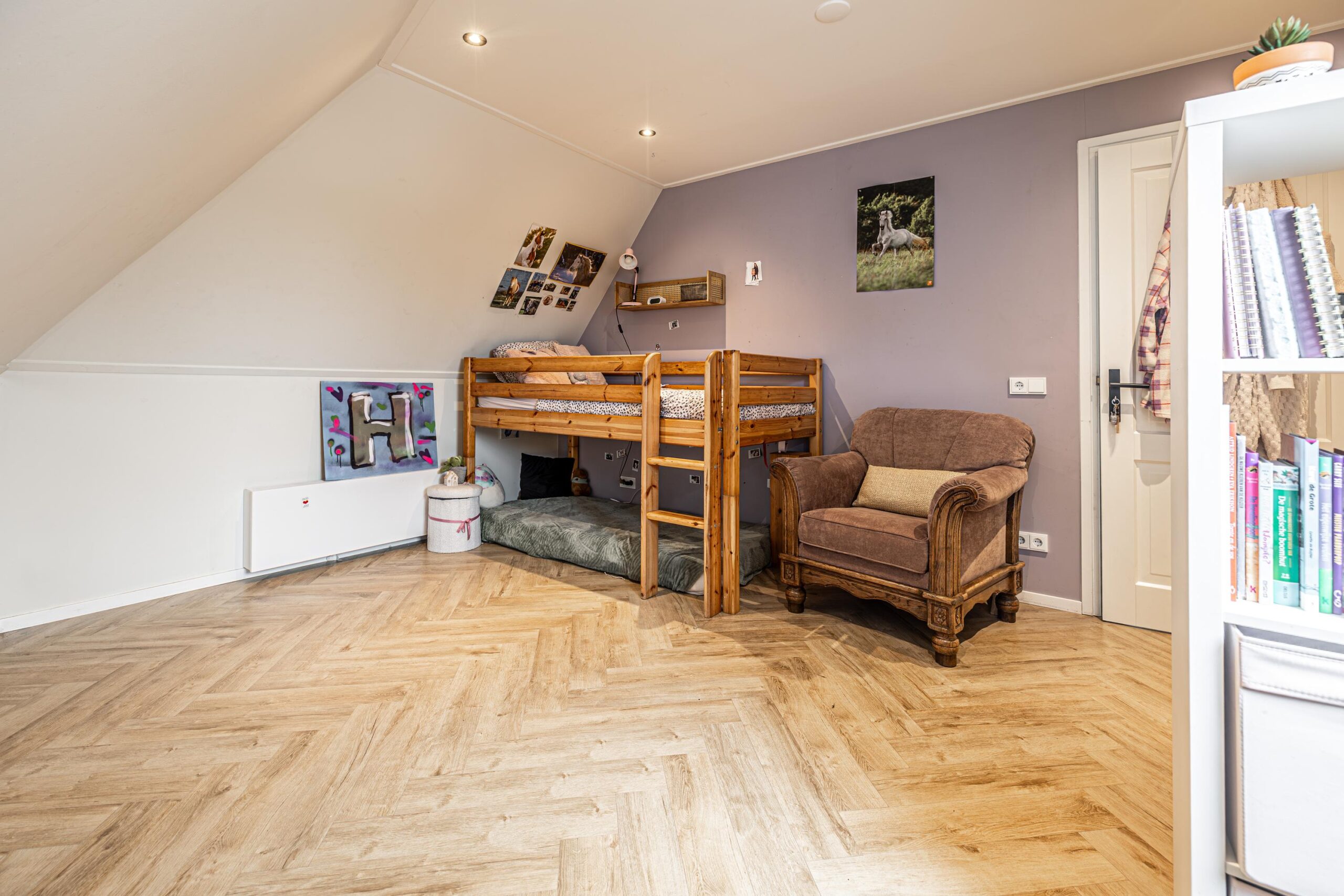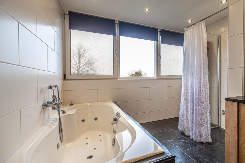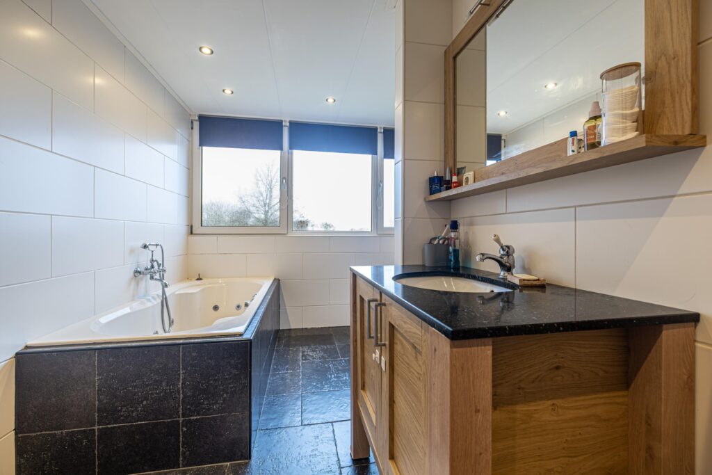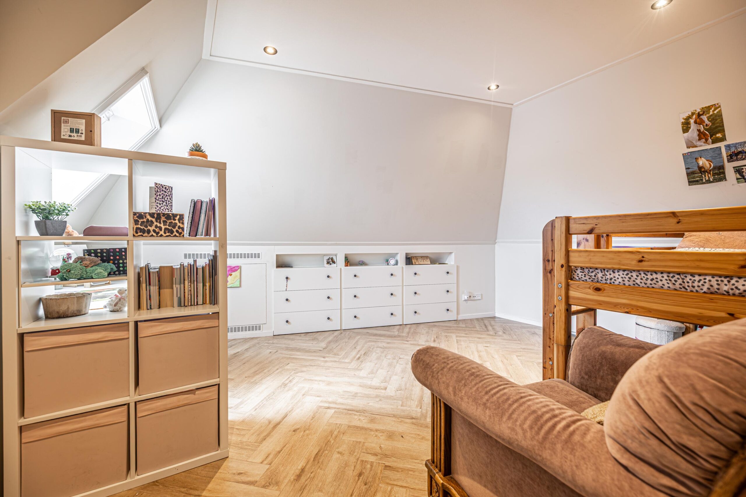 De ruime overloop geeft toegang tot vijf slaapkamers en een complete badkamer. De slaapkamers hebben inbouwladen, zijn ruim opgezet en de kozijnen zijn hier van kunststof. De badkamer is voorzien van een ligbad, douche, toilet en wastafel.