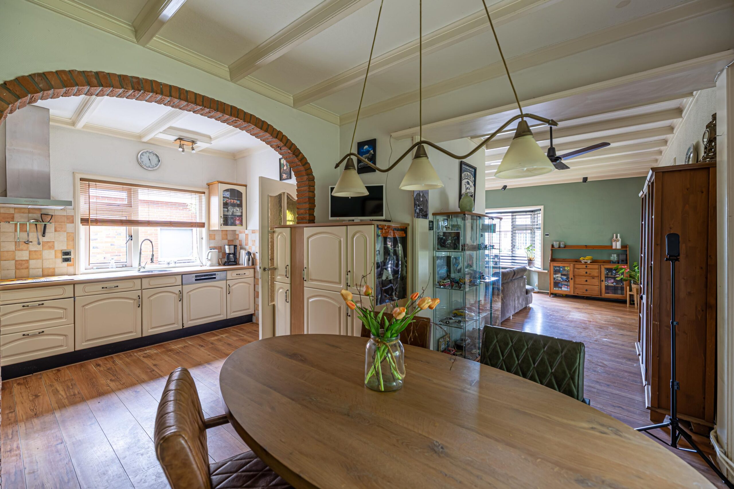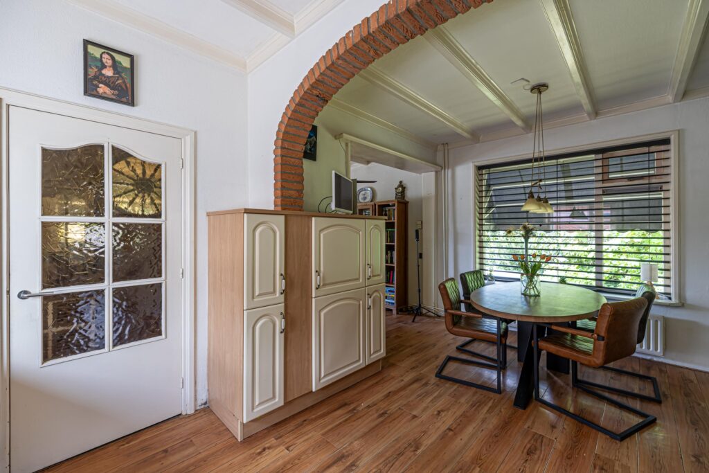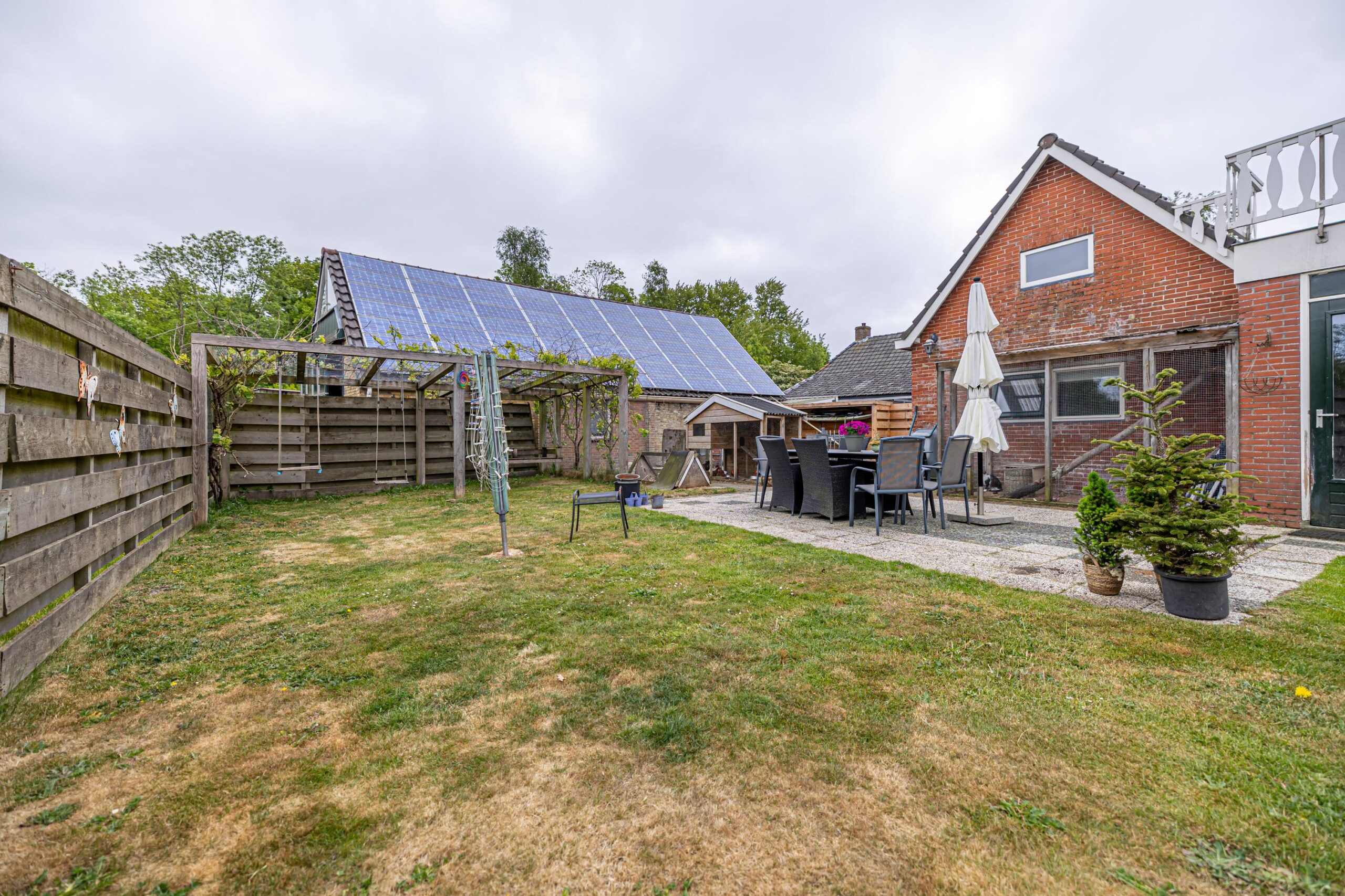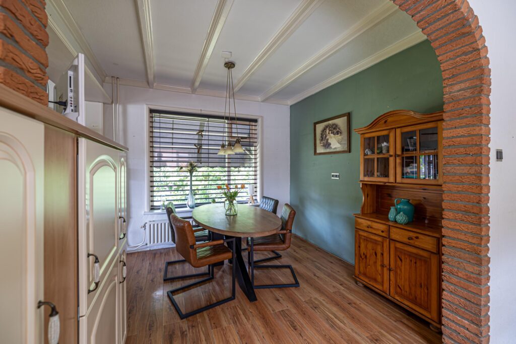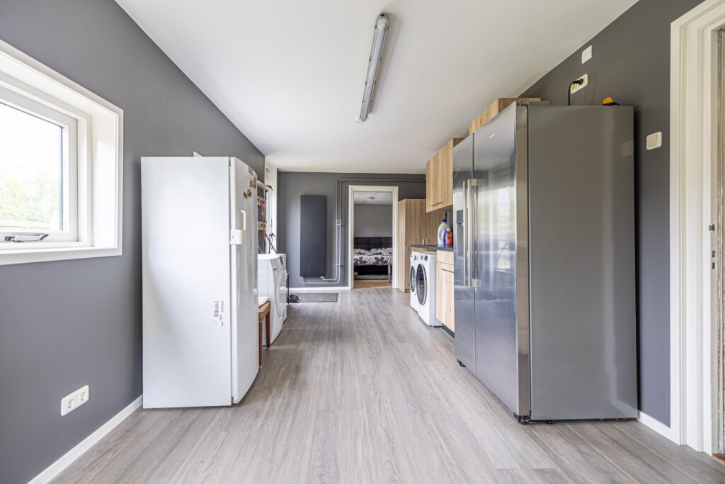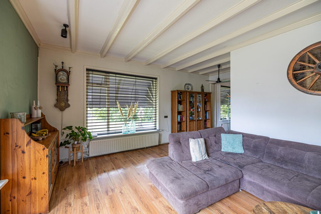 Bij binnenkomst kom je binnen in de hal met toegang tot de kelderkast. Vanaf de hal heb je toegang tot de halfopen keuken, die in 2024 is voorzien van nieuwe inbouwapparatuur, waaronder een inductiekookplaat, oven, vaatwasser en afzuigkap. Daarnaast is er een koelkast aanwezig; deze is echter niet vernieuwd. Aansluitend bevindt zich de L-vormige woonkamer, die is voorzien van een houtkachel. De woning beschikt verder op de begane grond over een badkamer met een inloopdouche, whirlpool, wastafelmeubel en designradiator. Verder bevindt zich op de begane grond een slaapkamer, separate toiletruimte en een recent vernieuwde bijkeuken. De aangebouwde stenen garage is bereikbaar via de bijkeuken. De garage is voorzien van elektra, nieuwe elektrische garagedeur en een royale vliering.