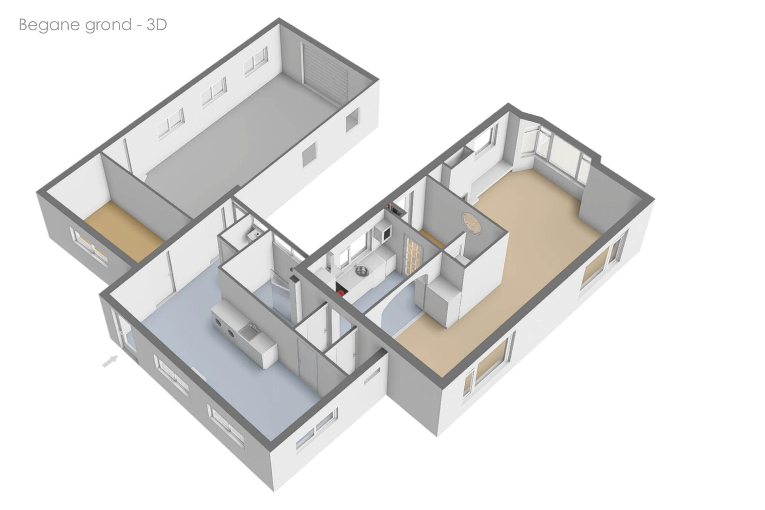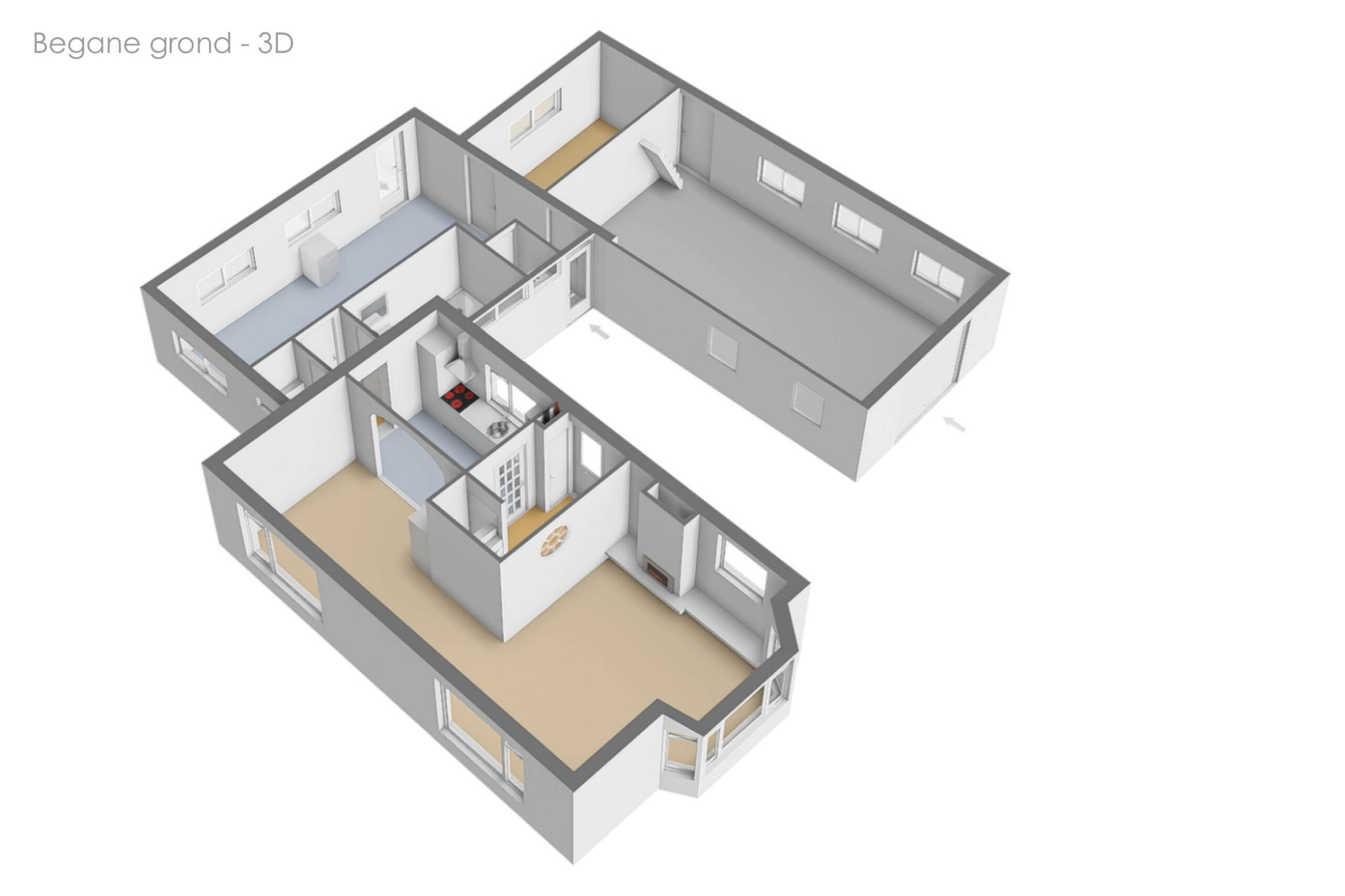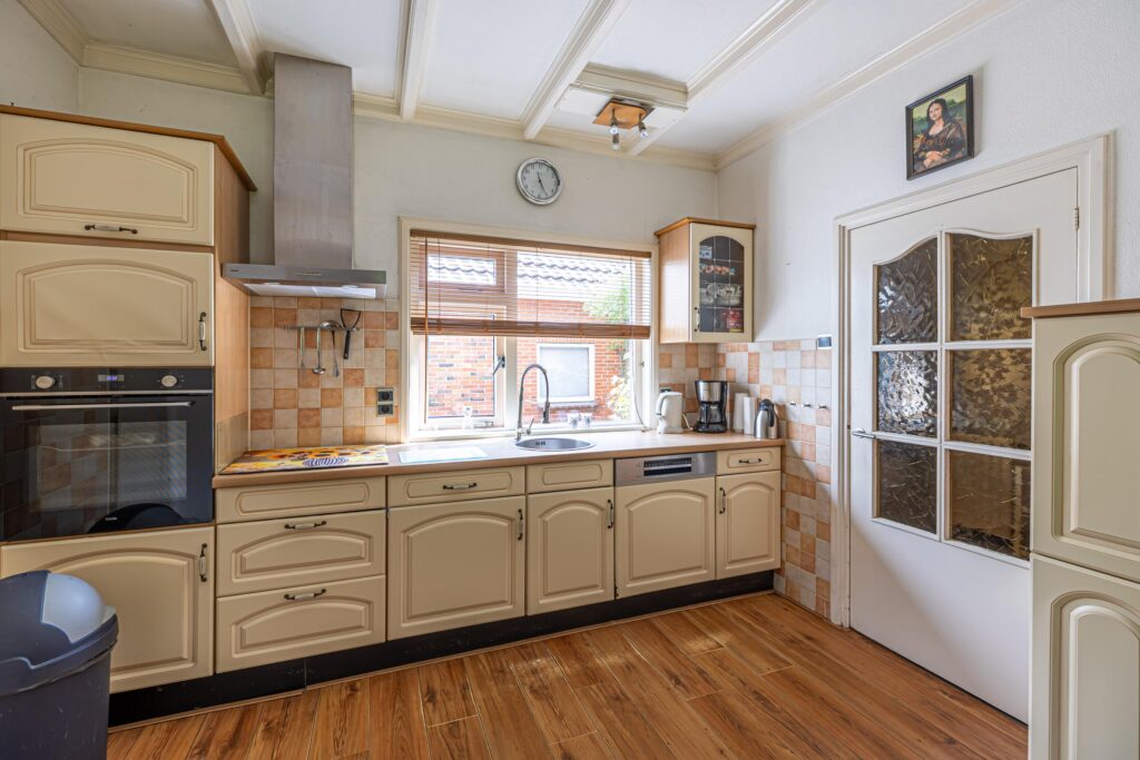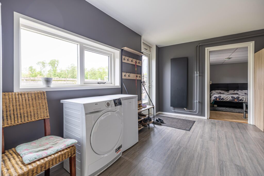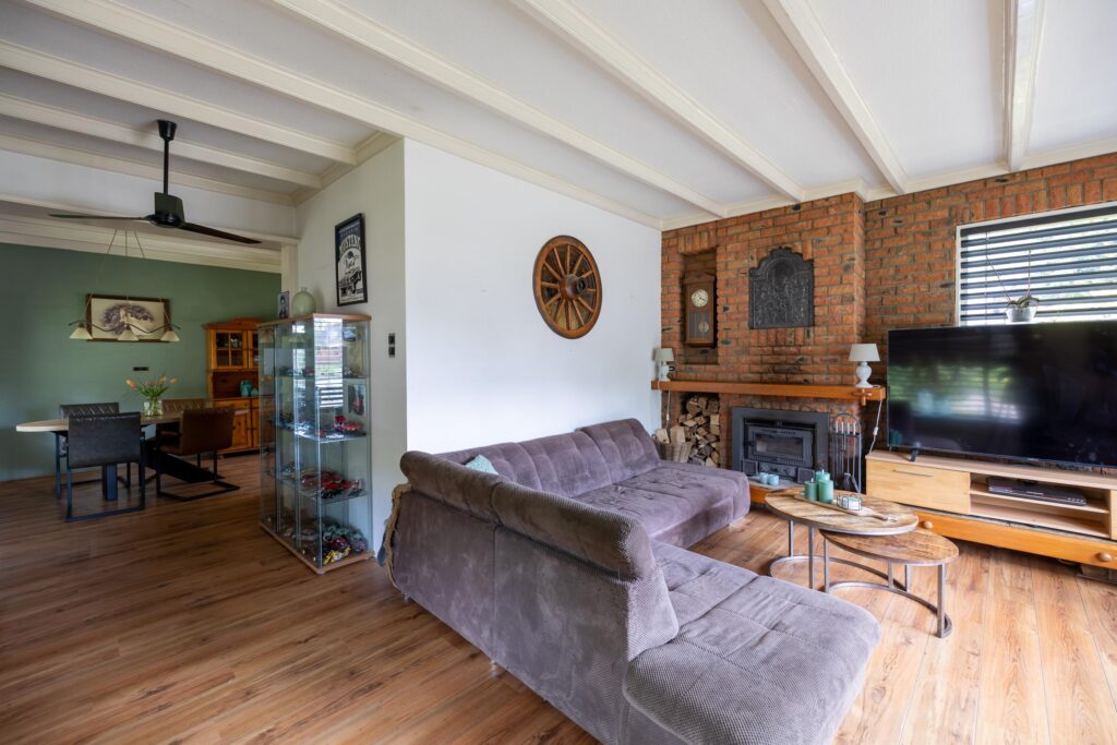 Bij binnenkomst kom je binnen in de hal met toegang tot de kelderkast. Vanaf de hal heb je toegang tot de halfopen keuken, die in 2024 is voorzien van nieuwe inbouwapparatuur, waaronder een inductiekookplaat, oven, vaatwasser en afzuigkap. Daarnaast is er een koelkast aanwezig; deze is echter niet vernieuwd. Aansluitend bevindt zich de L-vormige woonkamer, die is voorzien van een houtkachel. De woning beschikt verder op de begane grond over een badkamer met een inloopdouche, whirlpool, wastafelmeubel en designradiator. Verder bevindt zich op de begane grond een slaapkamer, separate toiletruimte en een recent vernieuwde bijkeuken. De aangebouwde stenen garage is bereikbaar via de bijkeuken. De garage is voorzien van elektra, nieuwe elektrische garagedeur en een royale vliering.
