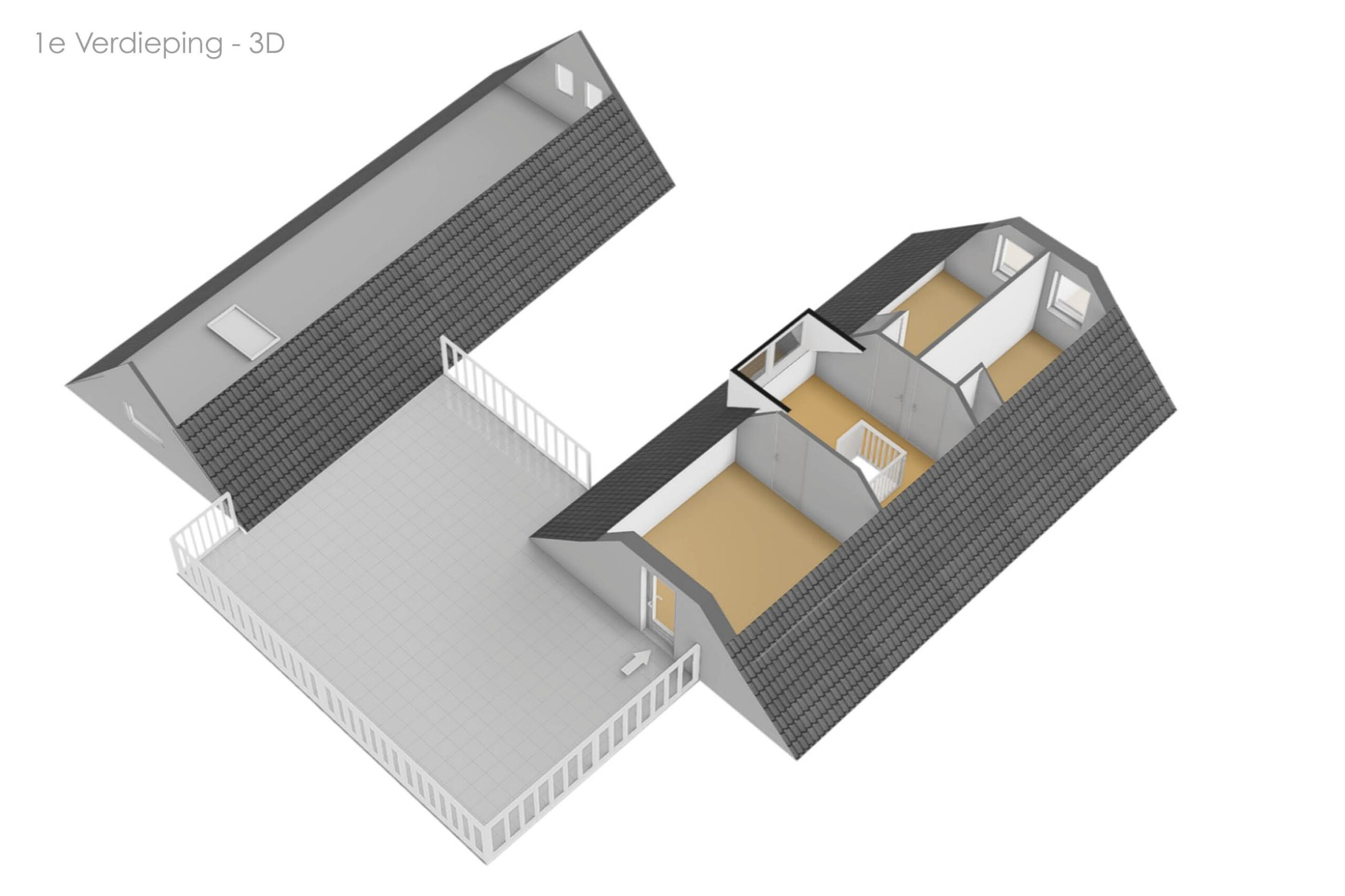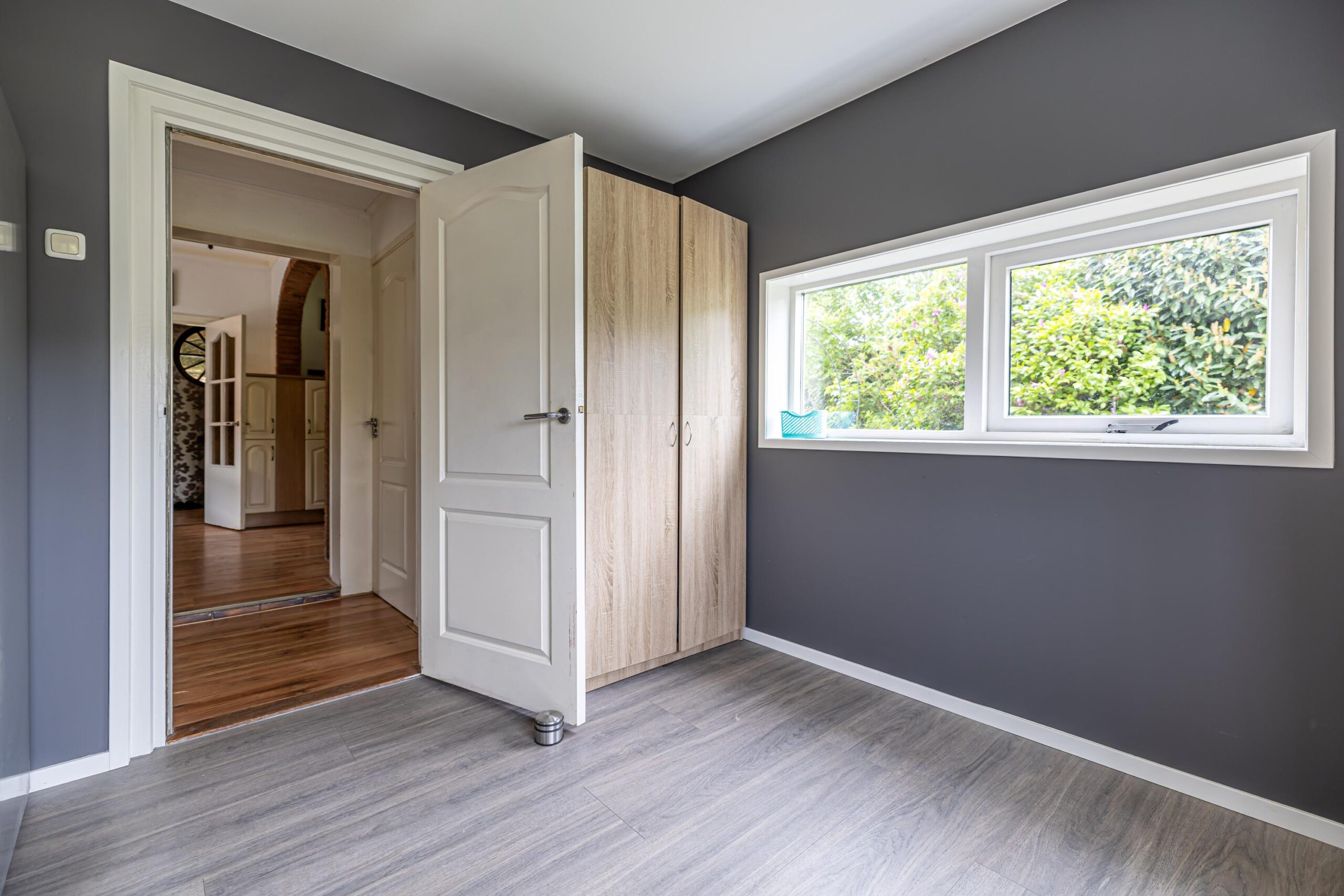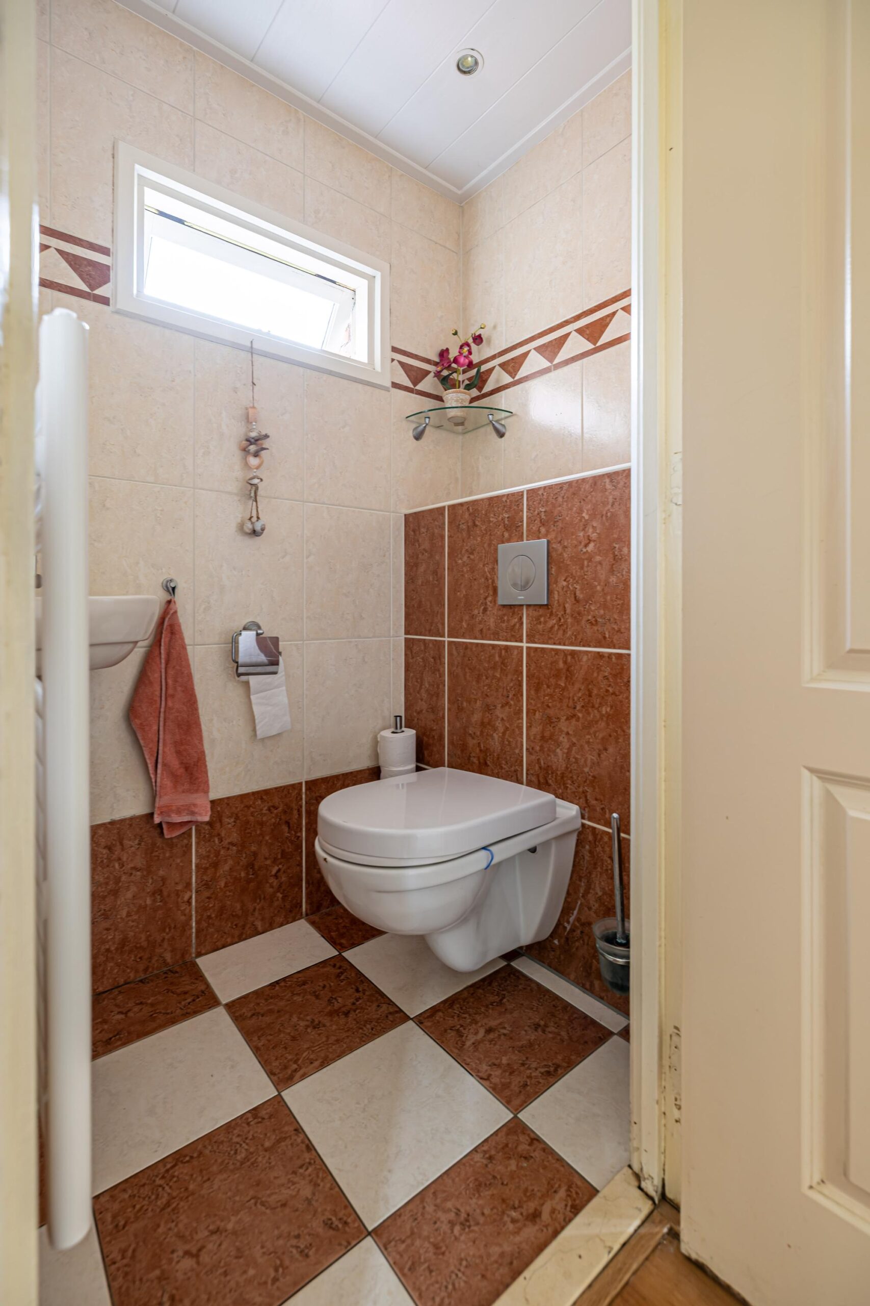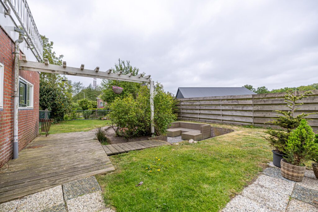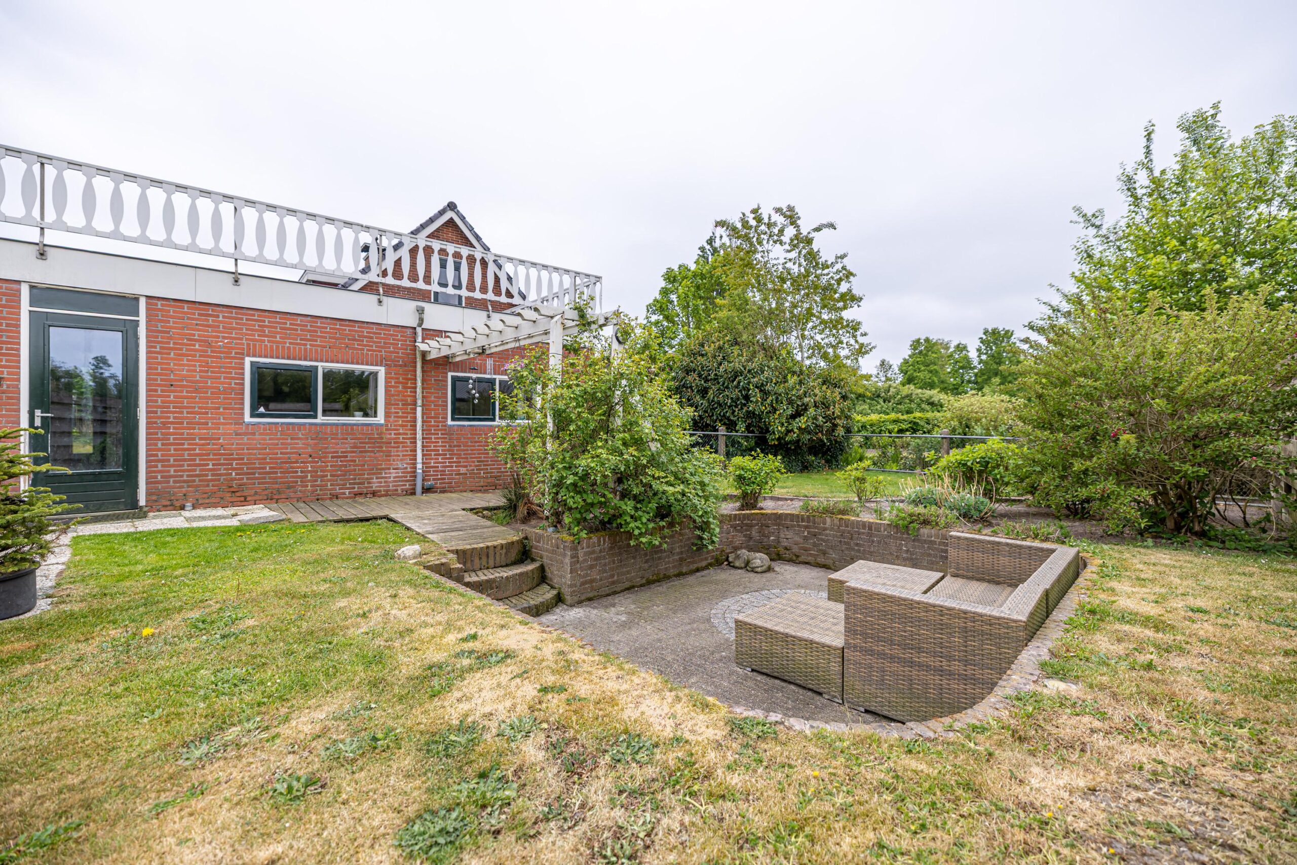 Op de eerste verdieping vind je een overloop met dakkapel en drie slaapkamers. Eén van deze slaapkamers is voorzien van een wastafelmeubel en heeft toegang tot een dakterras. Het geheel beschikt over een ruime tuin met vijver en diverse zithoeken. De oprit biedt bovendien voldoende parkeergelegenheid op eigen terrein.