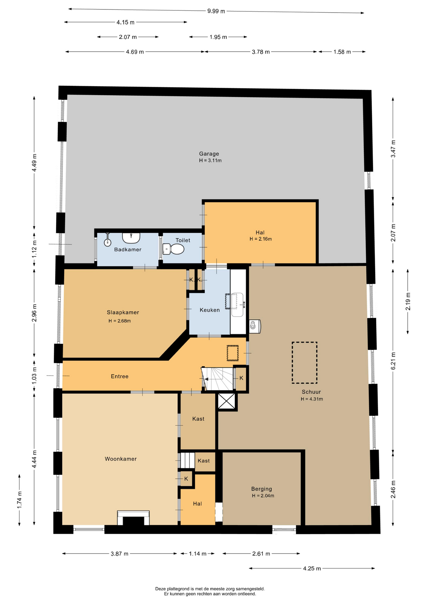 Deze informatie is door ons met de nodige zorgvuldigheid samengesteld, veelal aan de hand van de door verkoper aan ons ter hand gestelde gegevens en tekeningen. Onzerzijds wordt echter geen enkele aansprakelijkheid aanvaard voor enige onvolledigheid, onjuistheid of anderszins, dan wel de gevolgen daarvan. Dit geldt voor onder meer de opgegeven maten, oppervlakten, isolatie en ouderdom van technische installaties.
