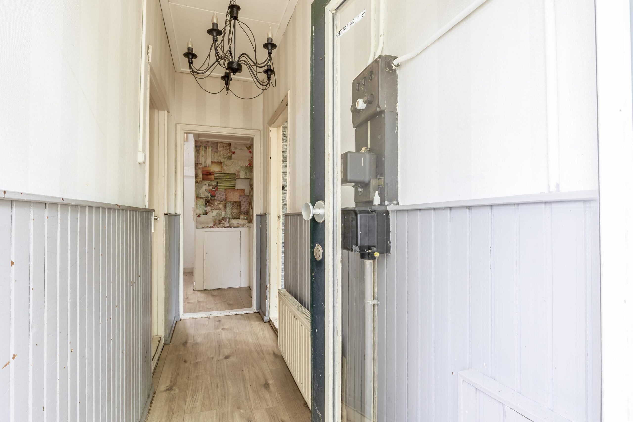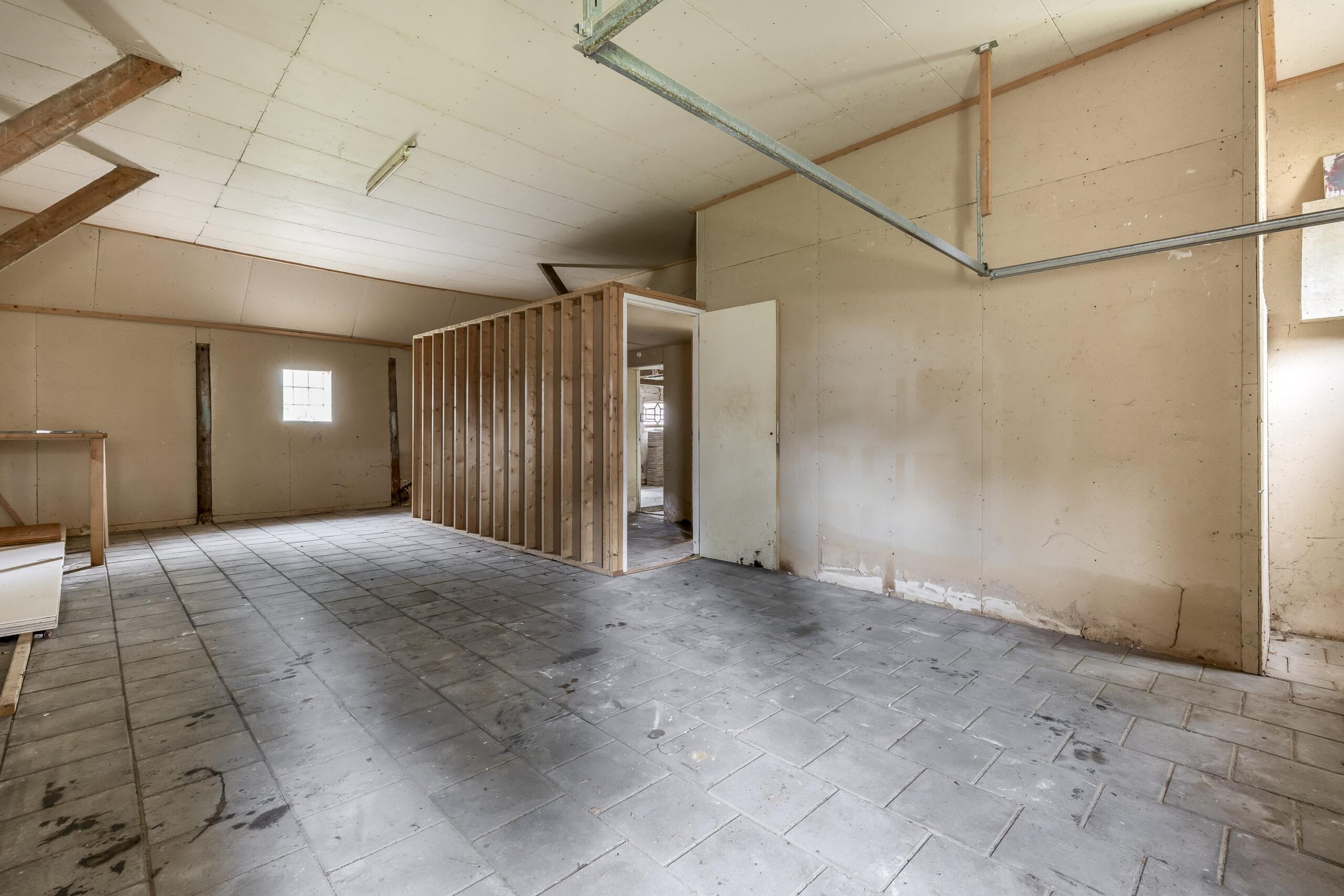 Via de entree kom je in de ruime, lichte woonkamer, waar meerdere kasten aanwezig zijn en een doorloop is naar een extra berg- of studeerkamer. Verder bevindt zich op de begane grond een slaapkamer met aansluitend een badkamer welke is voorzien van een douche en wastafel. Achterin het woonhuis is de keuken gesitueerd en vanuit de keuken stap je door naar de hal en het toilet. Via de hal kom je vervolgens in de royale aangebouwde stenen garage. Deze ruimte is ideaal te gebruiken voor opslag of te gebruiken als hobby/klusruimte. Achter de woning staat nog een zeer royale aangebouwde schuur hier bevindt zich de cv-installatie. Op de eerste verdieping bevinden zich twee slaapkamers en een overloop.