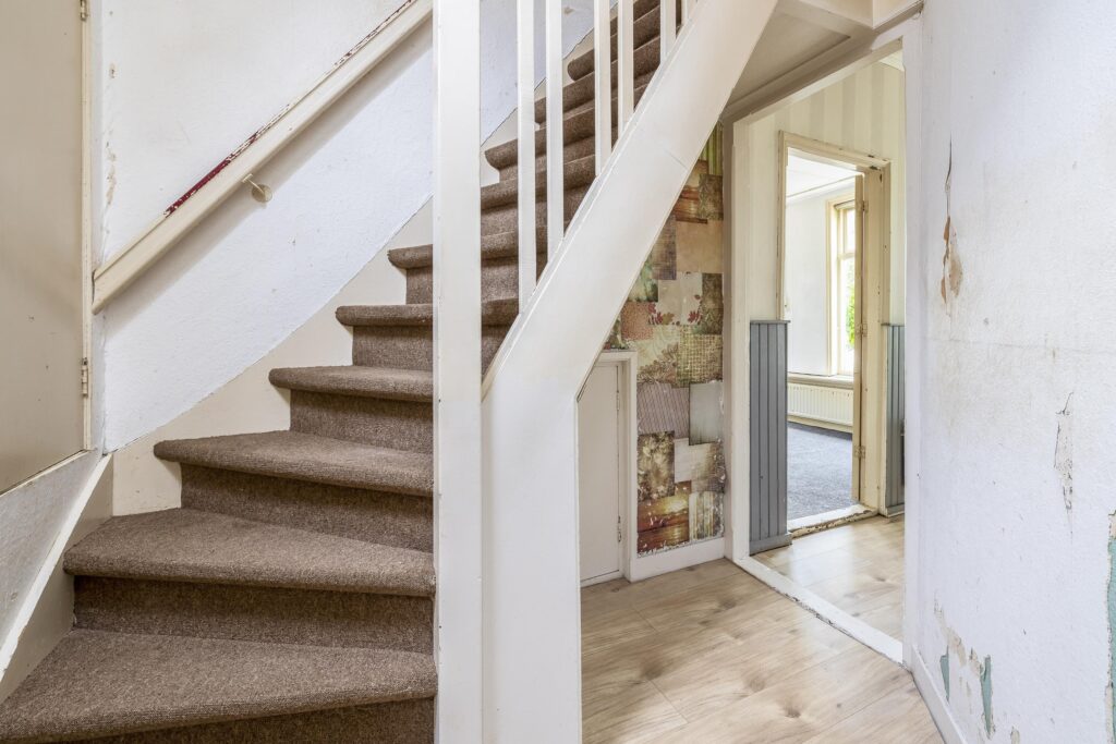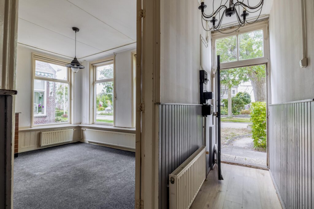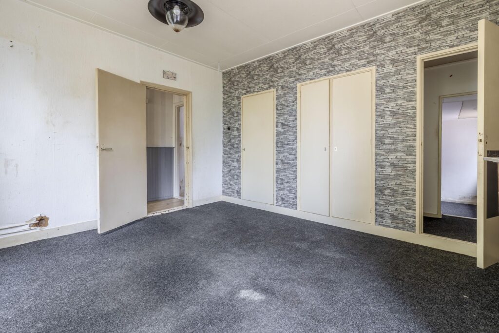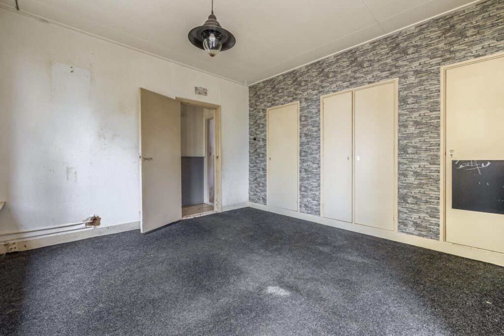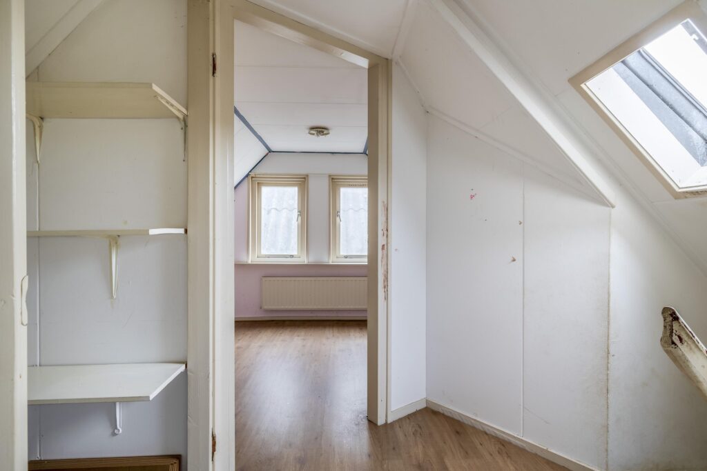 Via de entree kom je in de ruime, lichte woonkamer, waar meerdere kasten aanwezig zijn en een doorloop is naar een extra berg- of studeerkamer. Verder bevindt zich op de begane grond een slaapkamer met aansluitend een badkamer welke is voorzien van een douche en wastafel. Achterin het woonhuis is de keuken gesitueerd en vanuit de keuken stap je door naar de hal en het toilet. Via de hal kom je vervolgens in de royale aangebouwde stenen garage. Deze ruimte is ideaal te gebruiken voor opslag of te gebruiken als hobby/klusruimte. Achter de woning staat nog een zeer royale aangebouwde schuur hier bevindt zich de cv-installatie. Op de eerste verdieping bevinden zich twee slaapkamers en een overloop.