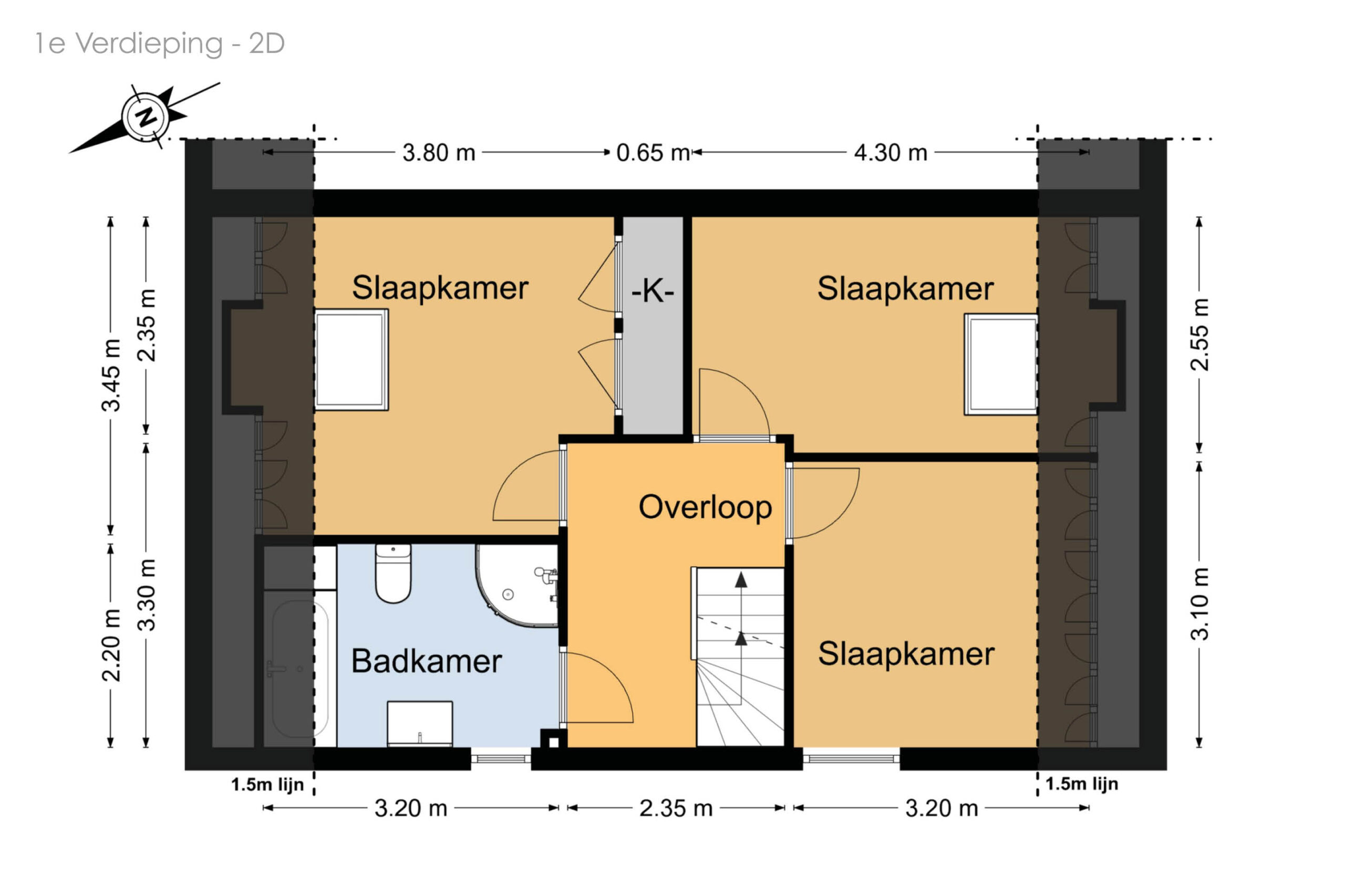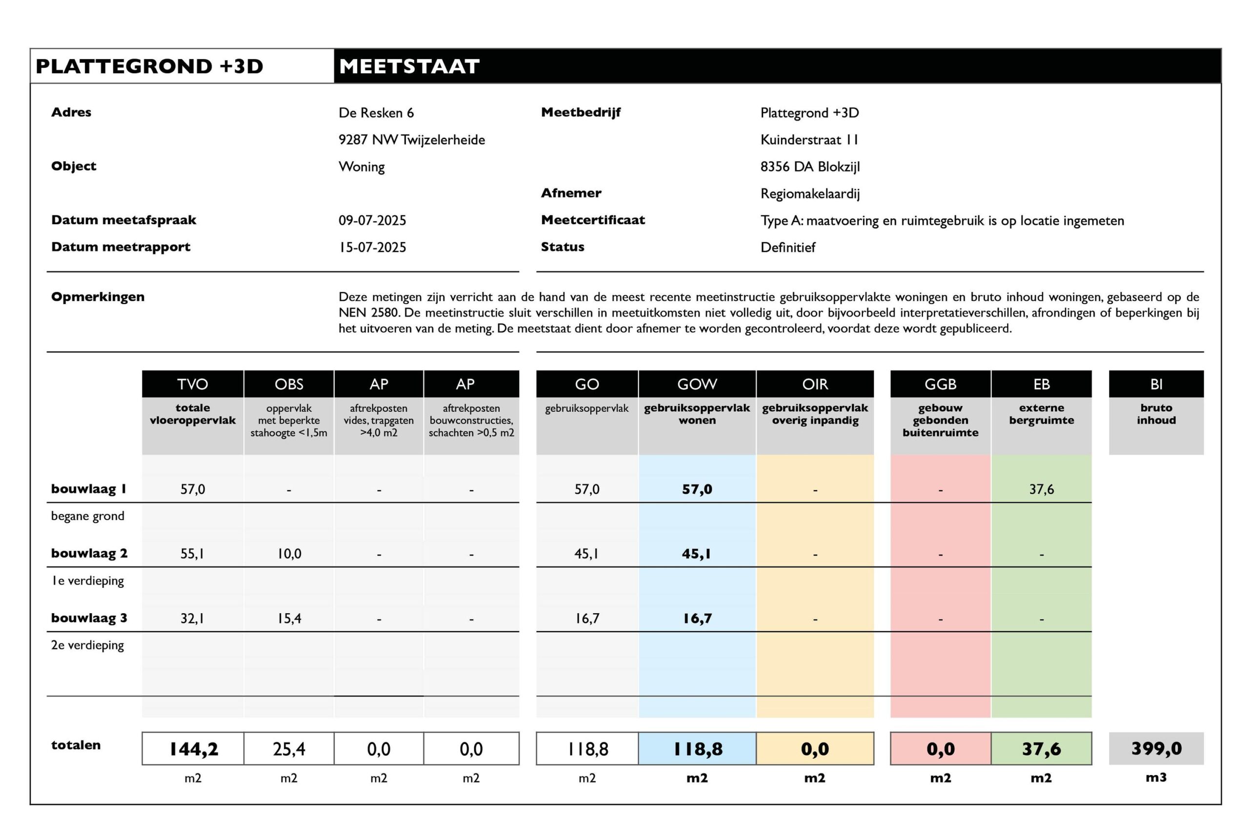 Toelichtingsclausule NEN2580: De Meetinstructie is gebaseerd op de NEN2580. De Meetinstructie is bedoeld om een meer eenduidige manier van meten toe te passen voor het geven van een indicatie van de gebruiksoppervlakte. De Meetinstructie sluit verschillen in meetuitkomsten niet volledig uit, door bijvoorbeeld interpretatieverschillen, afrondingen of beperkingen bij het uitvoeren van de meting.