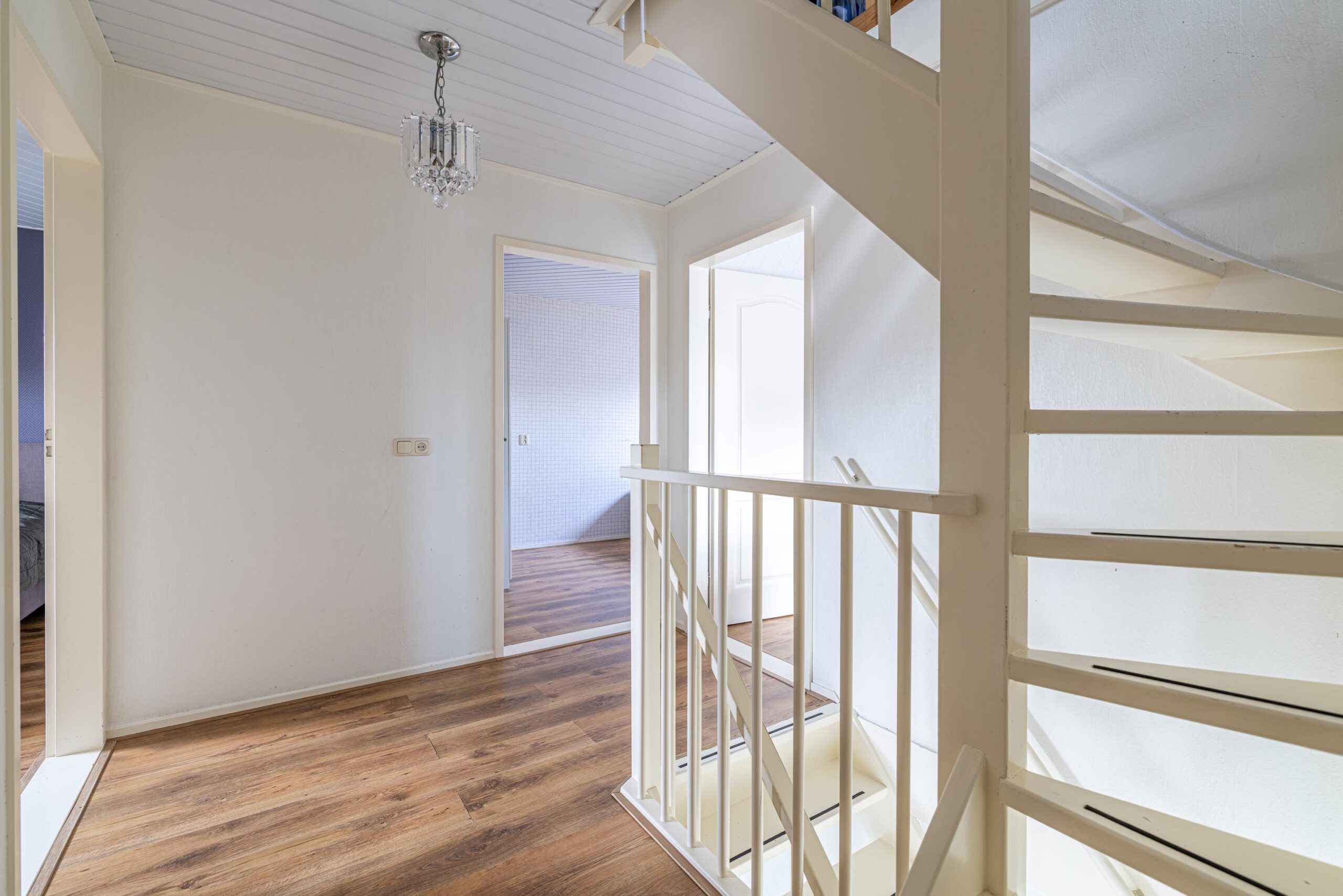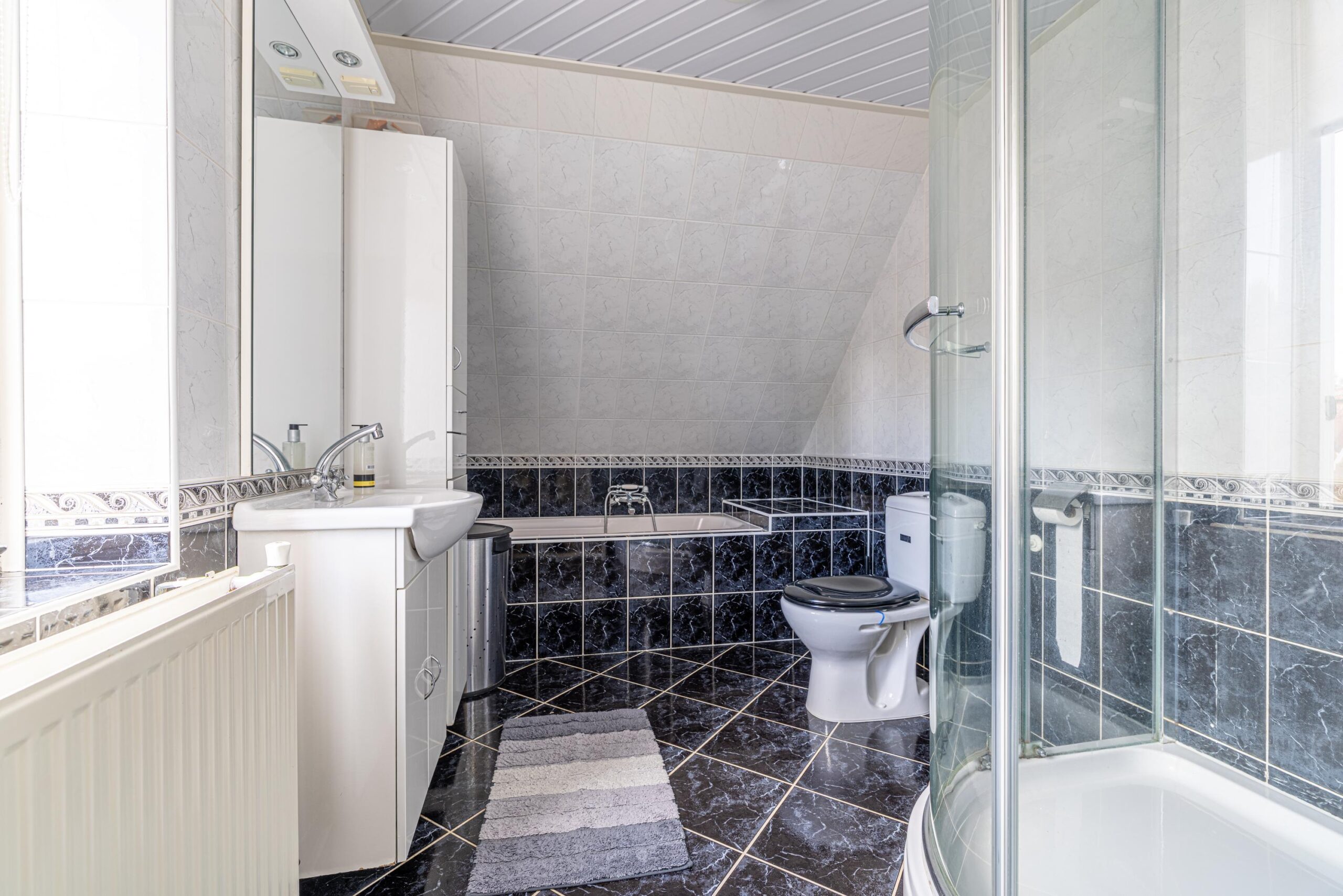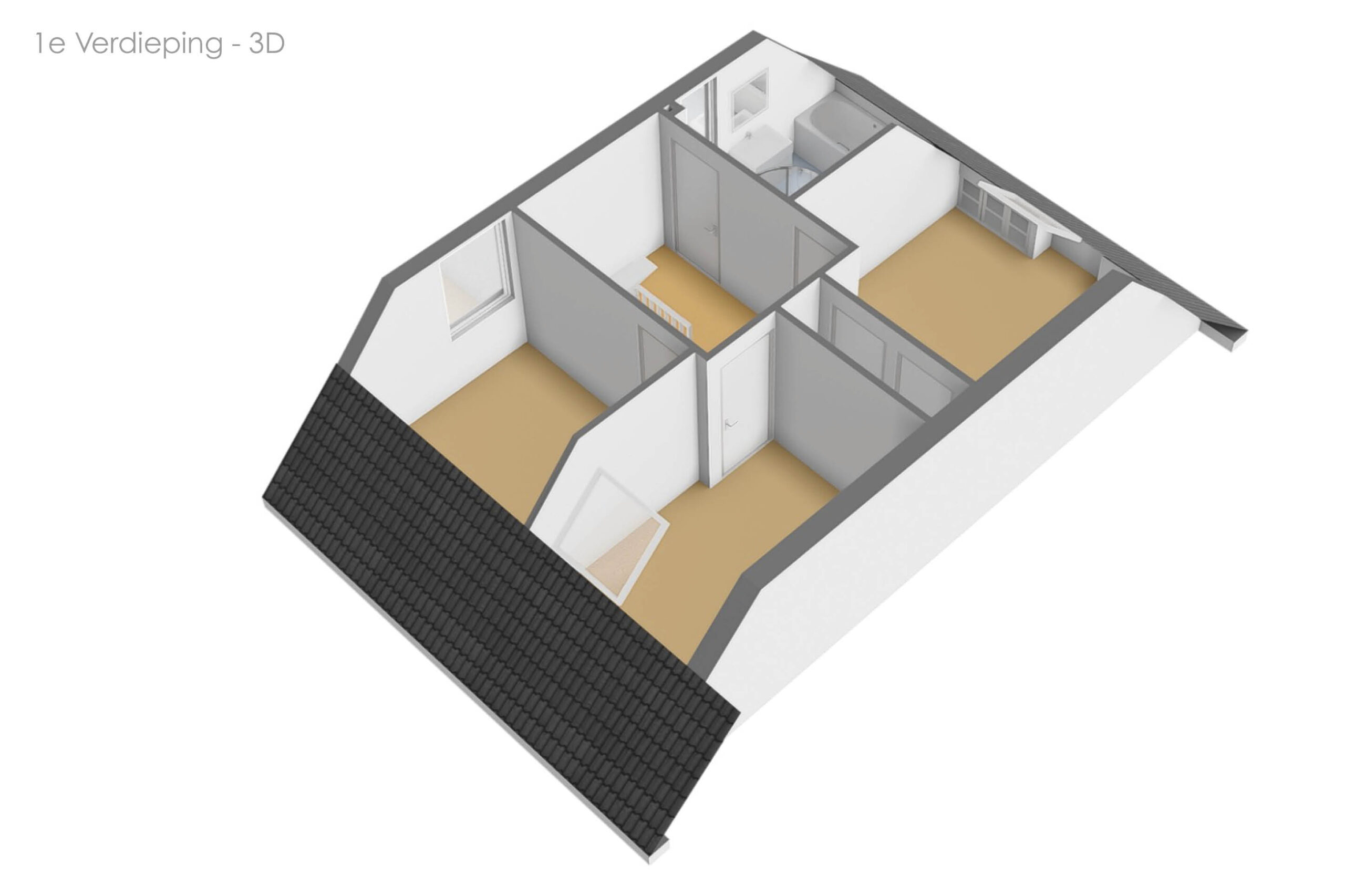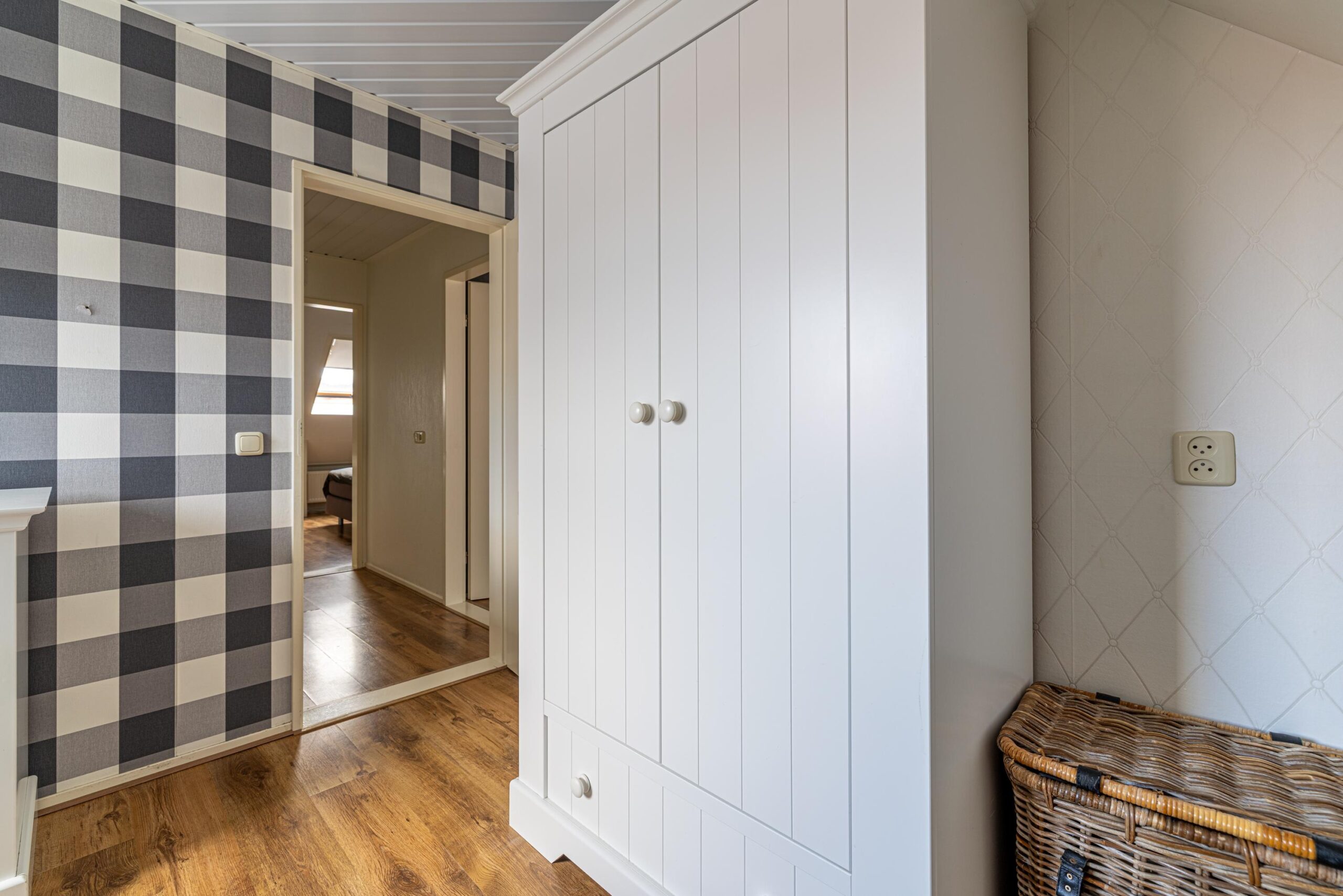 Op de eerste verdieping bereik je via de overloop drie slaapkamers, waarvan één is voorzien van een praktische inbouwkast. De nette badkamer beschikt over een ligbad, douche, toilet en wastafel. Ook op deze verdieping is airconditioning aanwezig. De zolder is via een vaste trap bereikbaar en ingericht als extra kamer. Ideaal als werkplek, slaap- of hobbykamer.