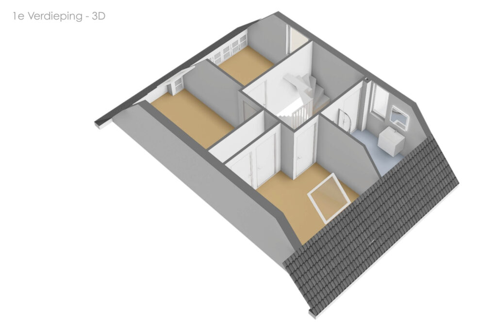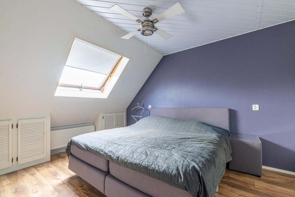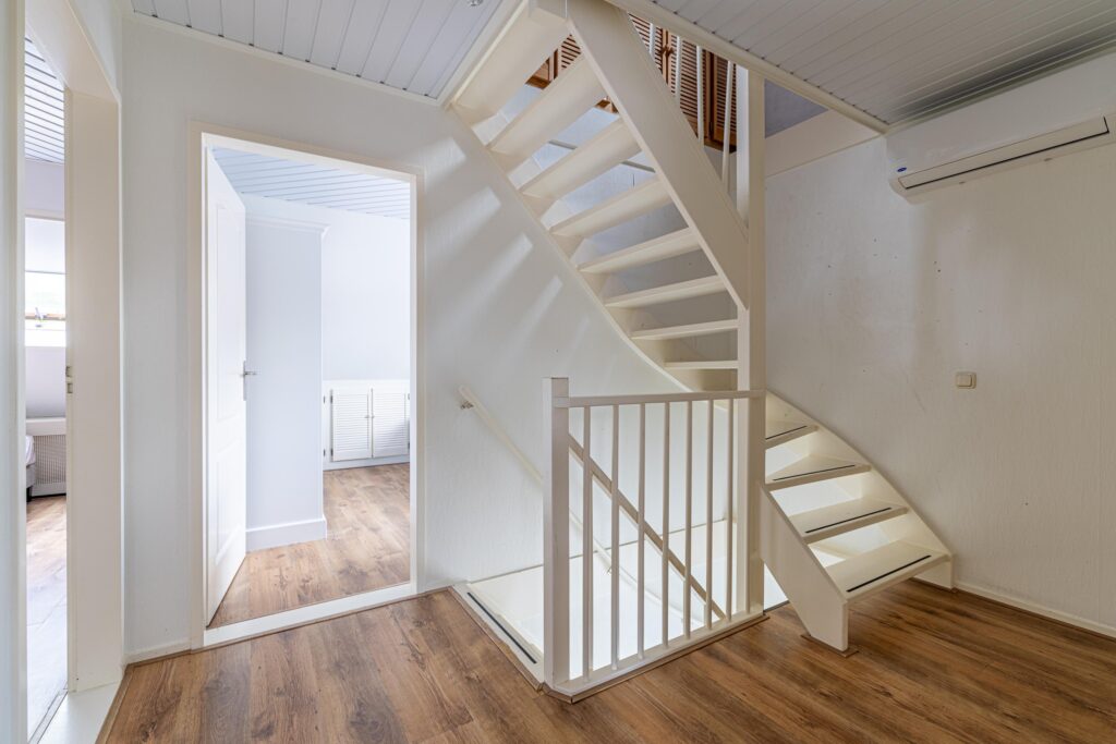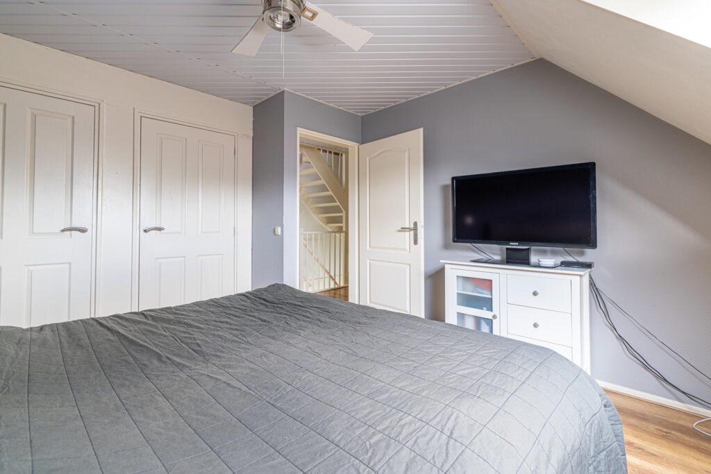 Op de eerste verdieping bereik je via de overloop drie slaapkamers, waarvan één is voorzien van een praktische inbouwkast. De nette badkamer beschikt over een ligbad, douche, toilet en wastafel. Ook op deze verdieping is airconditioning aanwezig. De zolder is via een vaste trap bereikbaar en ingericht als extra kamer. Ideaal als werkplek, slaap- of hobbykamer.