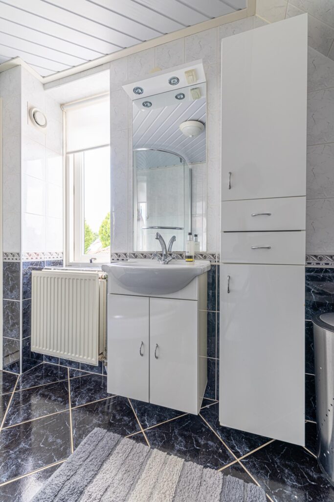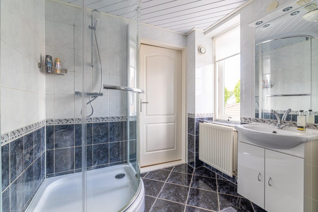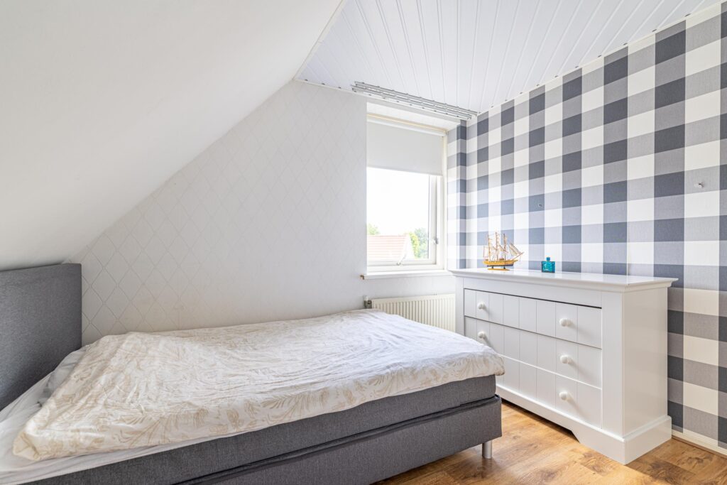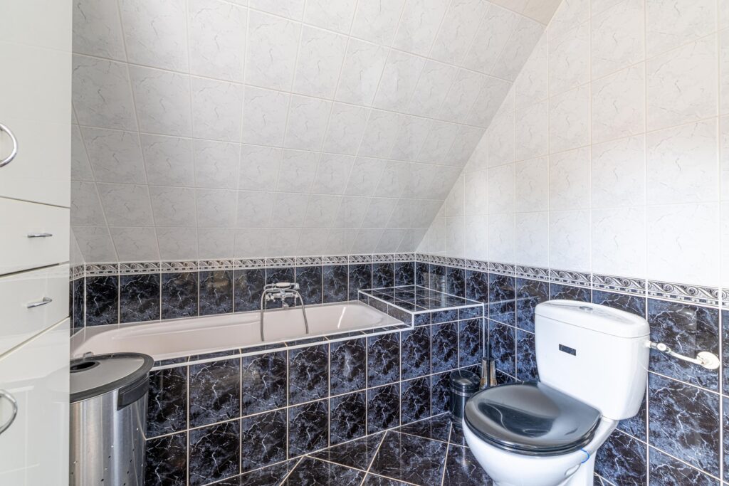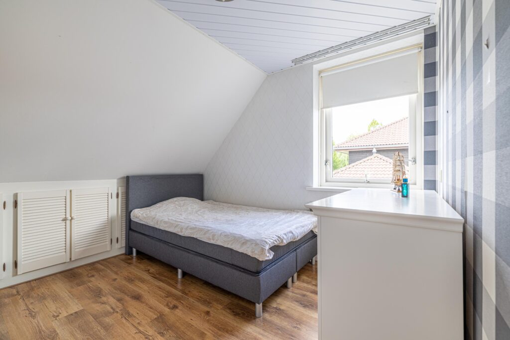 Op de eerste verdieping bereik je via de overloop drie slaapkamers, waarvan één is voorzien van een praktische inbouwkast. De nette badkamer beschikt over een ligbad, douche, toilet en wastafel. Ook op deze verdieping is airconditioning aanwezig. De zolder is via een vaste trap bereikbaar en ingericht als extra kamer. Ideaal als werkplek, slaap- of hobbykamer.