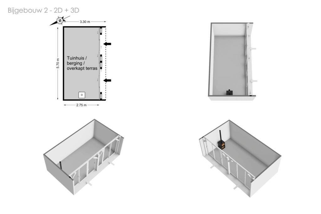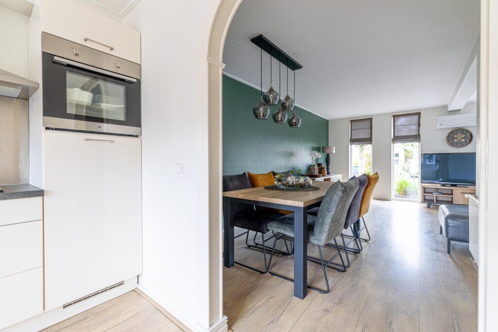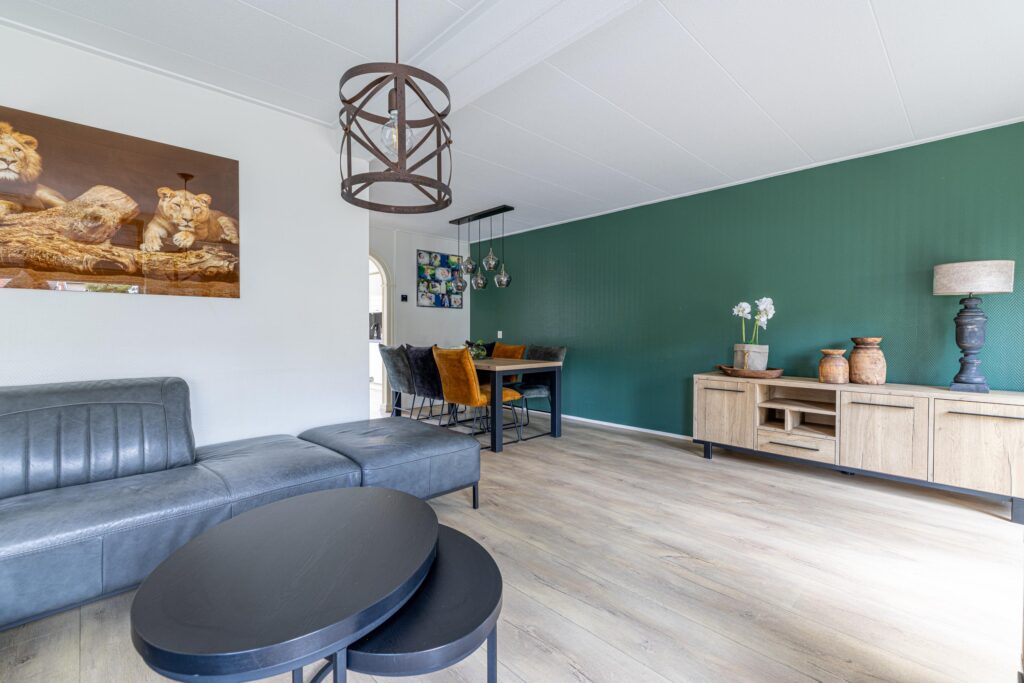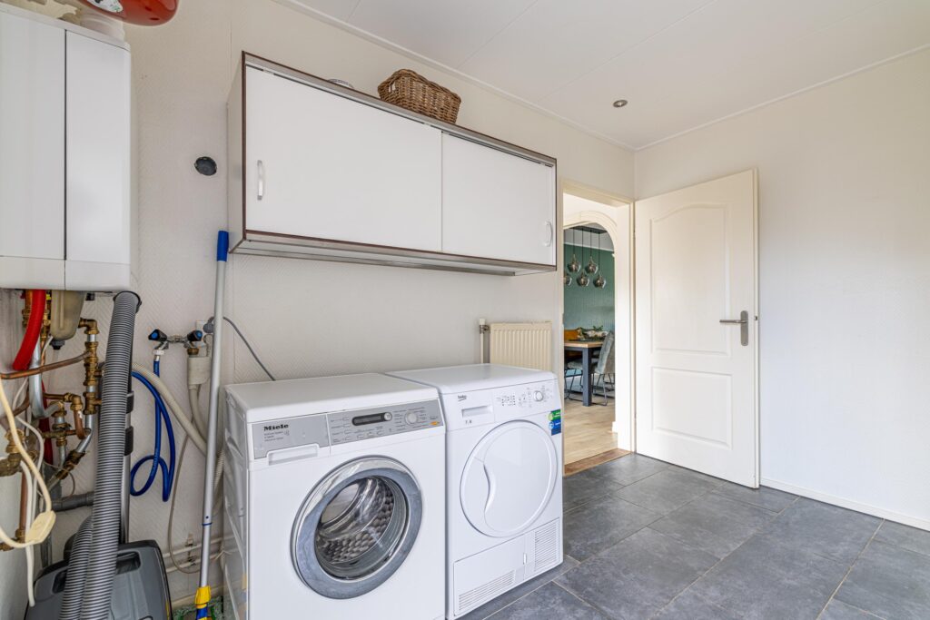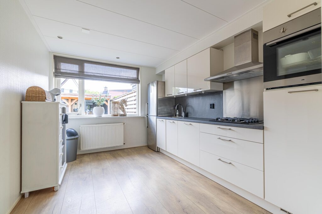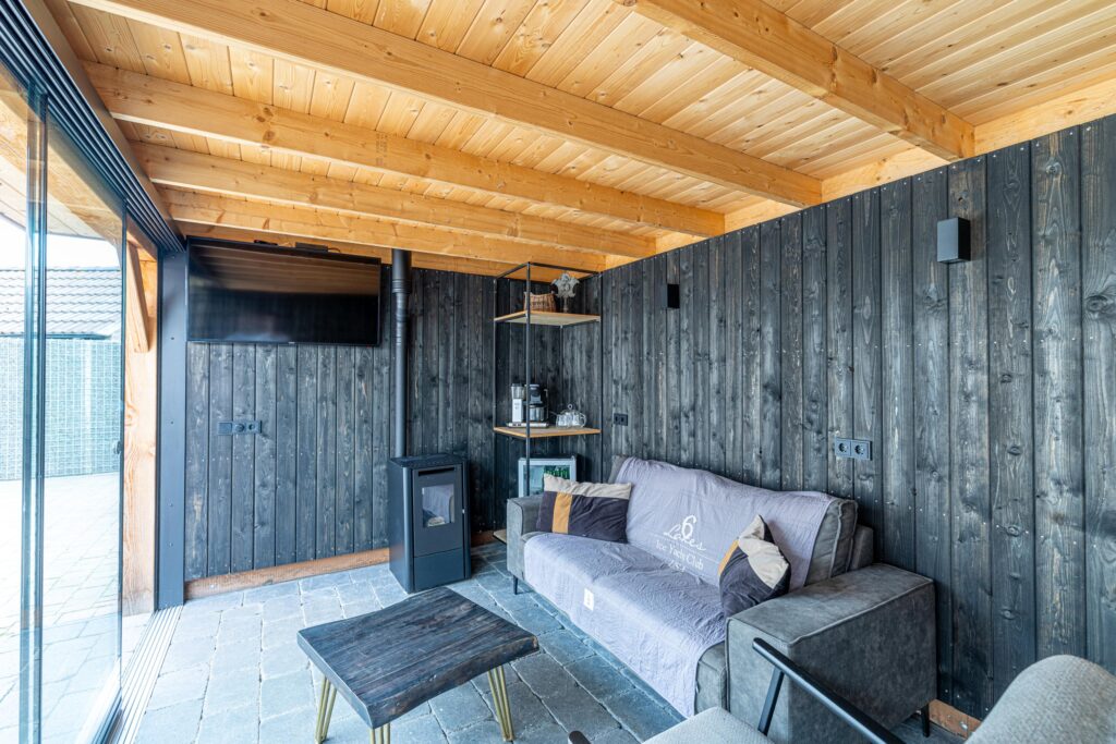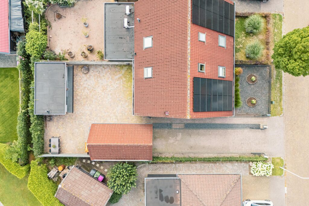 Daarnaast heeft de woning nog een vrijstaande houten garage die ruimte biedt voor fietsen, gereedschap of hobby’s en een achtertuin met een overkapping. Deze overkapping heeft een glazen pui en een pelletkachel.