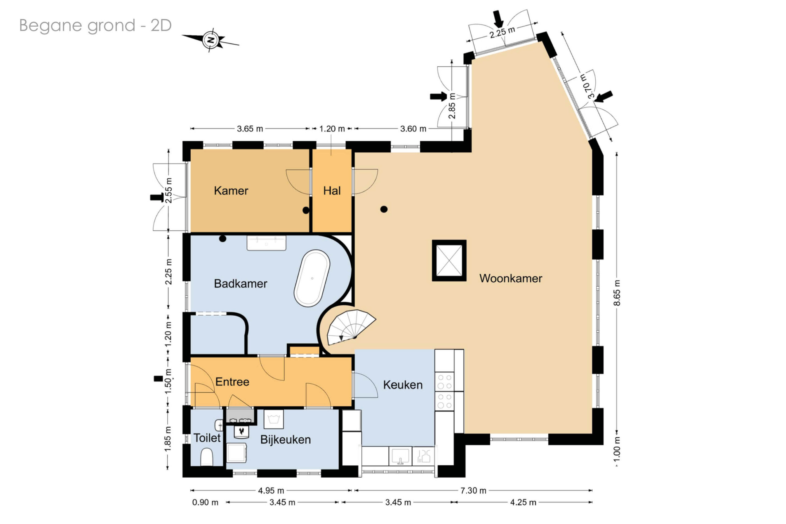 - 2 badkamer, waarvan 1 op de begane grond