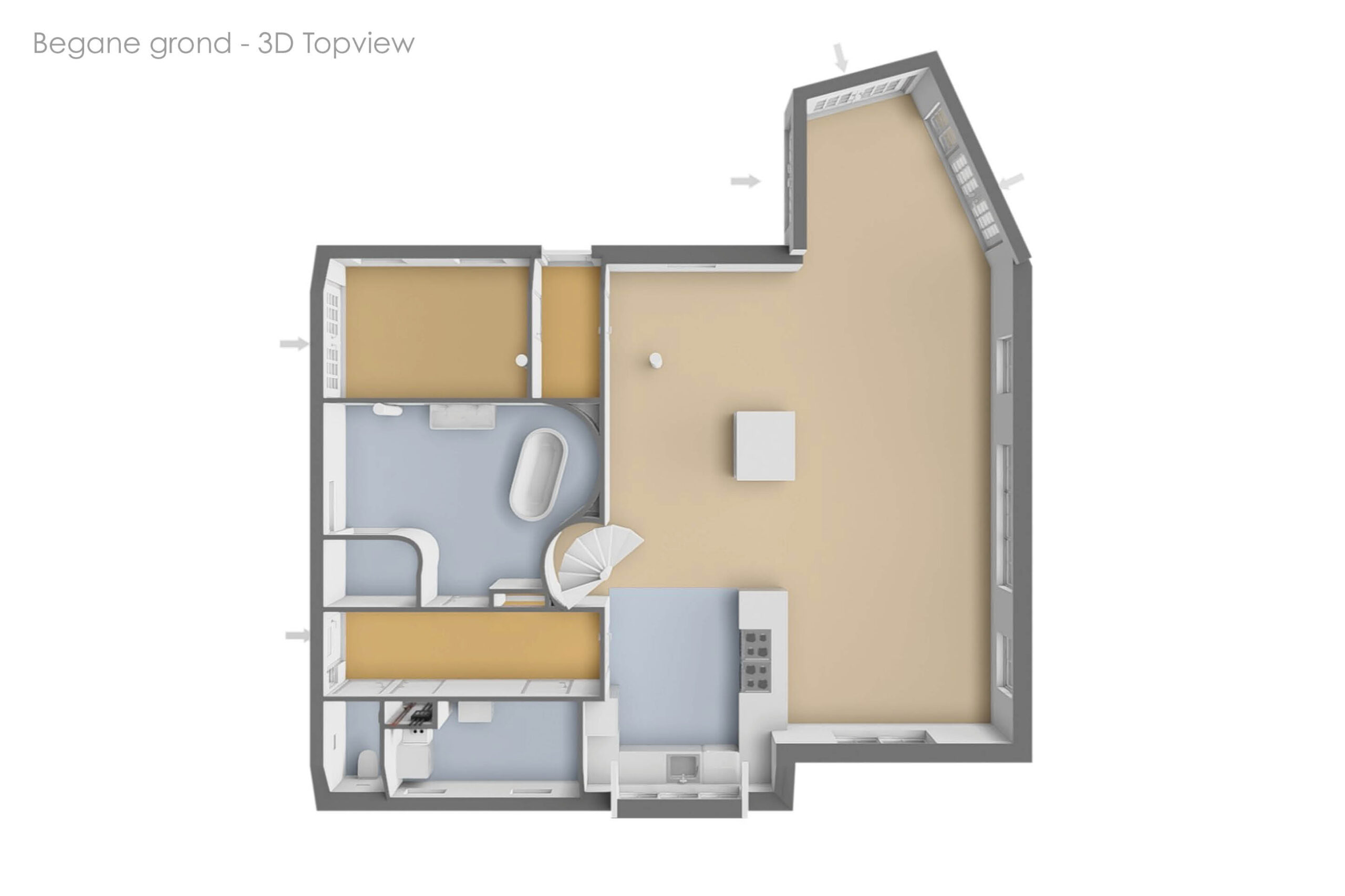 - Vloerverwarming beneden, voorzien van airco's