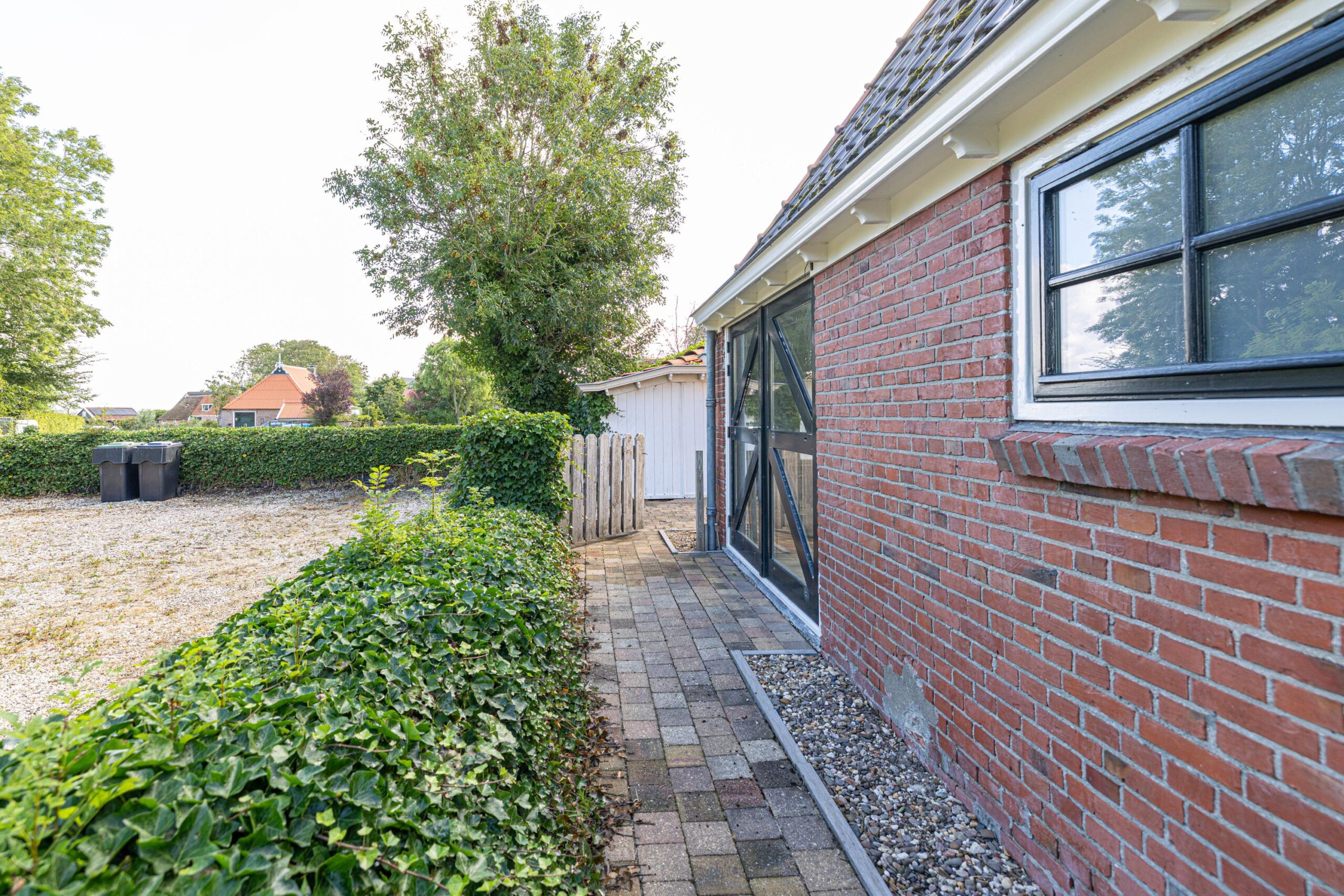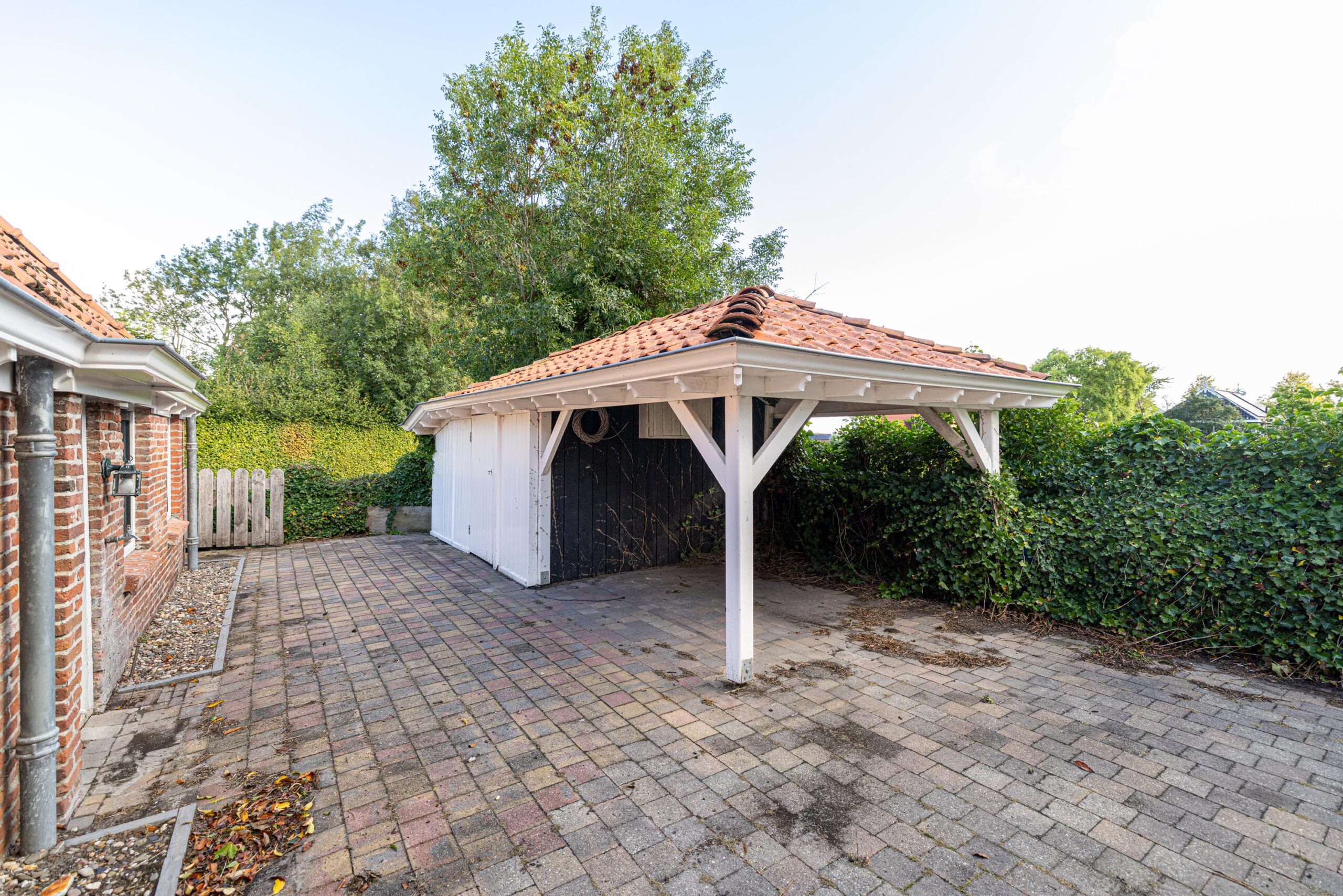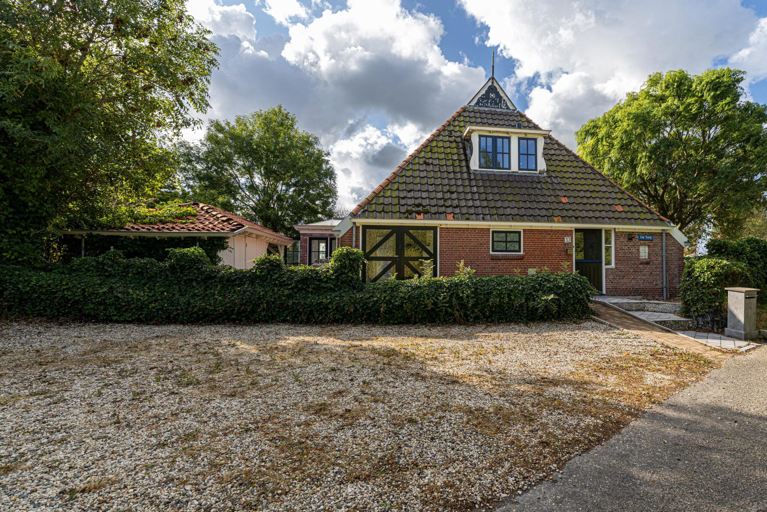 De woning beschikt over een ruime tuin met verschillende zithoeken, waaronder een terras, een zitkuil en een overkapping, waar je heerlijk kunt ontspannen.