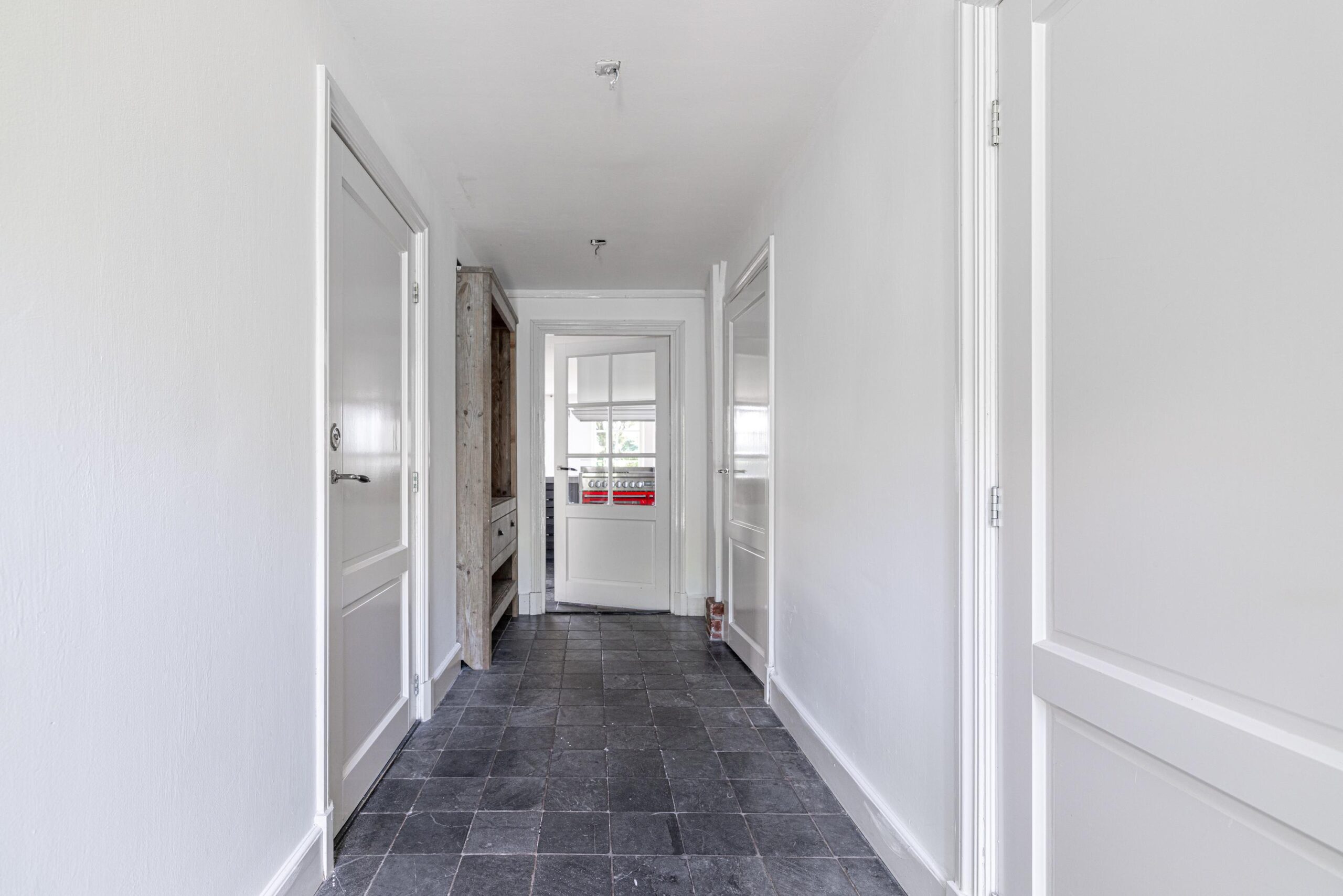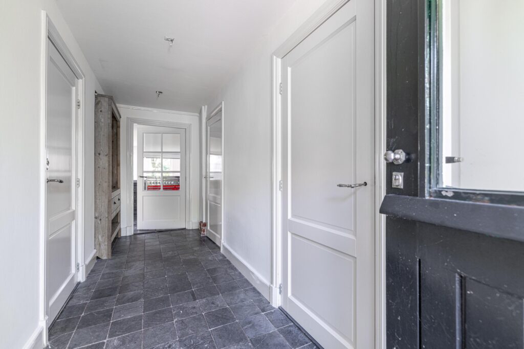 Deze woning biedt een royale woonkamer met grote raampartijen die zorgen voor veel natuurlijk licht. De serre vormt een sfeervolle extra ruimte waar je kunt genieten van het uitzicht op de tuin. In de woonkamer bevindt zich tevens de trap naar de eerste verdieping. De open keuken sluit aan op de woonkamer. Vanuit de keuken is de hal bereikbaar, die toegang biedt tot de bijkeuken, een separaat toilet en een nette badkamer met een ligbad en dubbele wastafel. Daarnaast is er een extra gang op de begane grond die leidt naar een slaapkamer of werkkamer, ideaal voor thuiswerken of gelijkvloers wonen. Op de eerste verdieping bevinden zich drie slaapkamers, waarvan één extra ruim. Verder is er een tweede badkamer voorzien van een douche, wastafel en toilet.