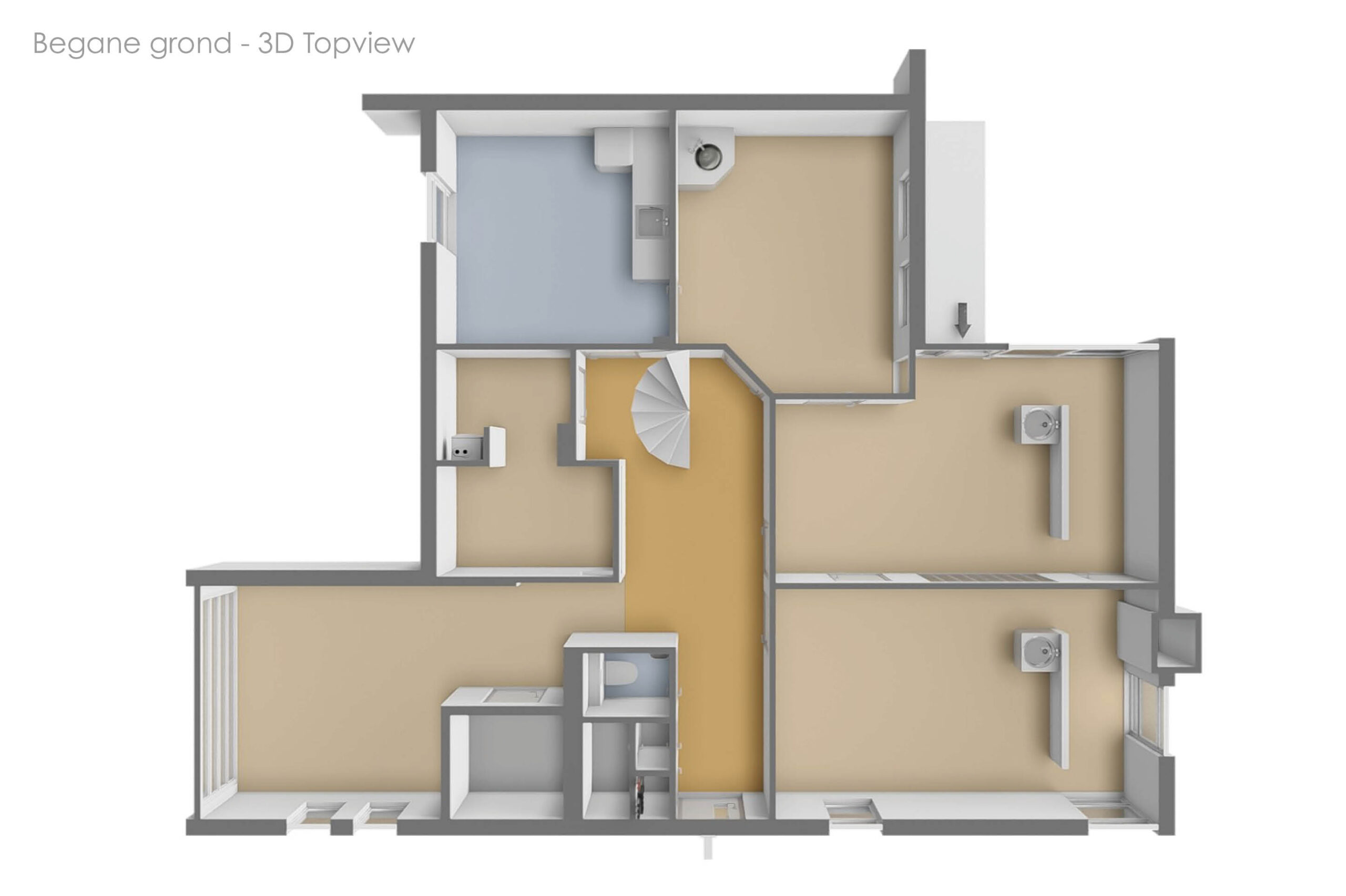 In de beschikbare plattegronden is reeds een aanpassing uitgewerkt waarbij alle woonvoorzieningen op de begane grond kunnen worden gerealiseerd. Hierdoor is het pand uitermate geschikt voor gelijkvloers wonen, al dan niet gecombineerd met werken aan huis.