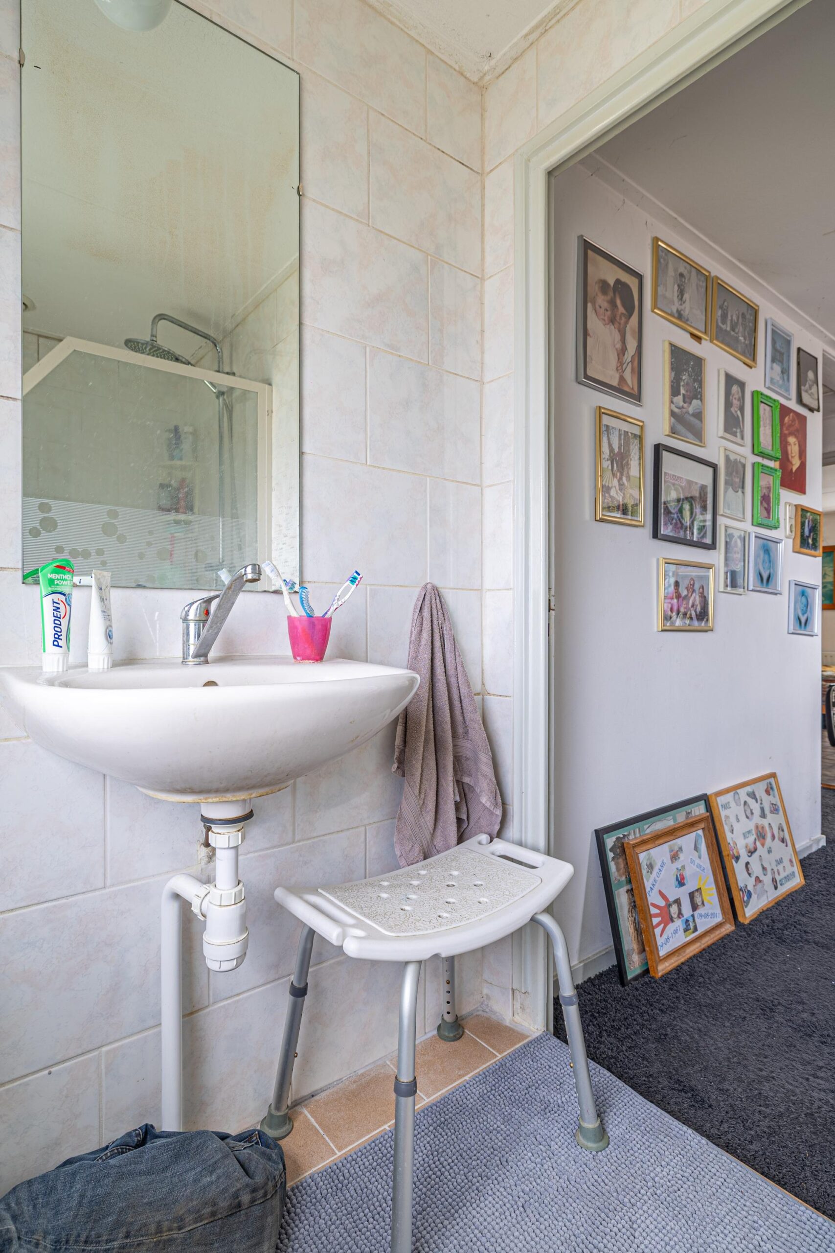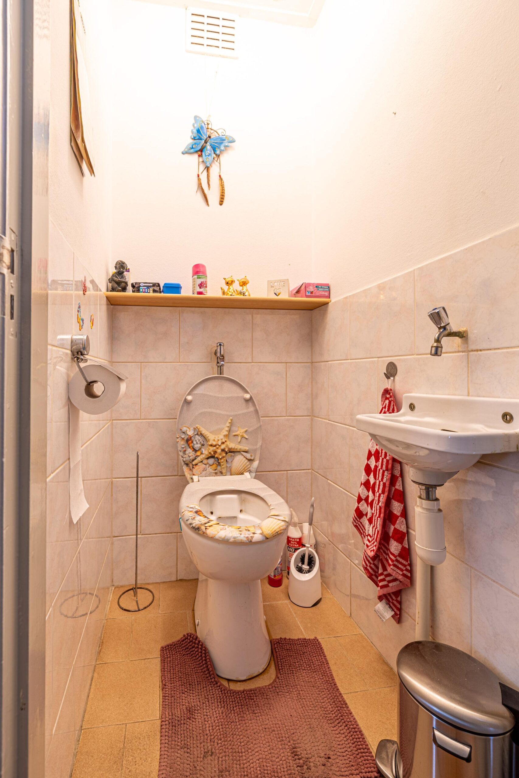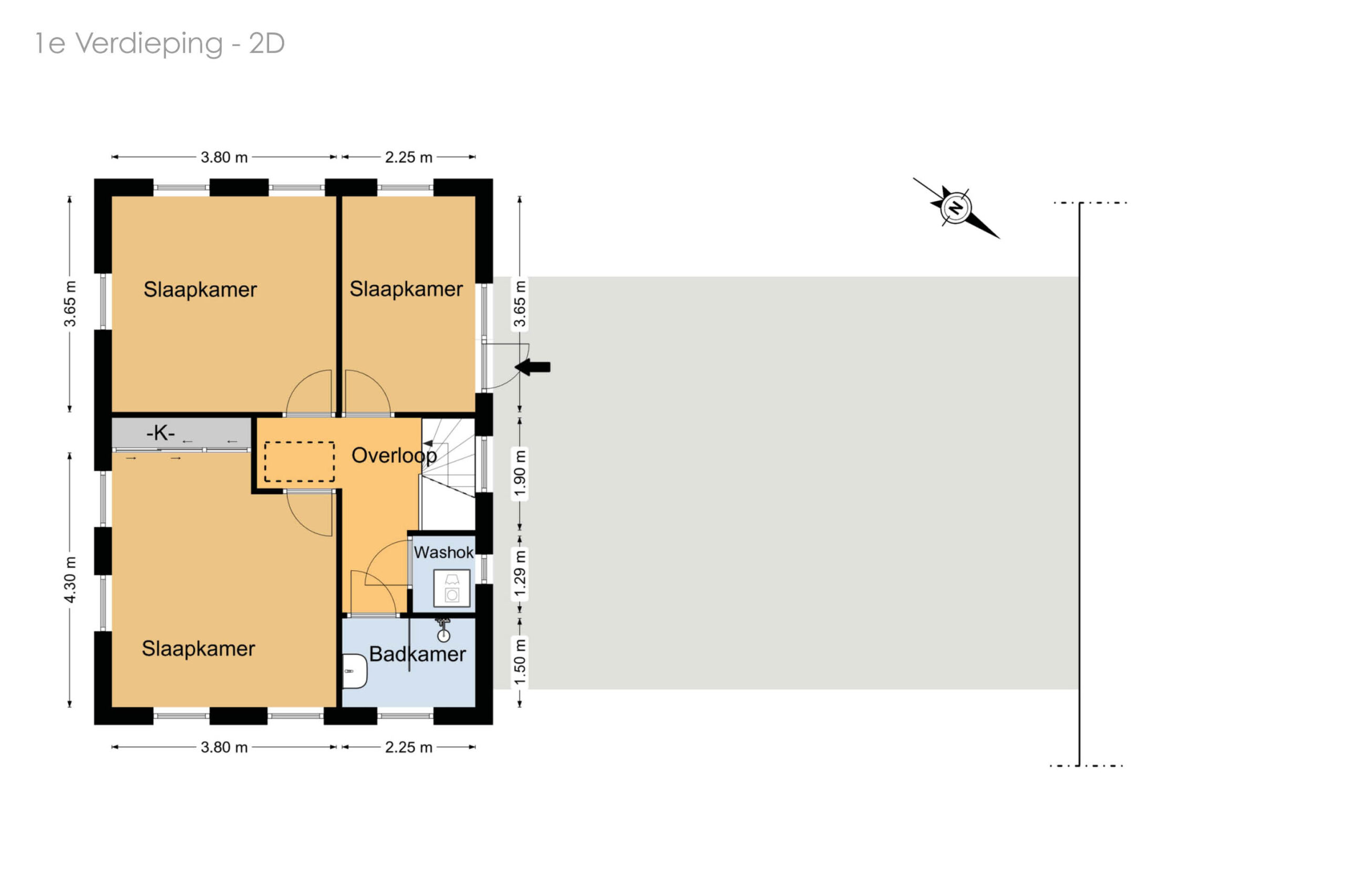 Op de eerste verdieping biedt de woning een overloop, drie slaapkamers waarvan één met inbouwkast, een apart washok en een badkamer voorzien van een wastafel en toilet.