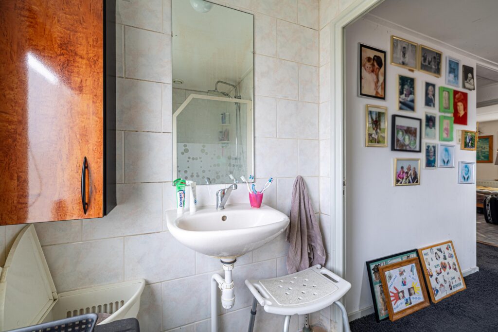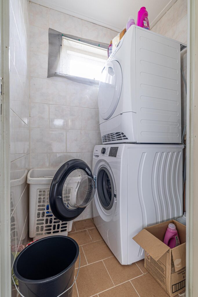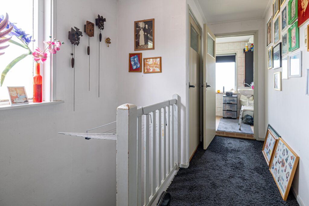 Op de eerste verdieping biedt de woning een overloop, drie slaapkamers waarvan één met inbouwkast, een apart washok en een badkamer voorzien van een wastafel en toilet.