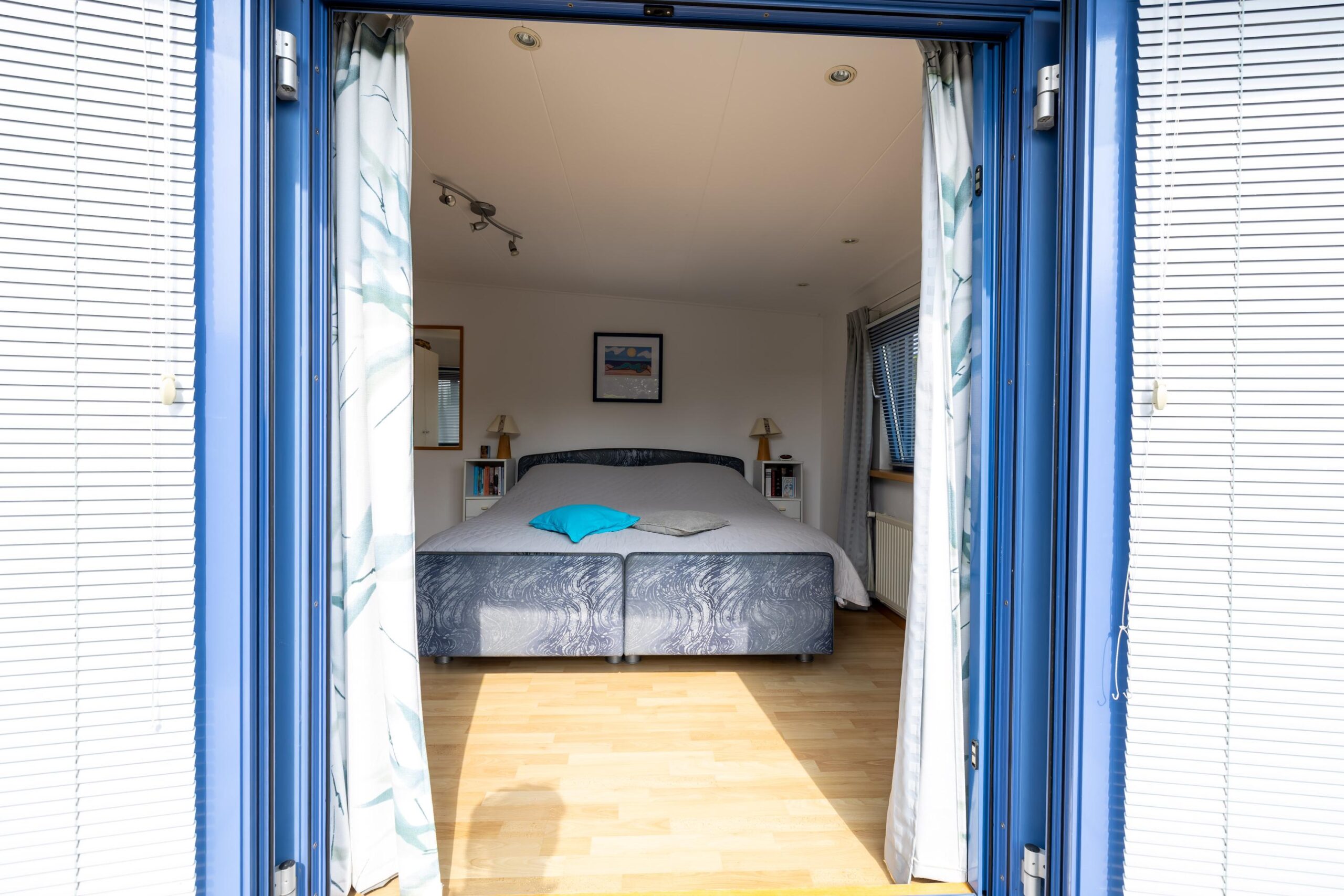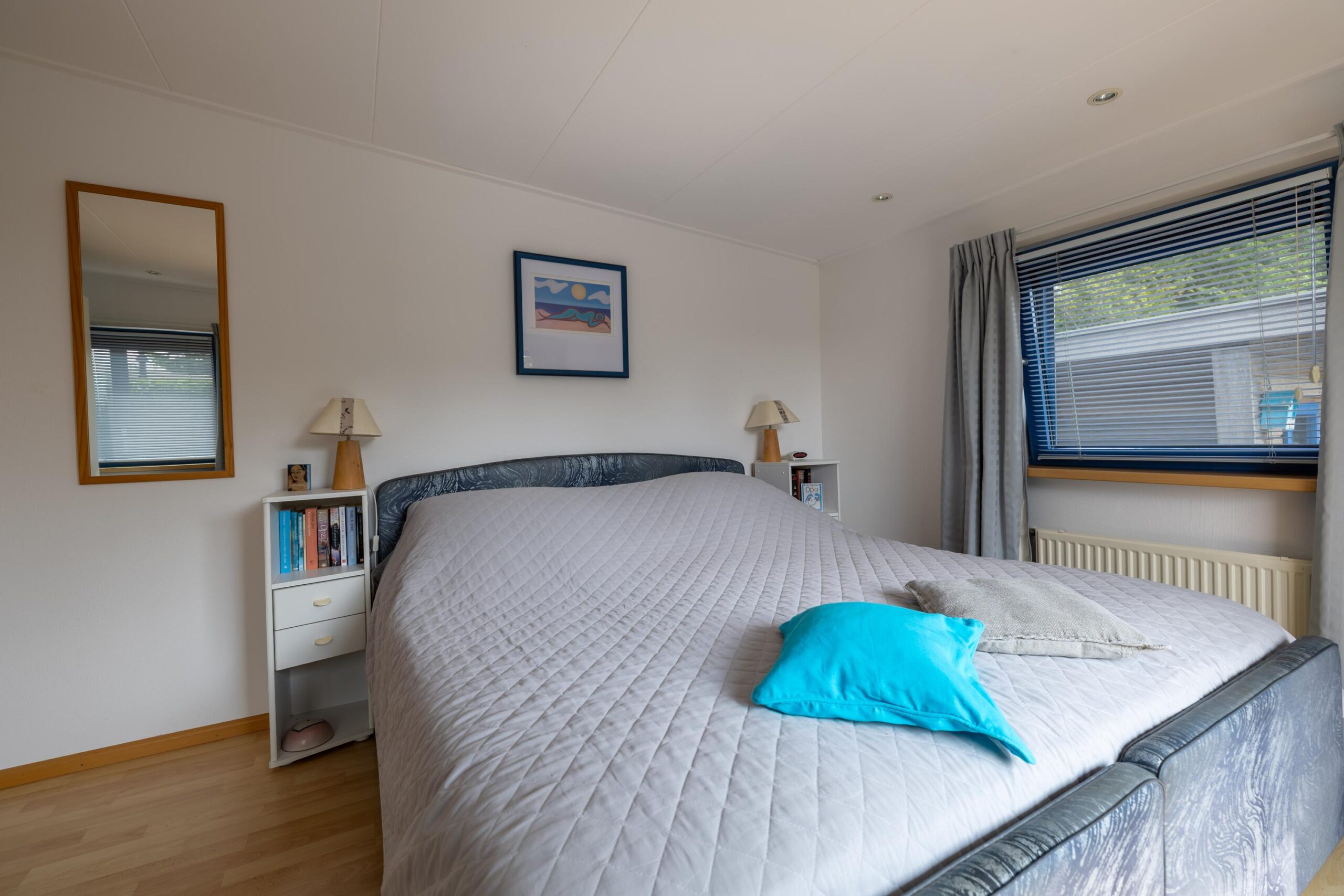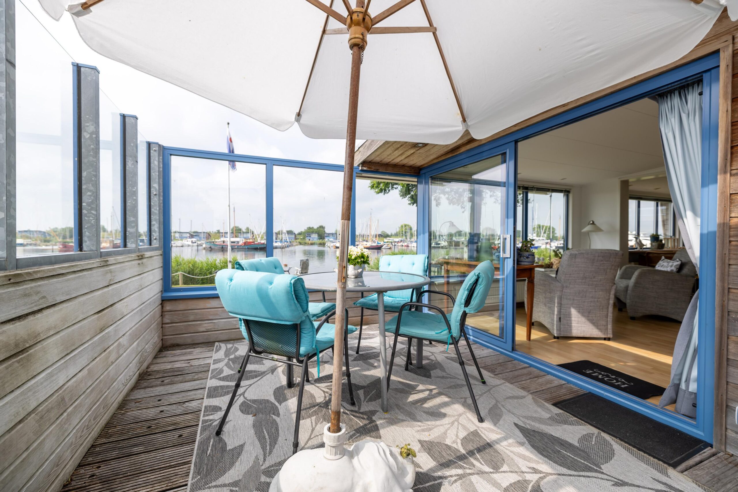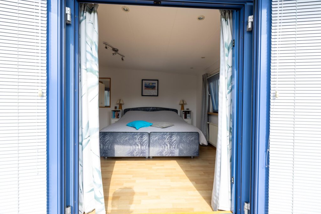 The living room is spacious and light. Thanks to the large windows you have a beautiful view of the Lauwersmeer and the marina. Adjacent to the living room is the open kitchen. The kitchen is equipped with various built-in appliances. Next to the kitchen is a storage room, with connections for white goods.