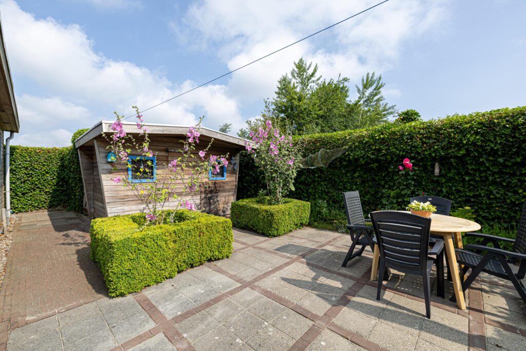 Outside you will find a beautifully landscaped garden, with a terrace. The garden is located on the southwest. Thanks to this favorable location you can fully enjoy the afternoon and evening sun here. At the back of the garden is a detached wooden shed, ideal for extra storage space.