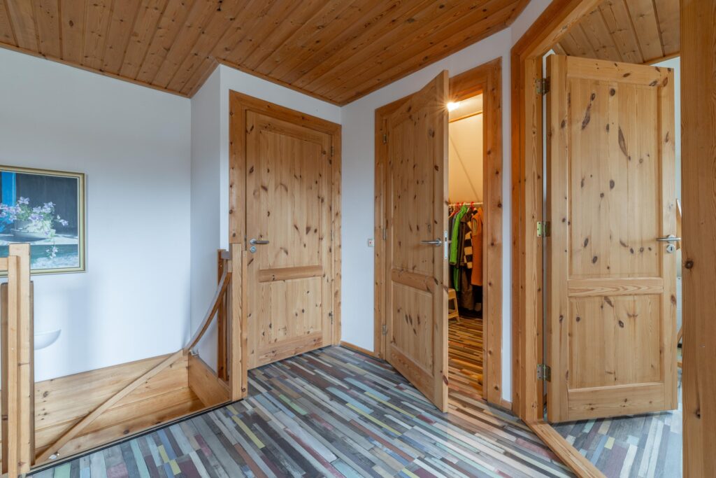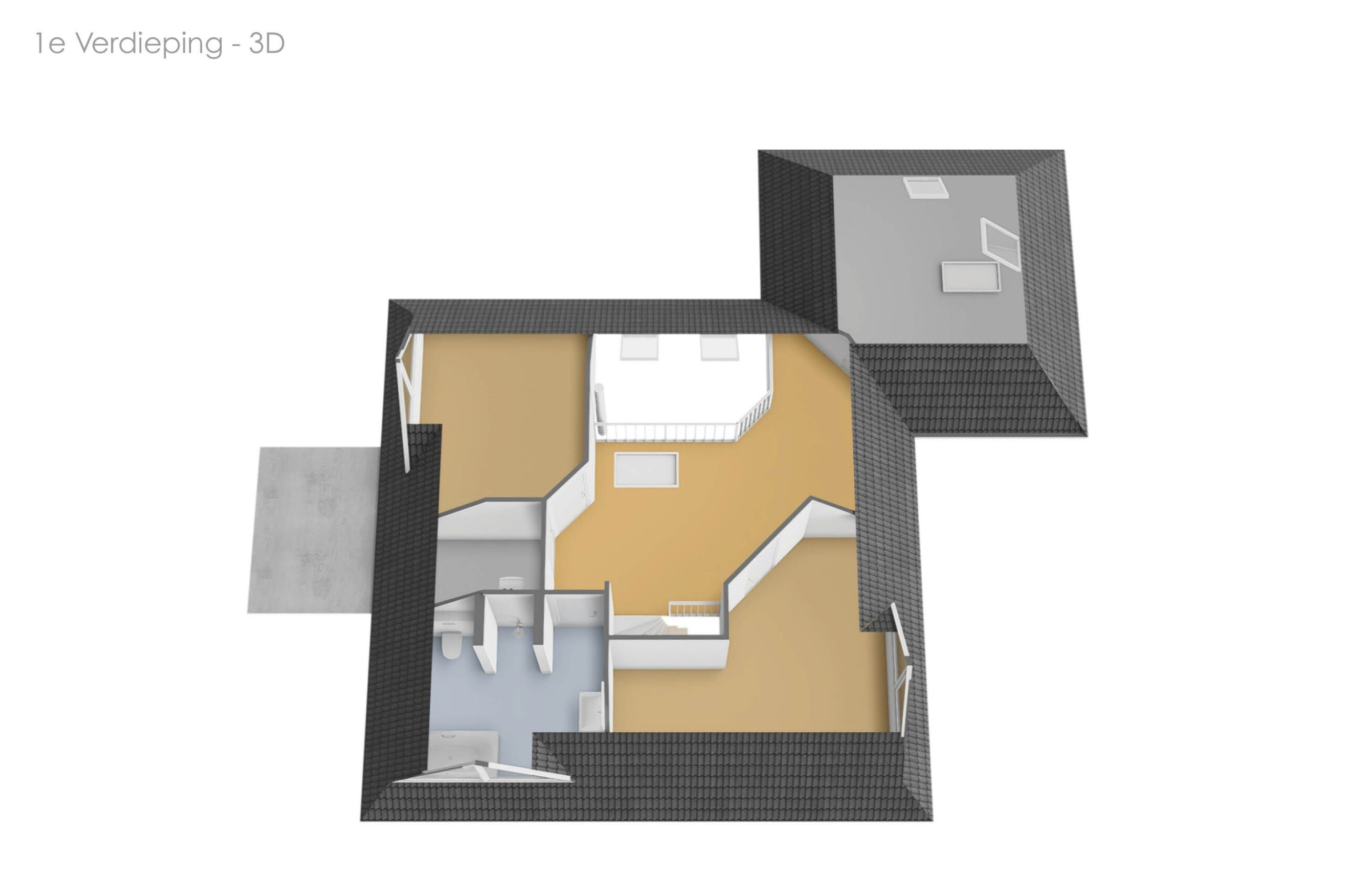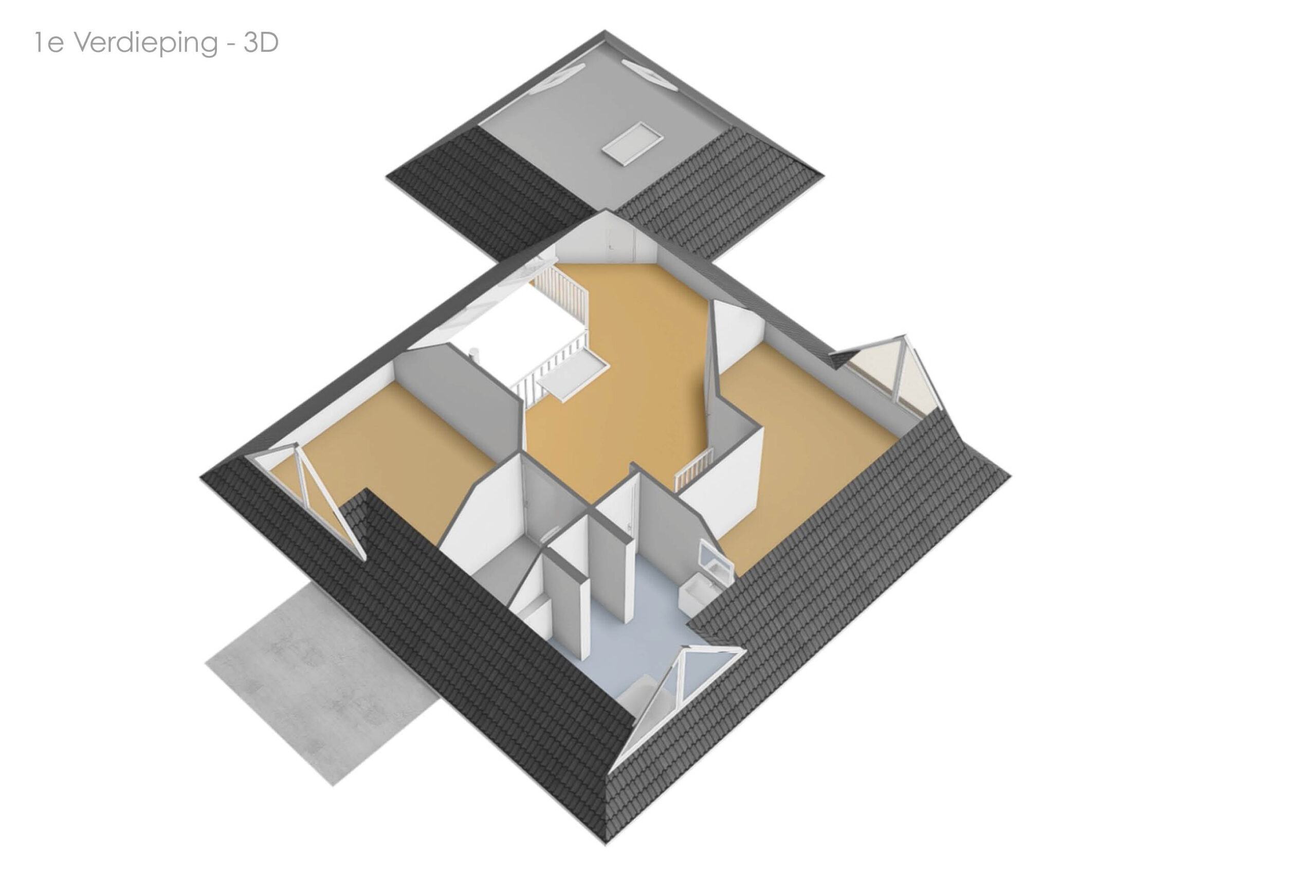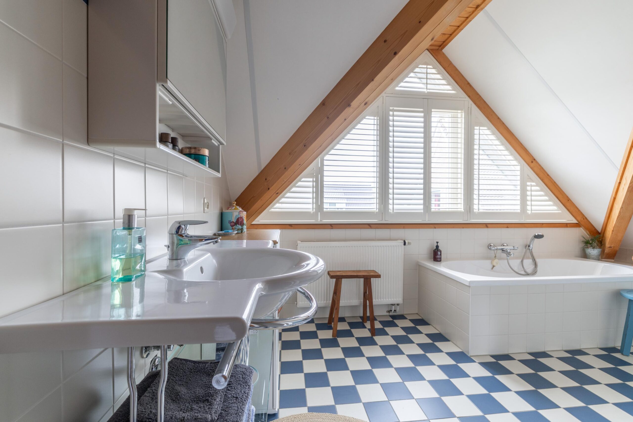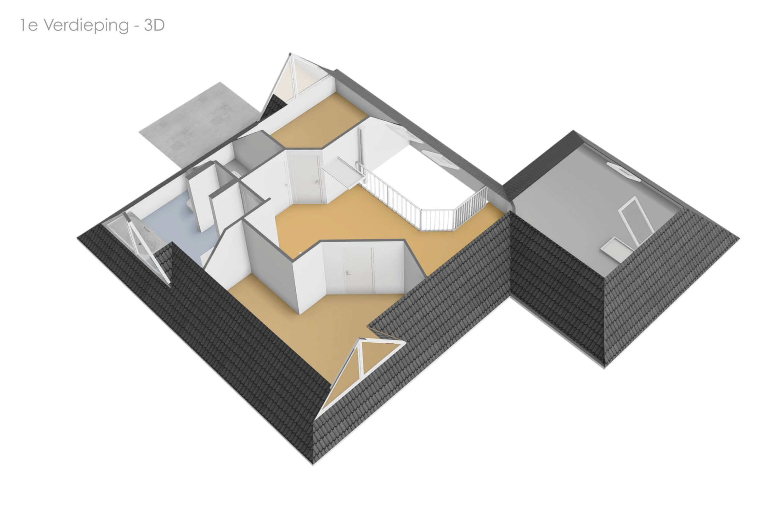 Op de eerste verdieping bevinden zich twee volwaardige slaapkamers en een ruime gezinsbadkamer met wastafel, douche, toilet en ligbad. De royale overloop met vide biedt mogelijkheden voor het realiseren van een werkplek of speelruimte. Daarnaast is er een separate berging met cv-opstelling en toegang tot een tweede bergzolder. Boven de garage bevindt zich een extra zolderruimte met daglichttoetreding, bereikbaar via zowel de overloop als de garage.