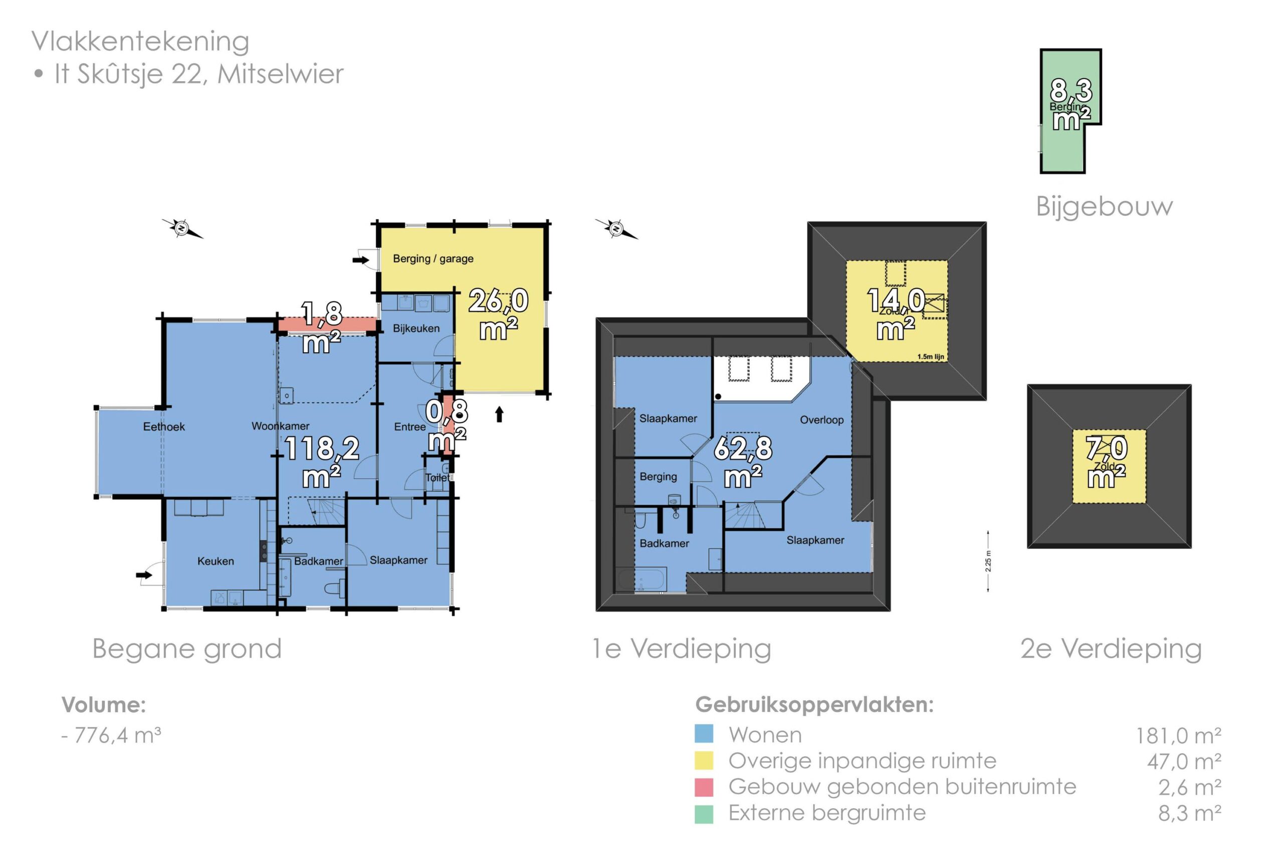 174 m² woonoppervlakte (NEN-gemeten, certificaat aanwezig);
