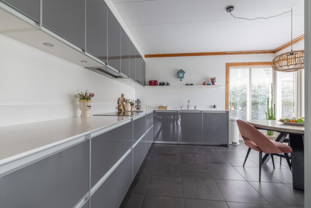 Luxe woonkeuken met hoogwaardige inbouwapparatuur;