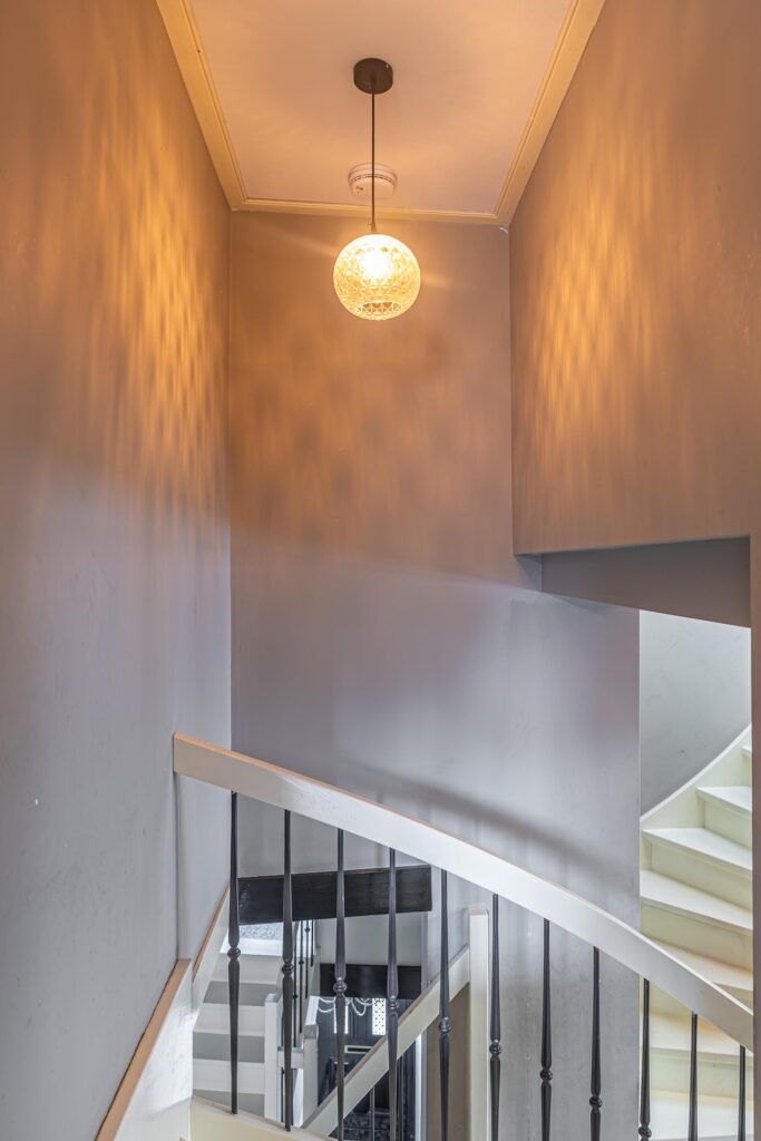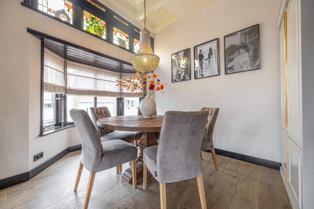 Het pand is recent volledig in stijl gerenoveerd: klassieke glas in loodramen, schuifdeuren, zorgvuldig hersteld detailwerk – moderne kwaliteit gecombineerd met authentieke charme.