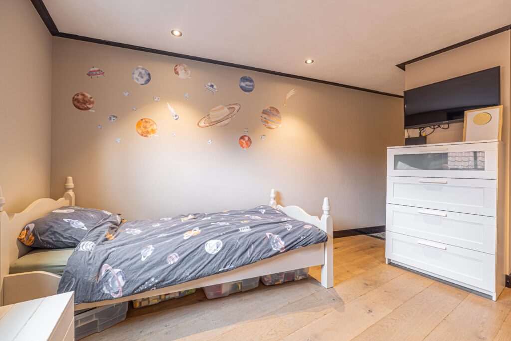 Op de verdieping(en): een prachtig afgewerkte woonruimte met drie slaapkamers; uitstekende combinatie van wonen en werken.