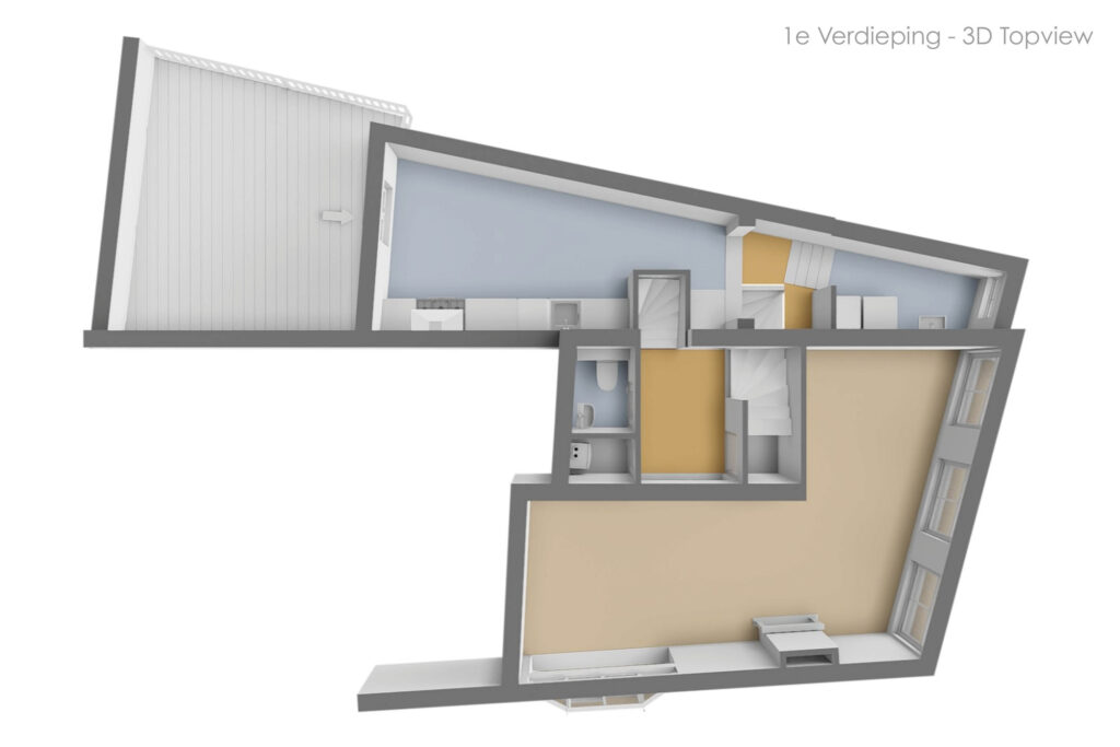 Op de verdieping(en): een prachtig afgewerkte woonruimte met drie slaapkamers; uitstekende combinatie van wonen en werken.
