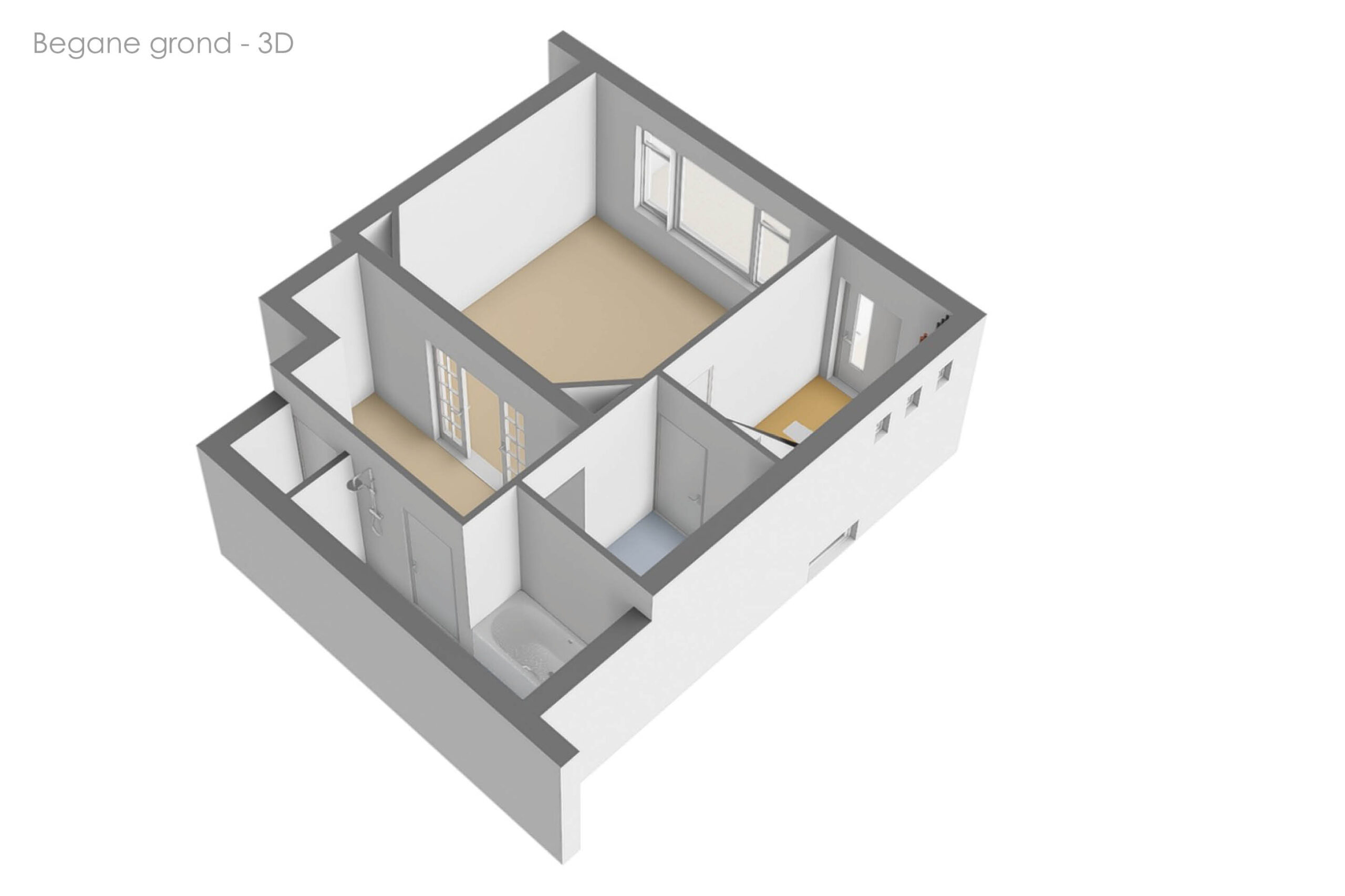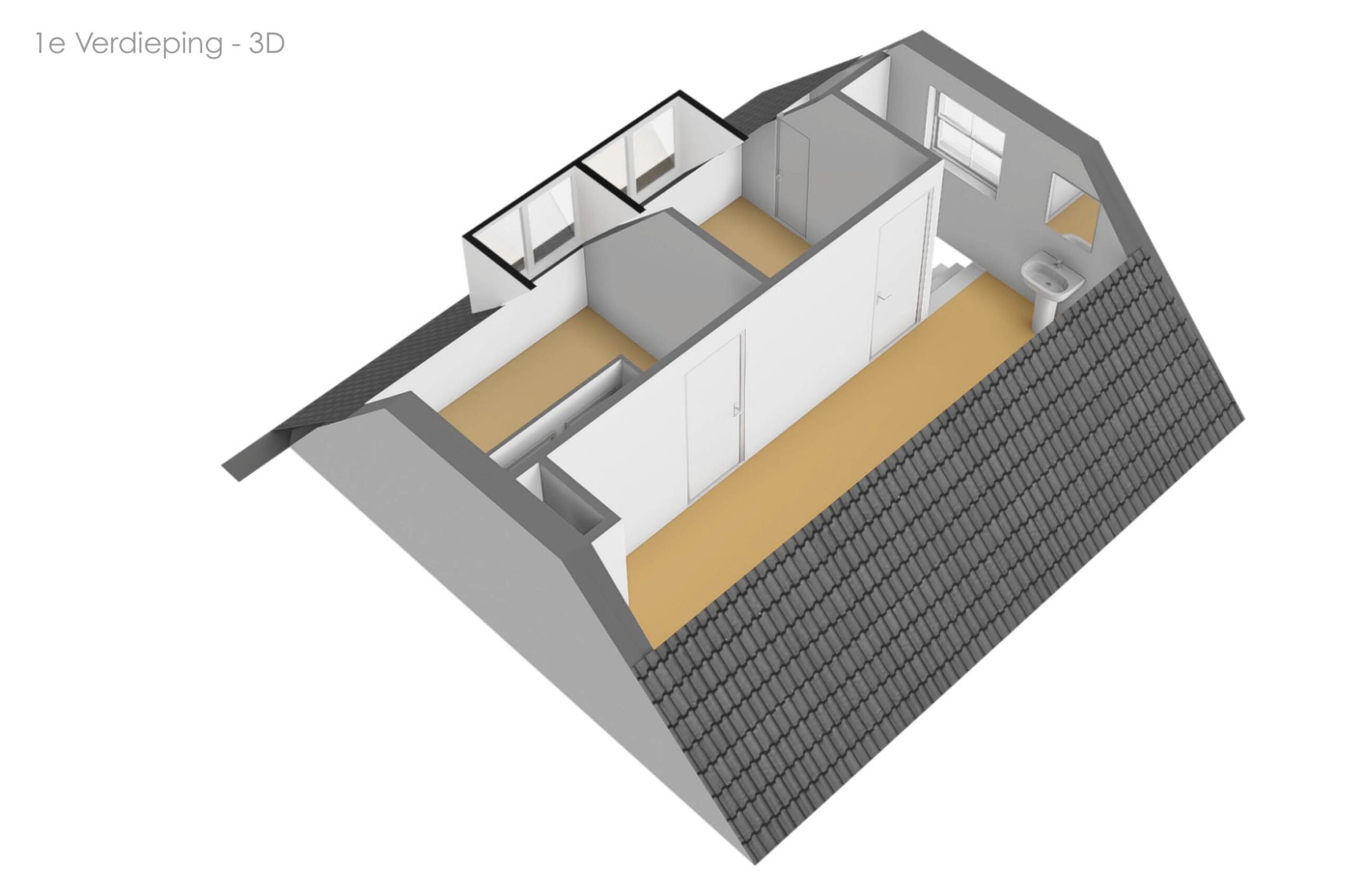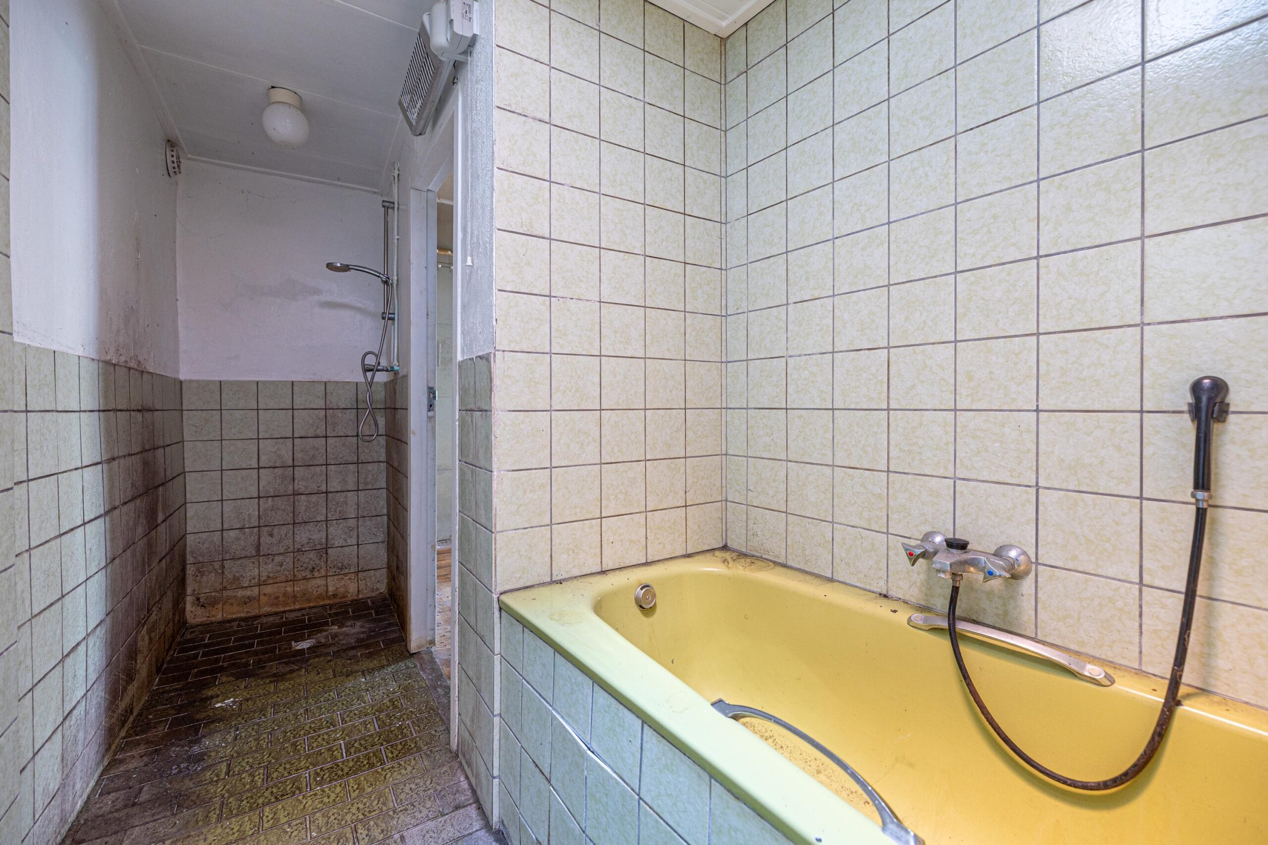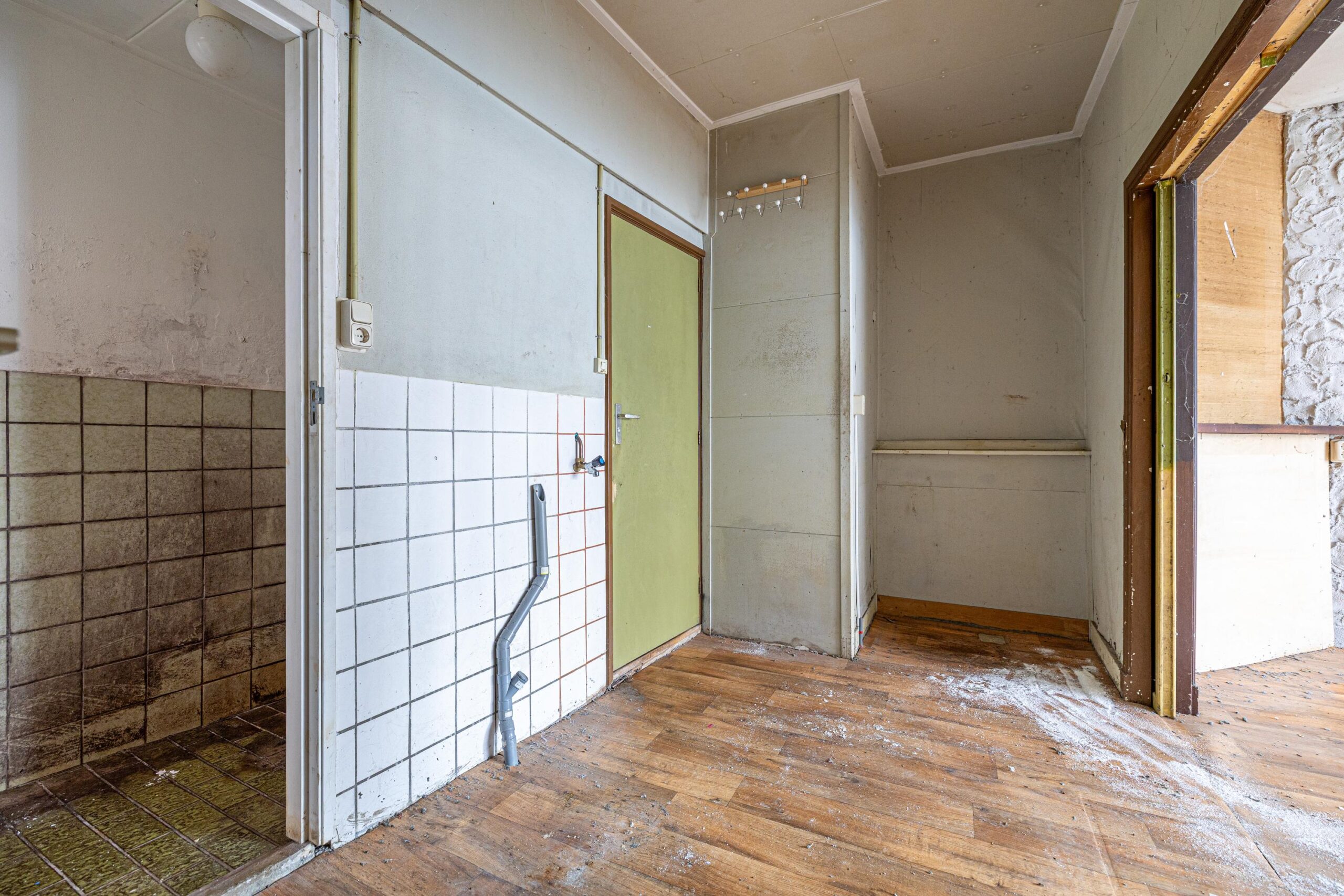 Je komt binnen in de hal met trapopgang naar de verdieping en toegang tot de kelder. Vanuit de hal loop je door naar de woonkamer en de keuken. Een deel van de woonkamer staat in halfopen verbinding met de keuken, schuifdeuren zorgen ervoor dat de ruimten kunnen worden gescheiden. Via de woonkamer bereik je tevens het toilet en de badkamer, die is voorzien van een ligbad en douche. De eerste verdieping biedt een overloop met toegang tot twee slaapkamers.