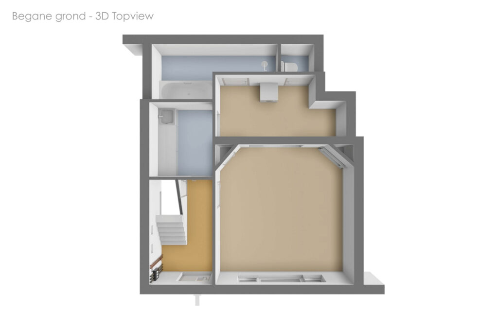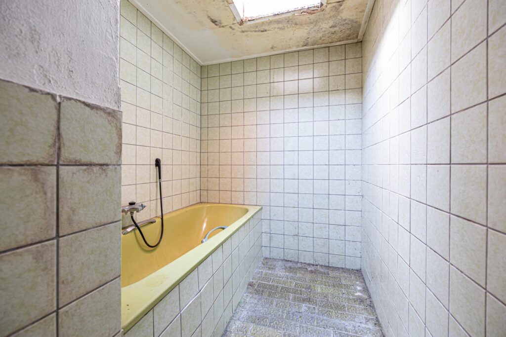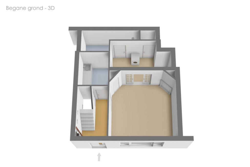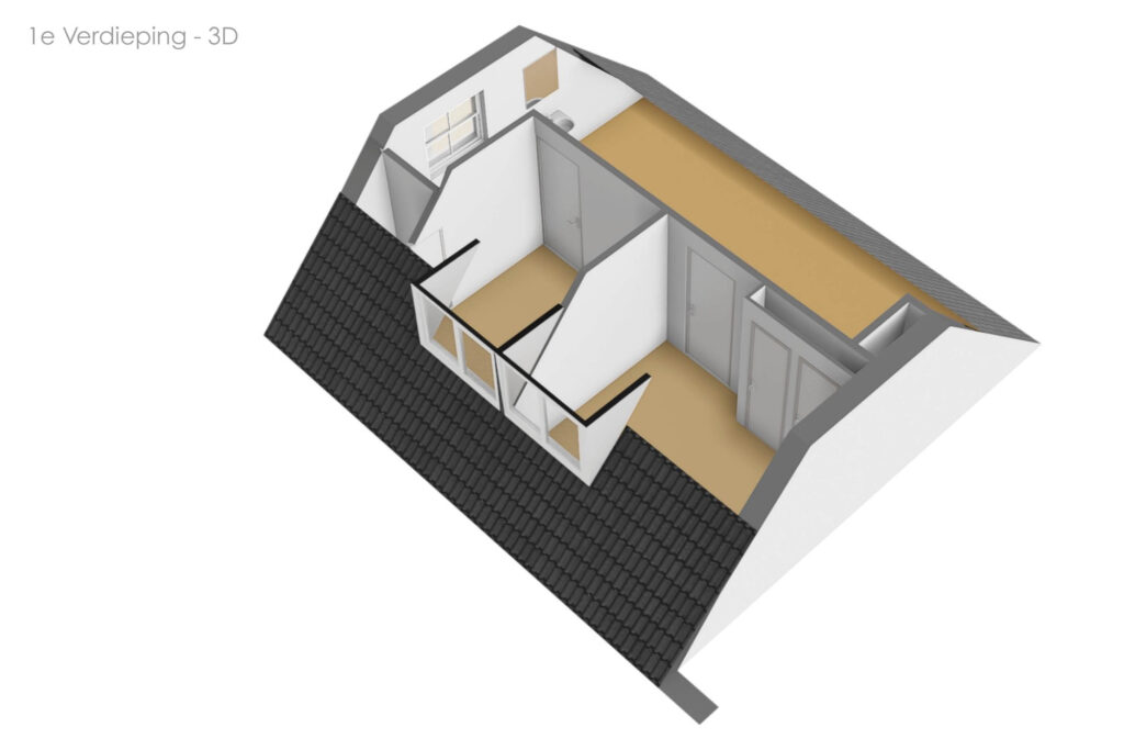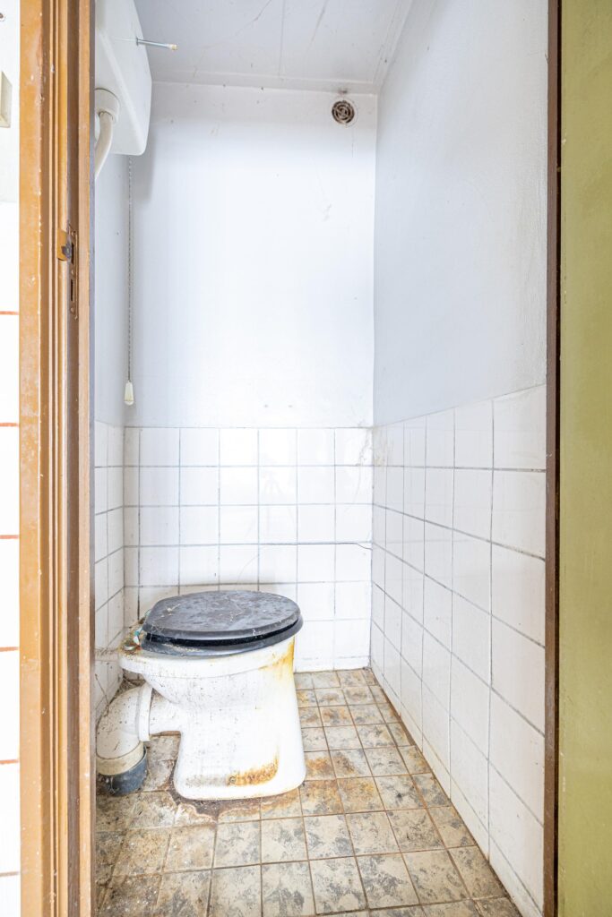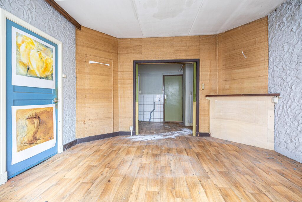 Je komt binnen in de hal met trapopgang naar de verdieping en toegang tot de kelder. Vanuit de hal loop je door naar de woonkamer en de keuken. Een deel van de woonkamer staat in halfopen verbinding met de keuken, schuifdeuren zorgen ervoor dat de ruimten kunnen worden gescheiden. Via de woonkamer bereik je tevens het toilet en de badkamer, die is voorzien van een ligbad en douche. De eerste verdieping biedt een overloop met toegang tot twee slaapkamers.
