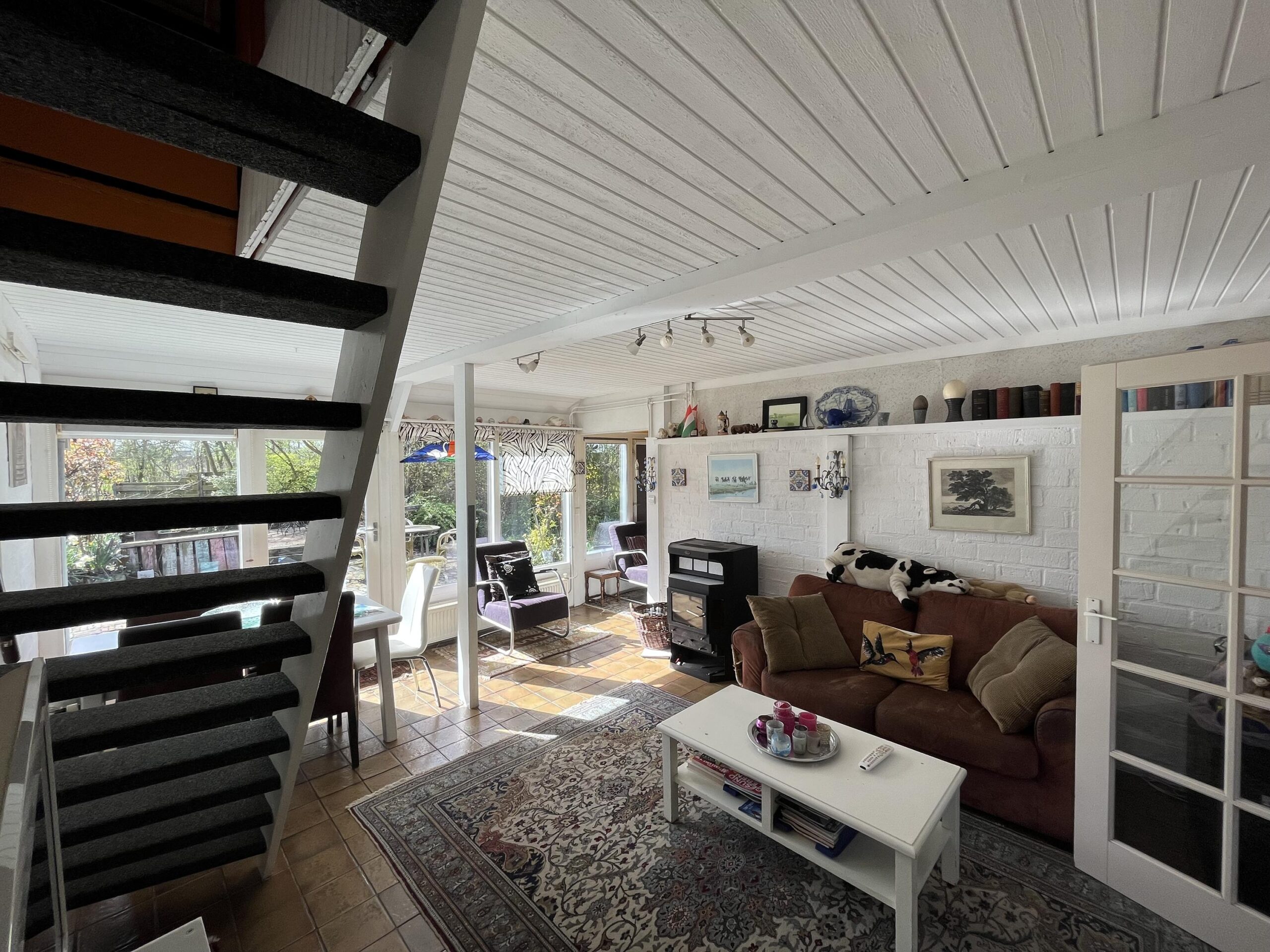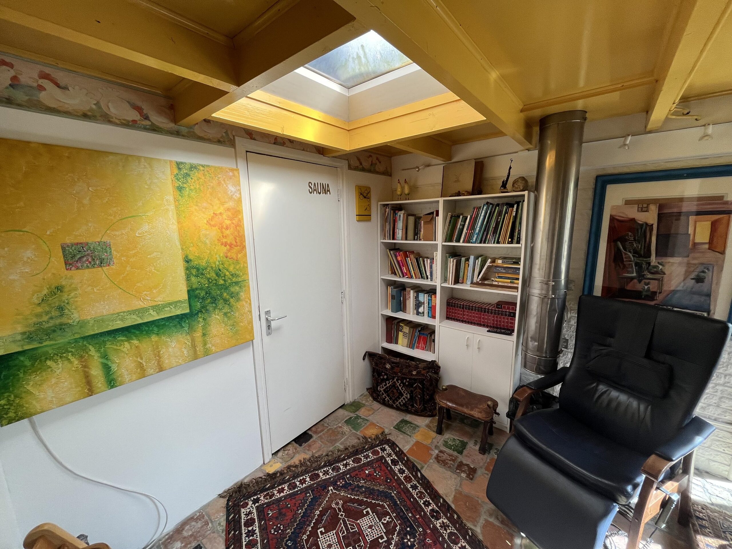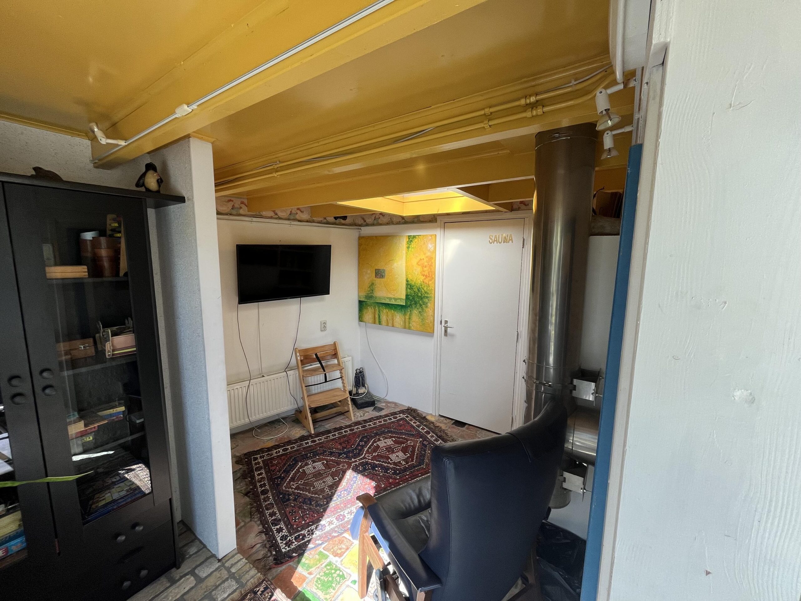 The house has a living area of ??approximately 91 m² and has a beautiful backyard facing south with several terraces where you can enjoy the peace and nature! The house has a cozy living room with wood stove. The closed kitchen is neat, well maintained and has various built-in appliances. Through the living room you enter the extension. Here a separate sitting area has been created and a room has also been created with a sauna. There is also a bedroom on the ground floor and a bathroom with toilet, shower and sink. On the first floor there are 2 bedrooms and a landing with extra closet space.
