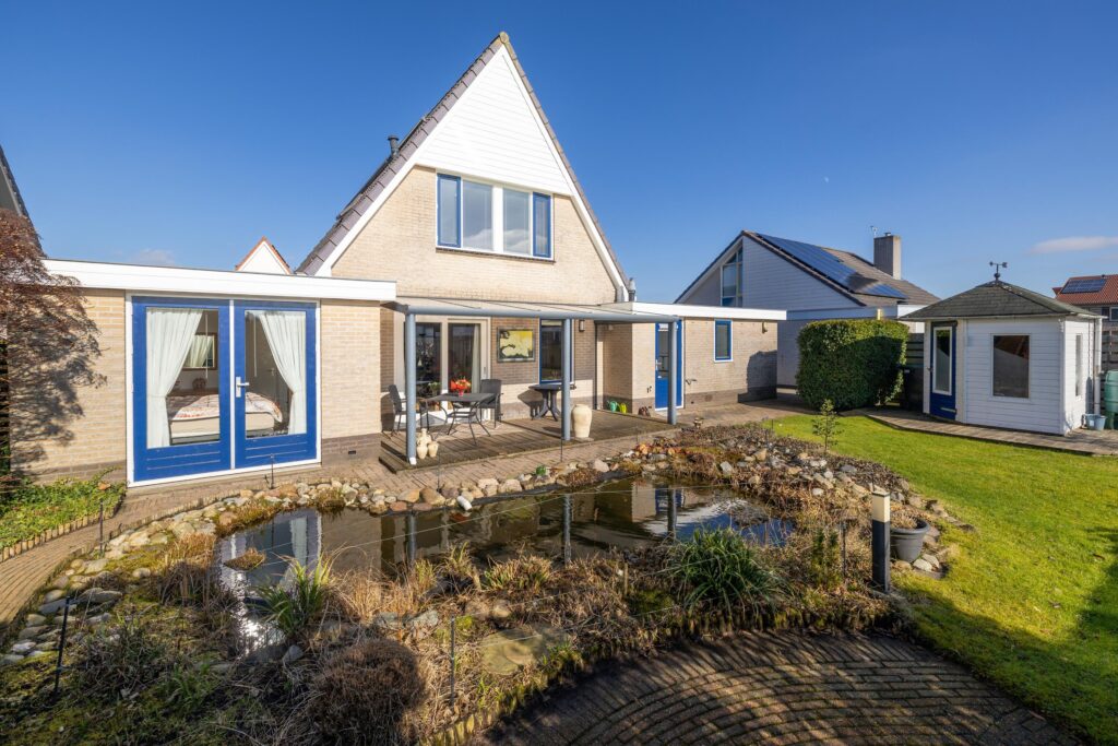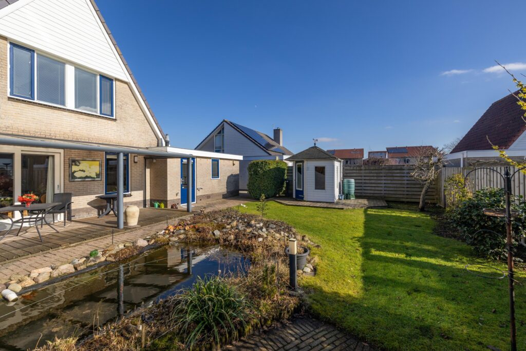 - Tuin op het zuiden met vijver, overkapping en tuinhuis