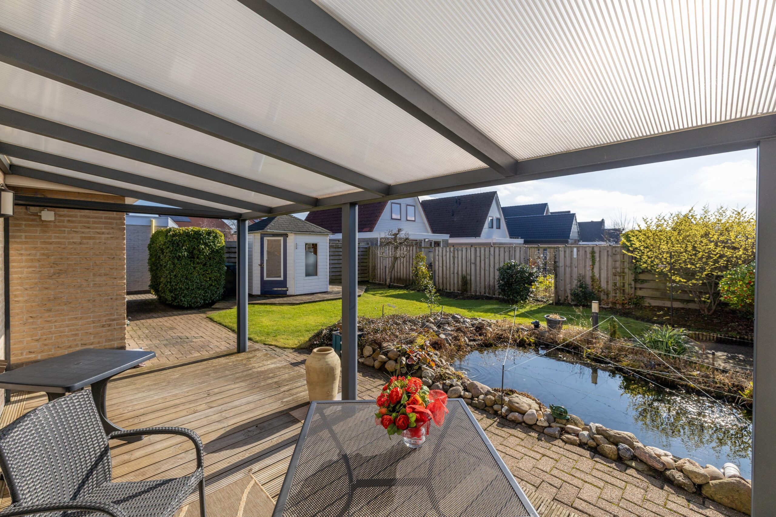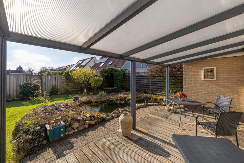 Hier geniet u volop van privacy, een vijver en een aluminium overkapping met elektrisch screen. De woning beschikt over een eigen achterom via een eigen pad.