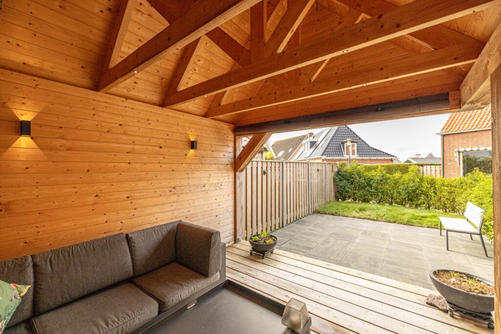 De tuin is keurig aangelegd en ligt op het zonnige zuidwesten. Er is een fraai terras en een ruime schuur met isolatie en elektra. Daarnaast beschikt de schuur over een gezellige veranda waar u heerlijk kunt genieten van het buitenleven.
