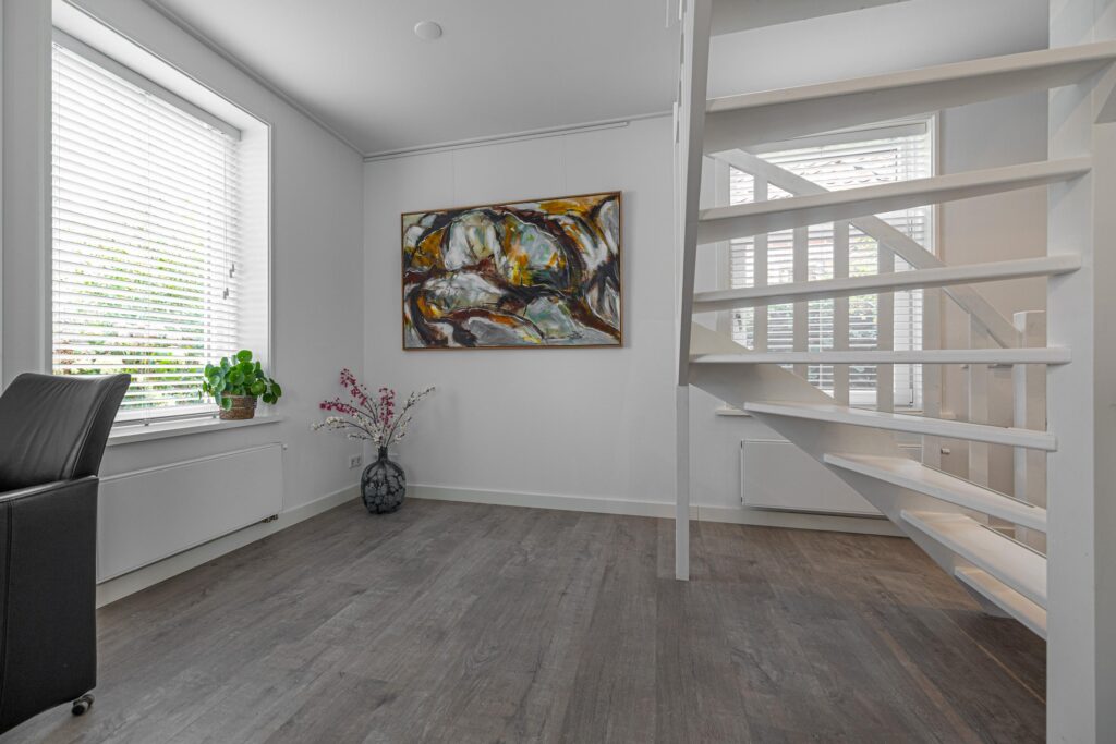 Bij binnenkomst treft u de hal met ruimte voor een garderobe. Vanuit de hal zijn het vernieuwde toilet en de open keuken bereikbaar. De moderne keuken is voorzien van diverse inbouwapparatuur. De open keuken loopt naadloos over in de lichte en moderne woonkamer. Op de eerste verdieping bevinden zich drie keurige slaapkamers en een recent vernieuwde badkamer met douche, wastafel en aansluitingen voor wasmachine en droger. De zolder is bereikbaar via een vlizotrap en biedt extra bergruimte.