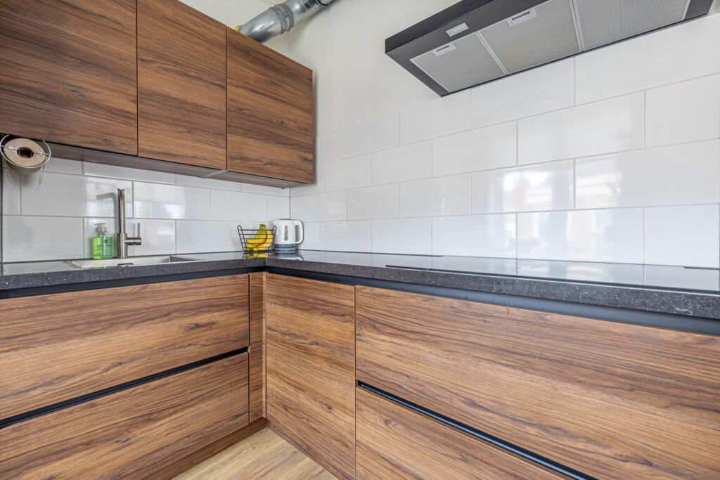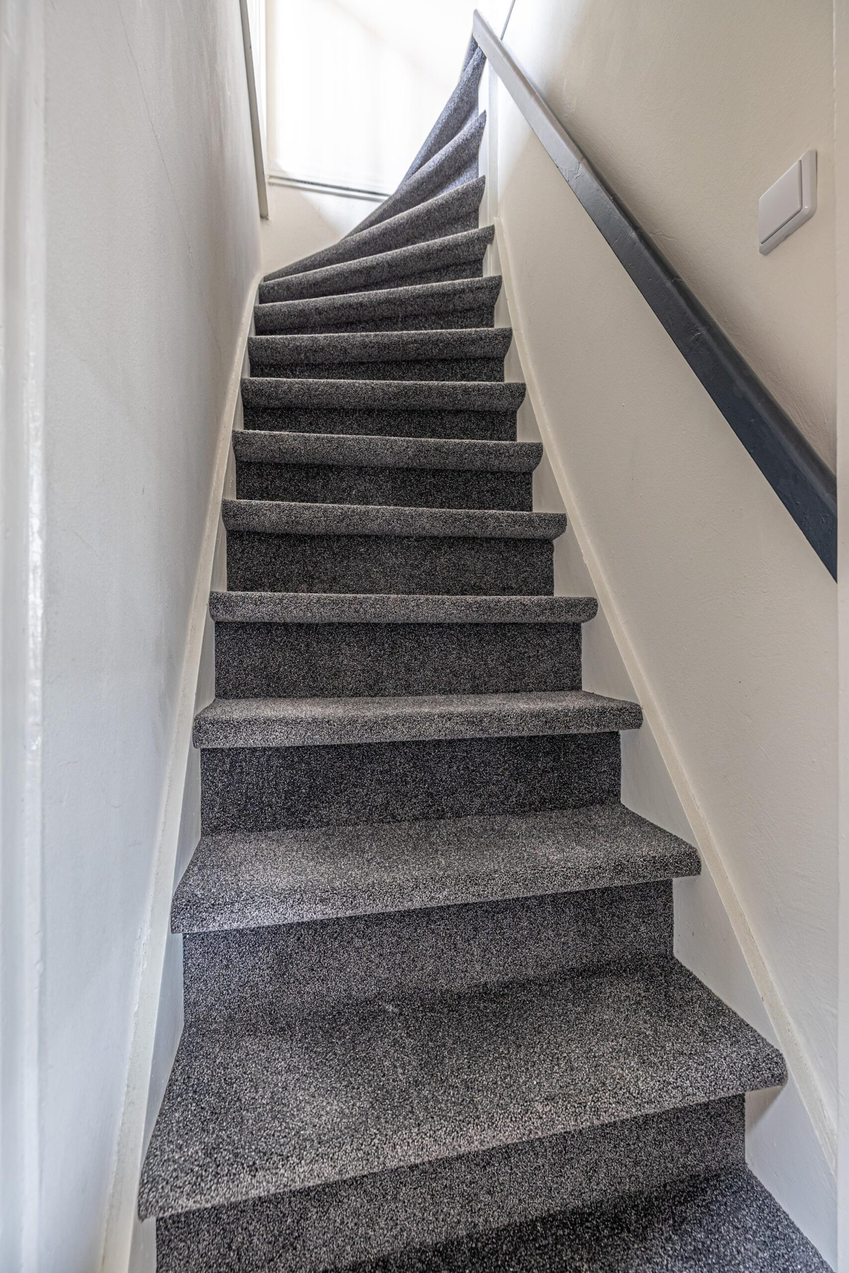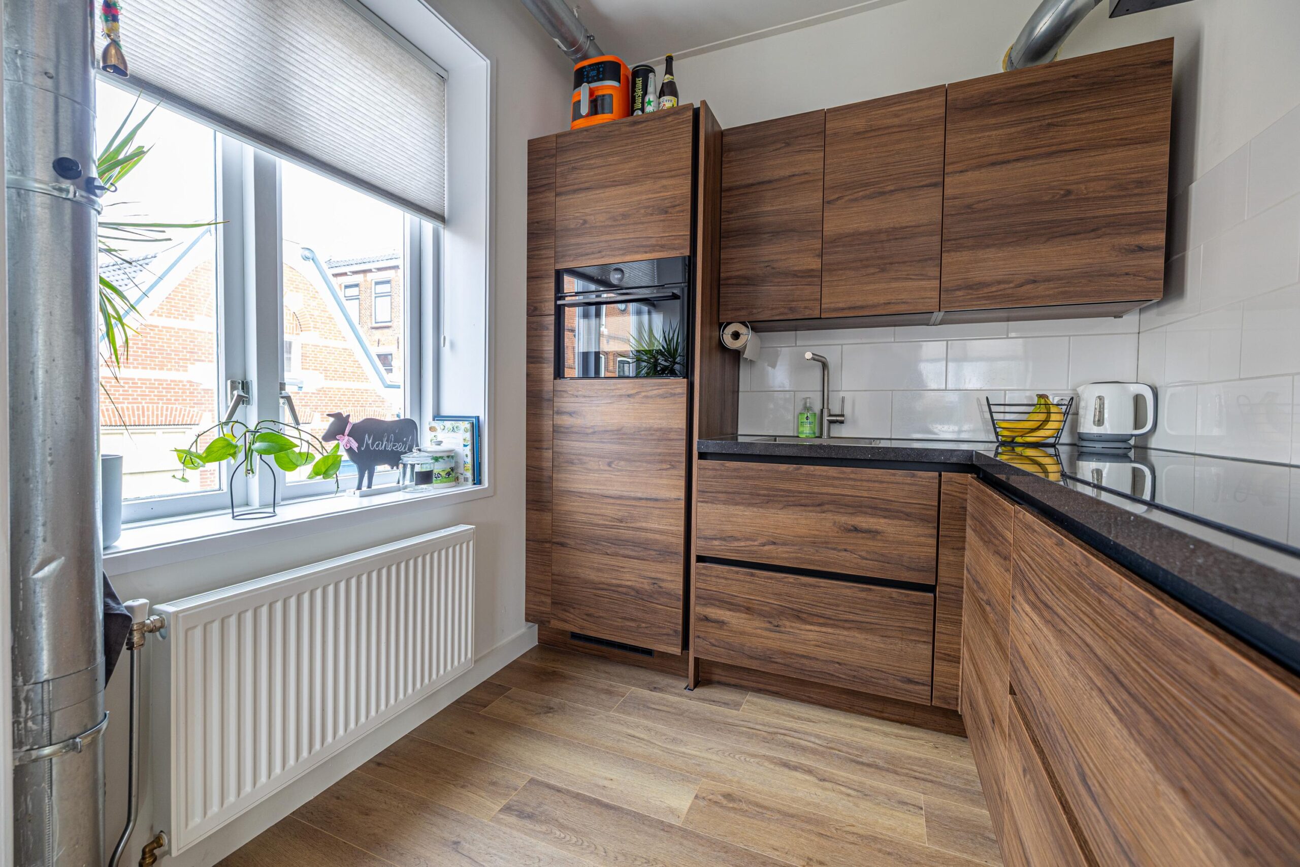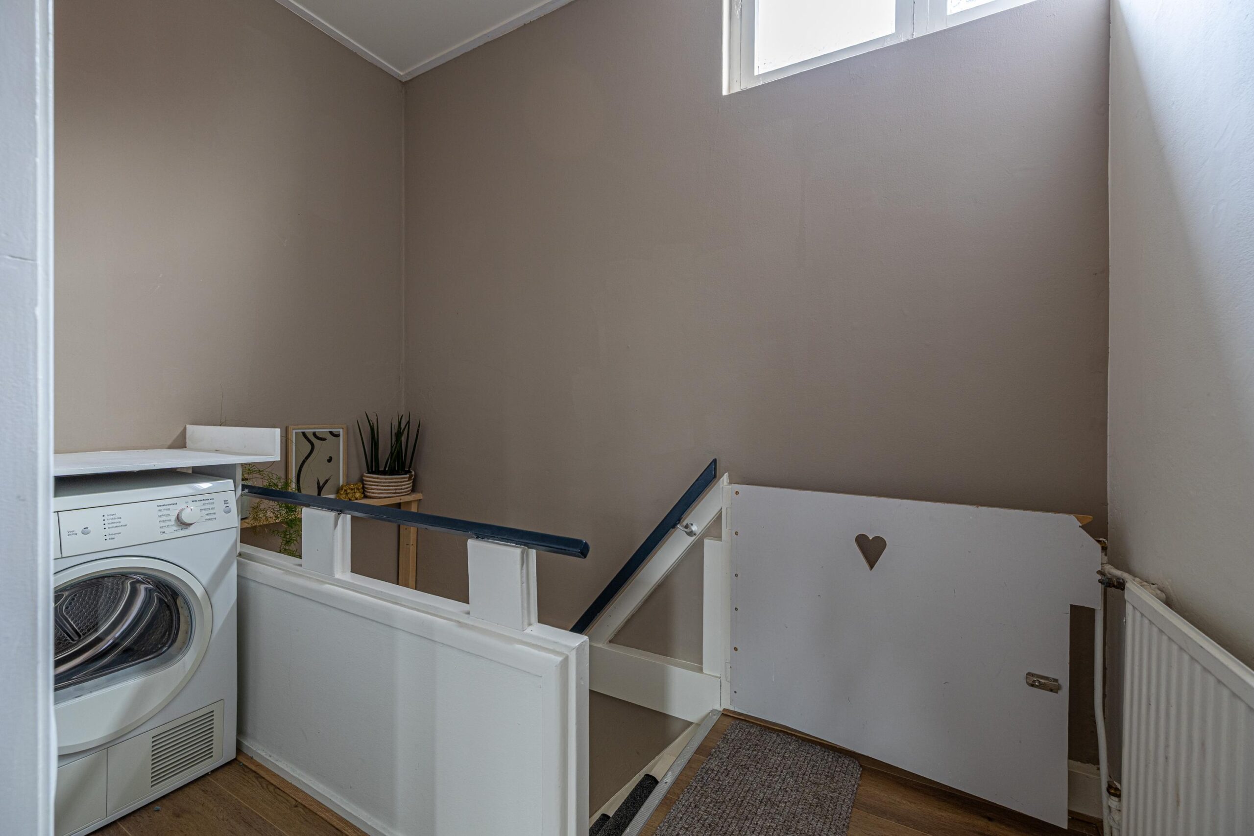 Via de eigen entree op de begane grond kom je binnen in de hal met trapopgang naar de eerste verdieping. De overloop biedt ruimte voor een kast met witgoedaansluiting en geeft toegang tot de lichte woonkamer, de badkamer en de trap naar de tweede verdieping. Door de grote raampartijen in de woonkamer valt er veel natuurlijk licht naar binnen. Aansluitend vind je de halfopen keuken, die is voorzien van diverse inbouwapparatuur. De badkamer is voorzien van een douche, toilet, wastafel en een extra witgoedaansluiting.