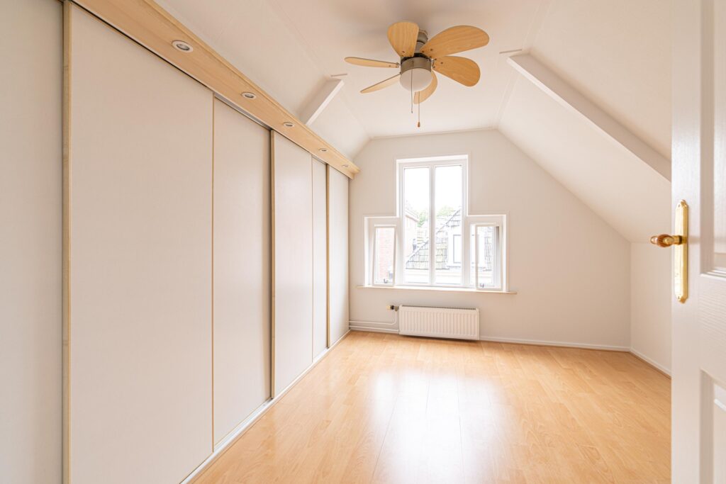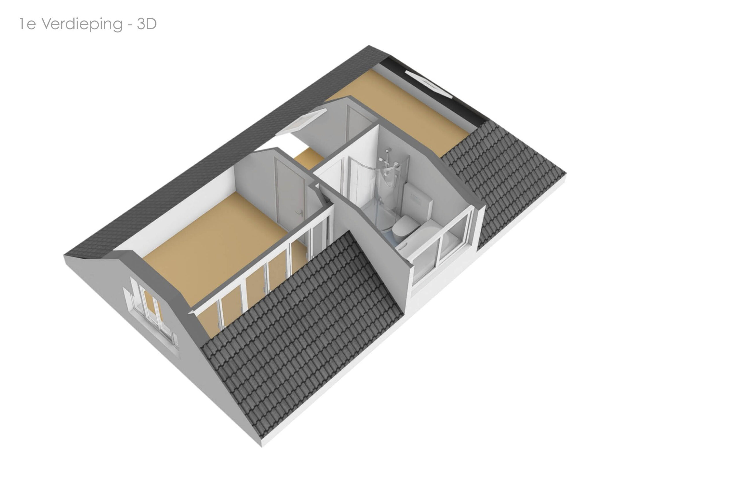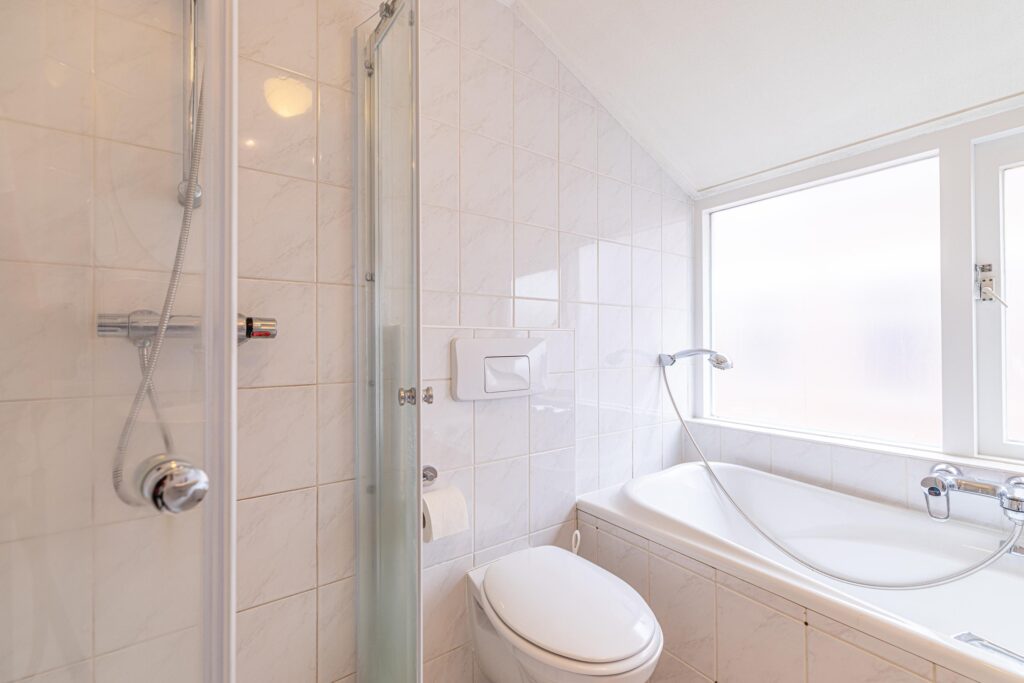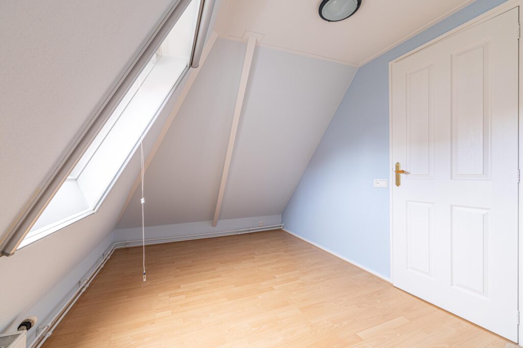 Op de verdieping bevinden zich een overloop, twee slaapkamers en de badkamer. De badkamer is uitgerust met een ligbad, douche, wastafel en toilet. De achtertuin is bereikbaar via de openslaande deuren en via de bijkeuken/achterom. Achterin de tuin staat een vrijstaande houten berging. Deze berging is voorzien van een eigen verwarming en een keukenblok.