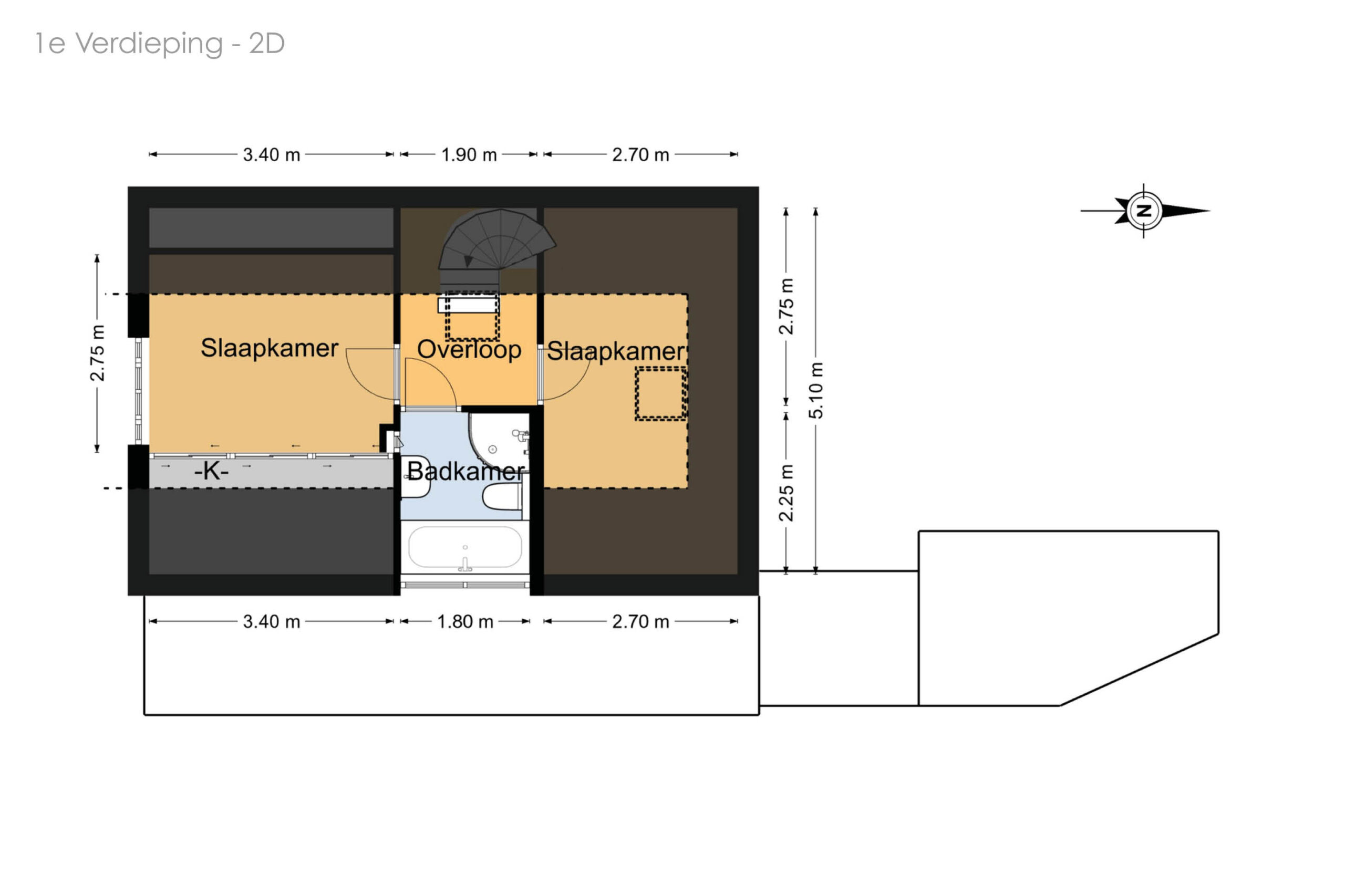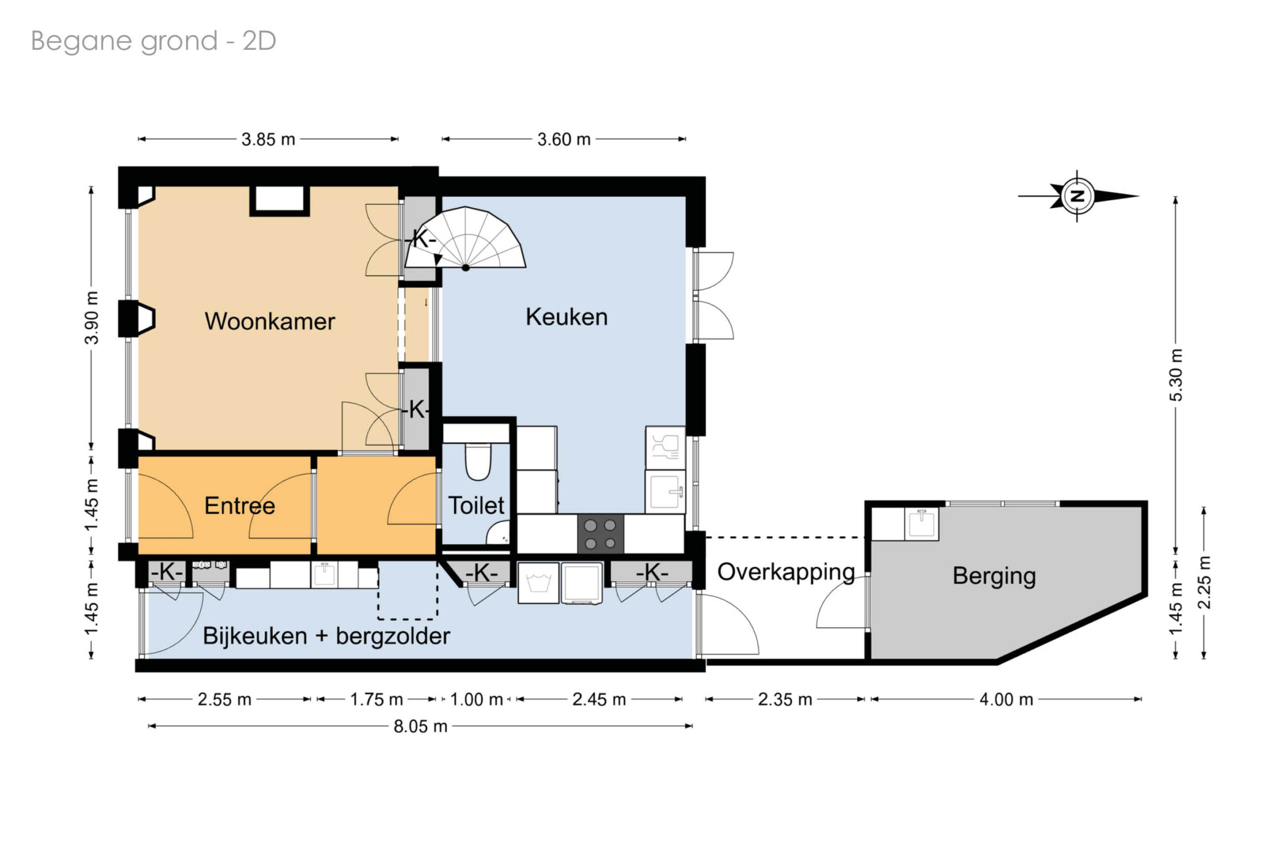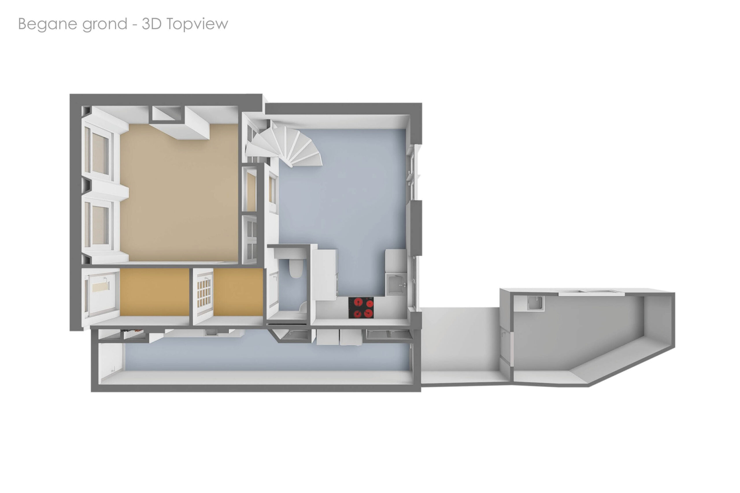 - Bijkeuken bevindt zich in de uitbouw aan de woning