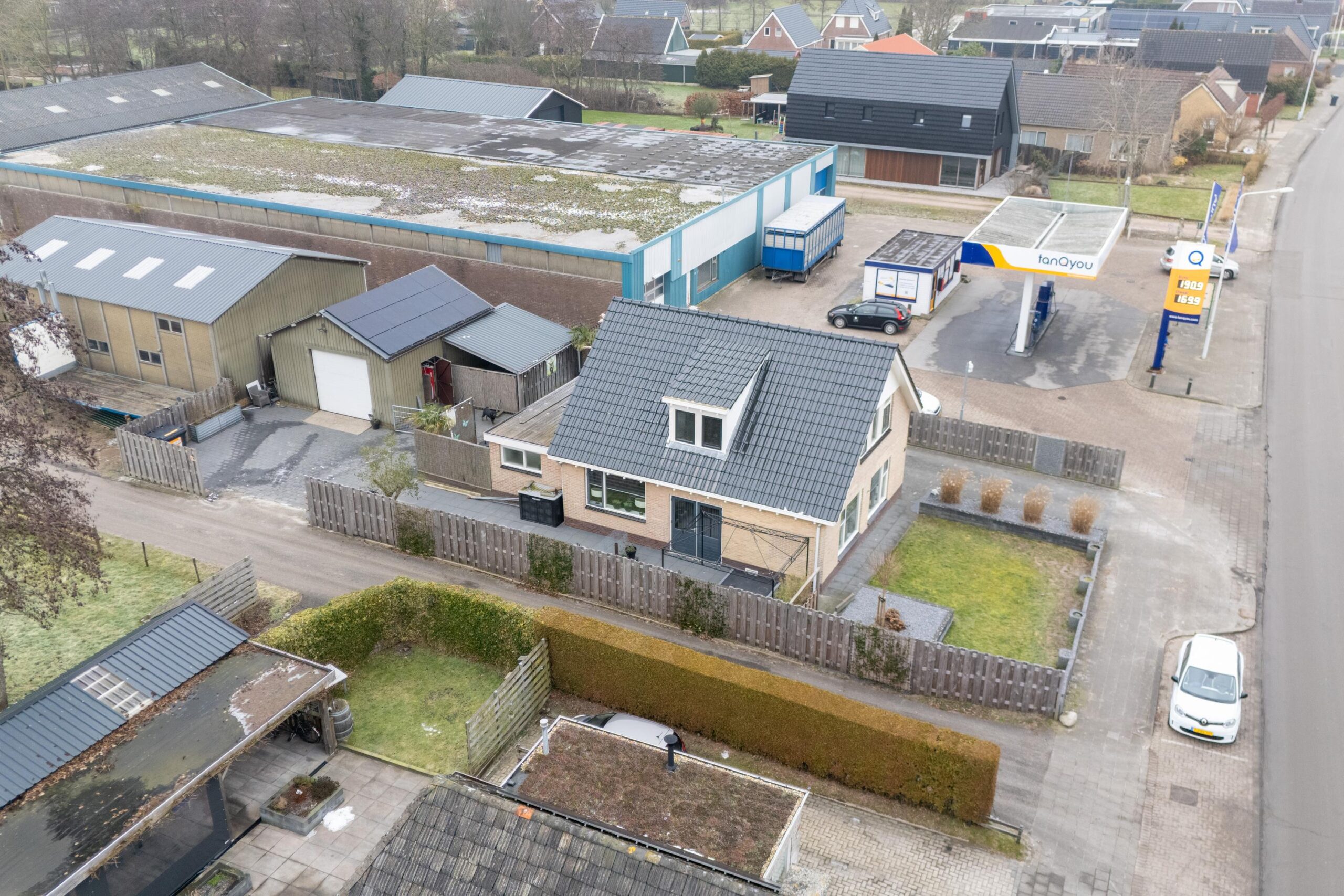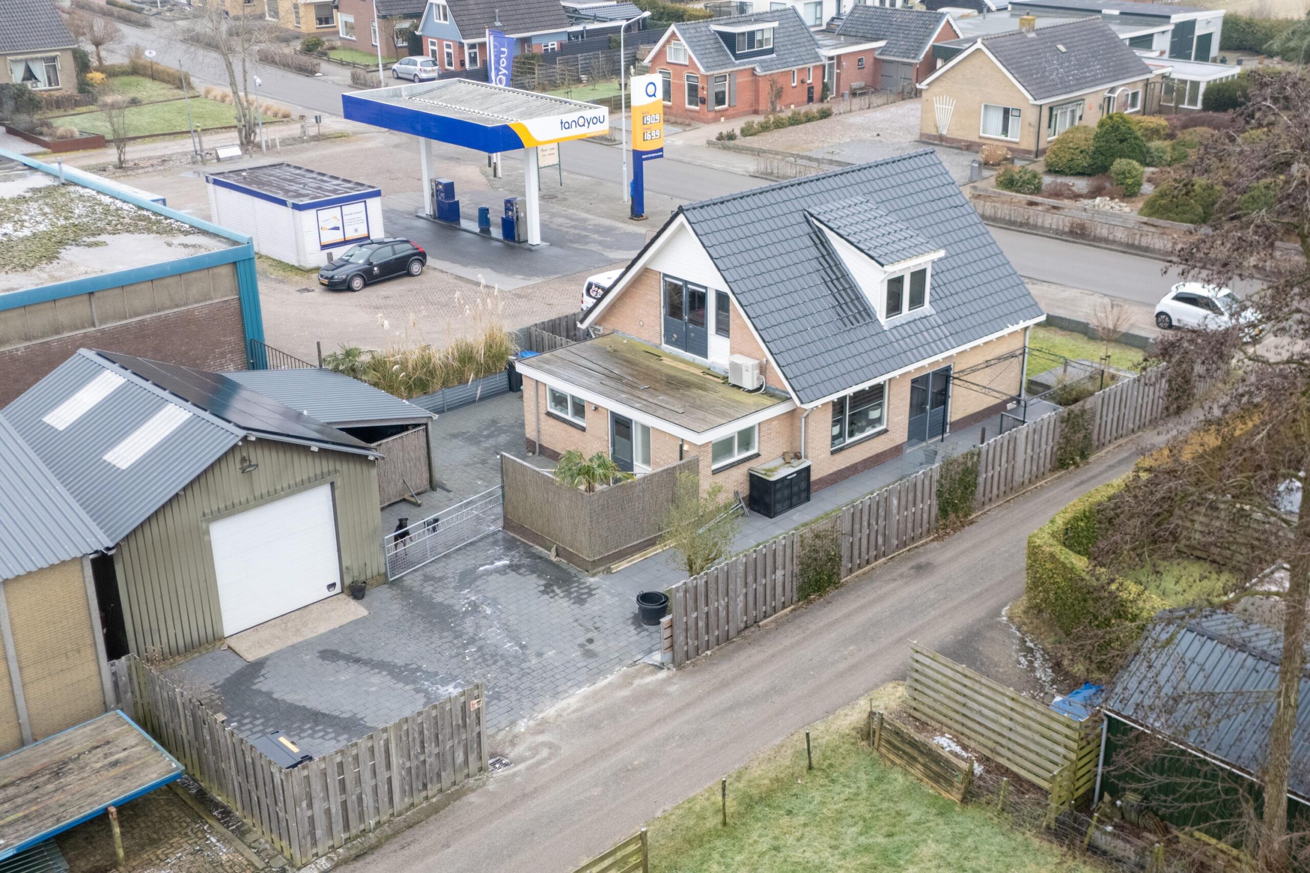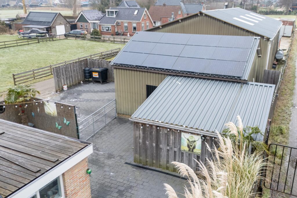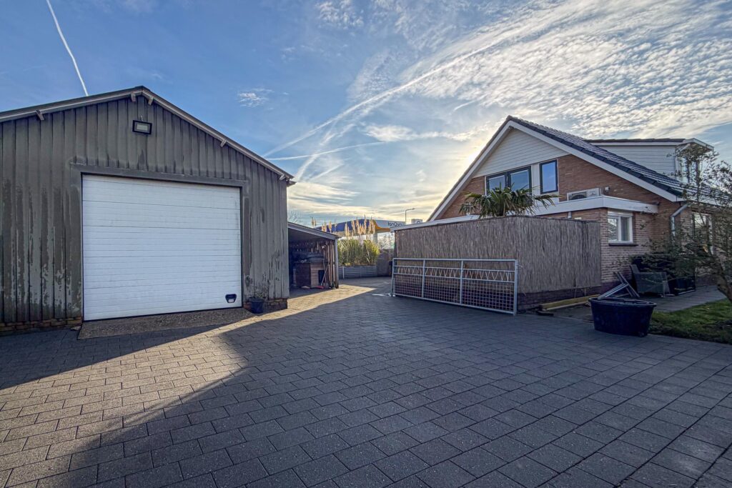 De garage is voorzien van een betonvloer, krachtstroom, vliering, handmatige roldeur en omvormer voor de zonnepanelen. Geschikt voor opslag, hobby of werkruimte.