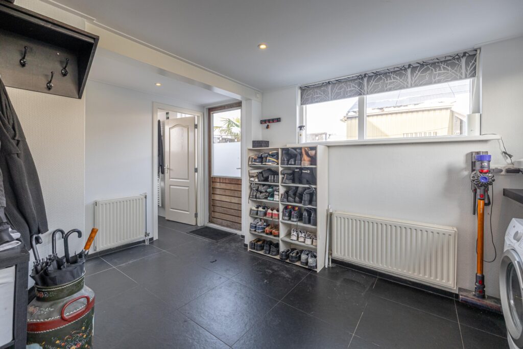 Via de entree/hal betreed je de woning. De meterkast en de elektrische installatie zijn vernieuwd. In de hal bevindt zich tevens een moderne toiletruimte met urinoir, toilet, dubbele wastafel en designradiator. De ruime en lichte woonkamer beschikt over dubbele tuindeuren en biedt direct toegang tot de tuin. De keuken (2025) is modern uitgevoerd en uitgerust met een inductiekookplaat, combi-oven, vaatwasser, afzuigkap, koelkast en vriezer. Aangrenzend bevindt zich de ruime bijkeuken met witgoedaansluitingen en de cv-ketel. Daarnaast is er een droge kelder, ideaal voor extra bergruimte. De badkamer is voorzien van een douche, wastafel en designradiator. Op de begane grond is een airco unit aanwezig, deze verwarmt en koelt.
