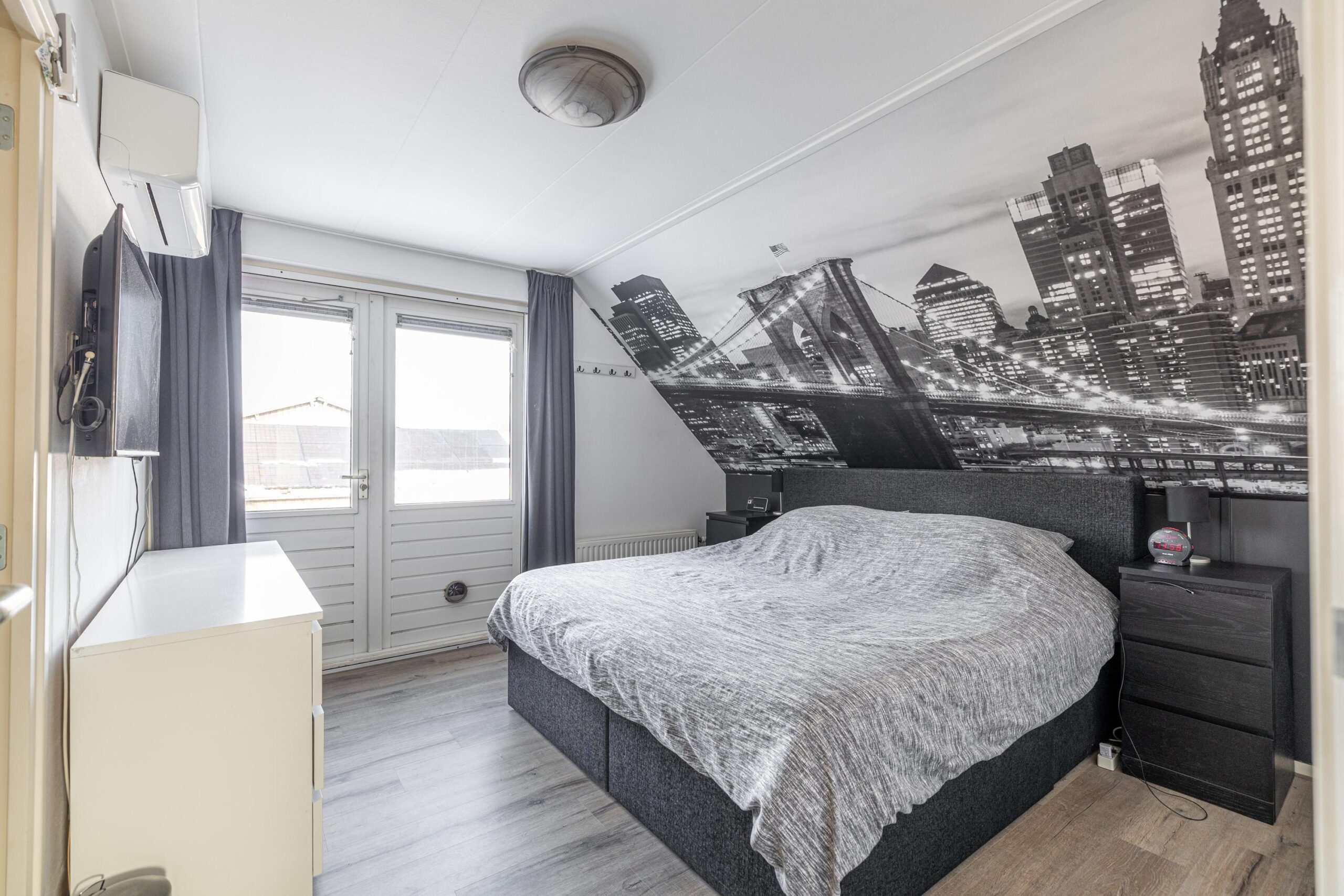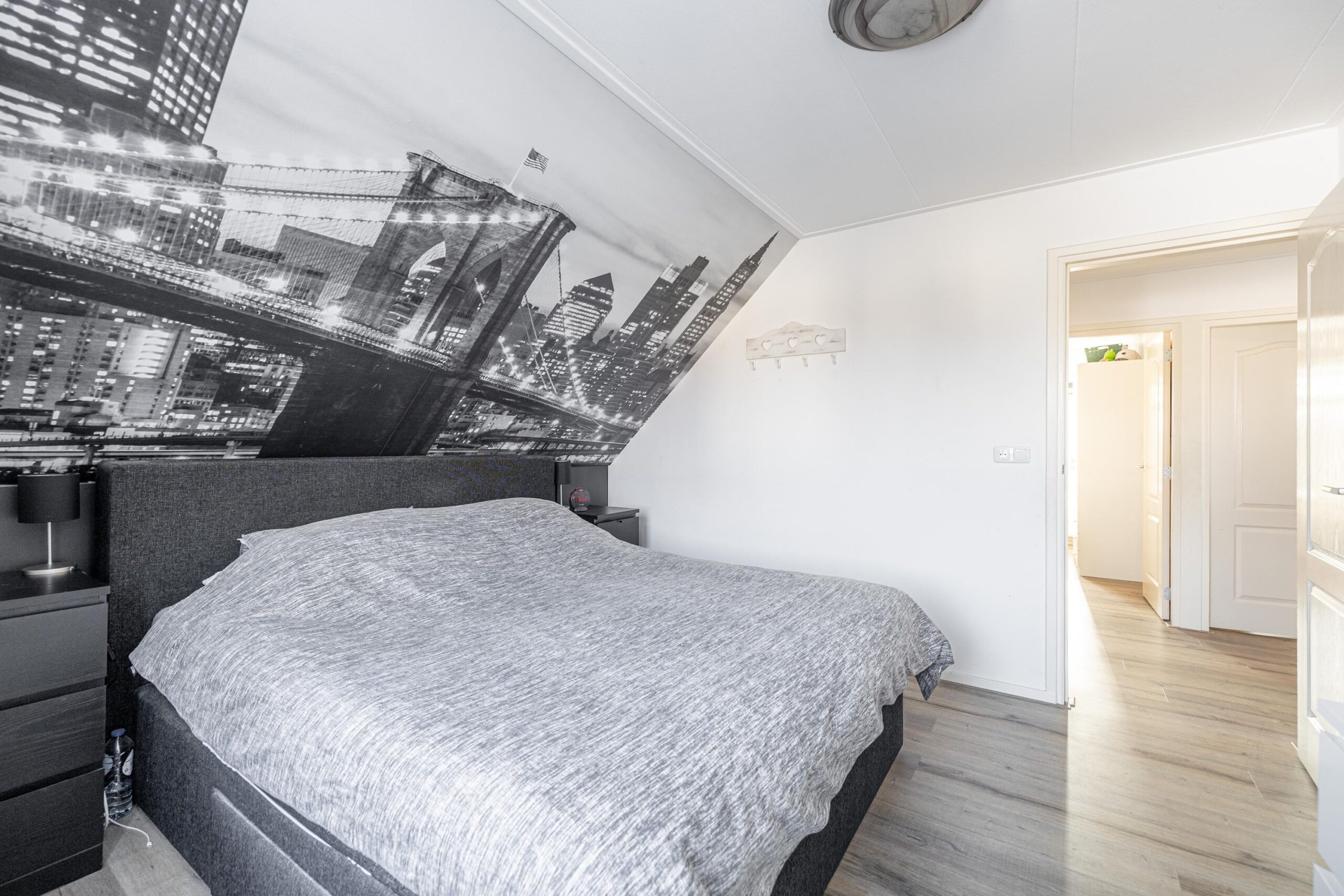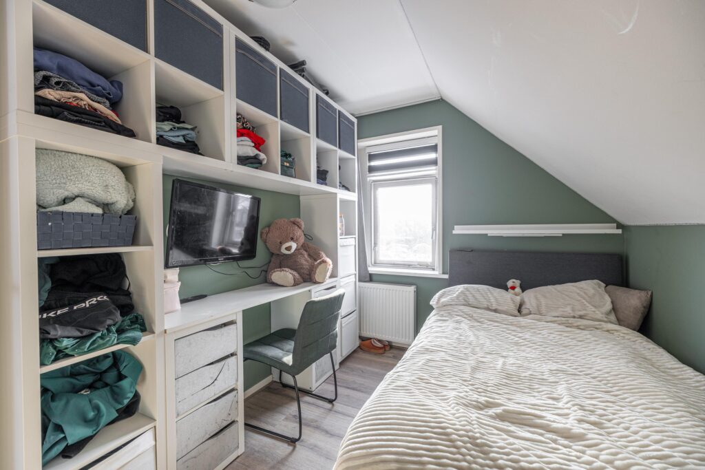 Overloop met toegang tot vier slaapkamers. De vierde slaapkamer is momenteel ingericht als inloopkast, deze kast is gemakkelijk weer te demonteren zodat deze kamer ook kan dienen als slaapkamer. Op deze verdieping zijn twee airco-units aanwezig, wat zorgt voor een comfortabel binnenklimaat in alle seizoenen.