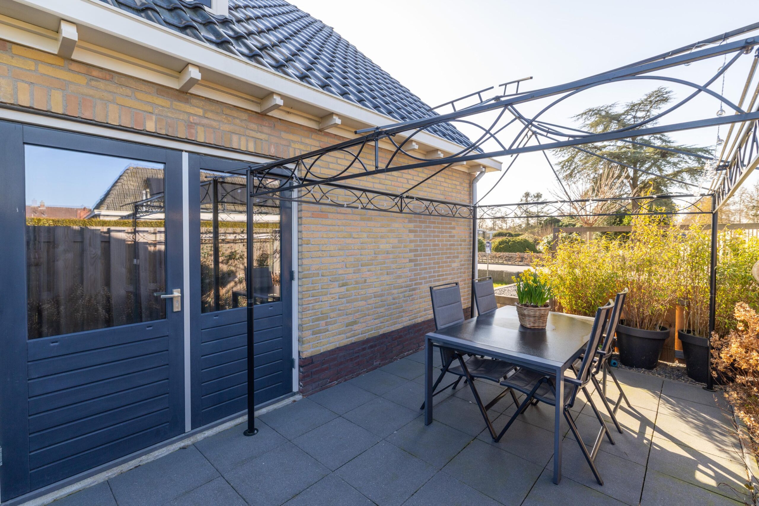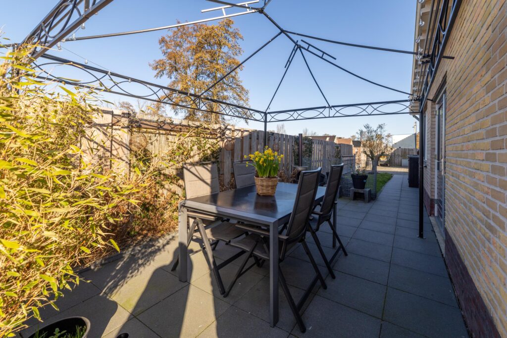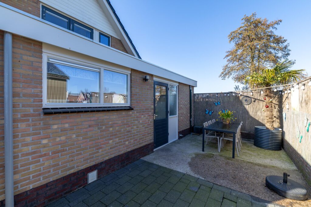 De tuin rondom de woning biedt volop privacy en ruimte om meerdere zitplekken te creëren.