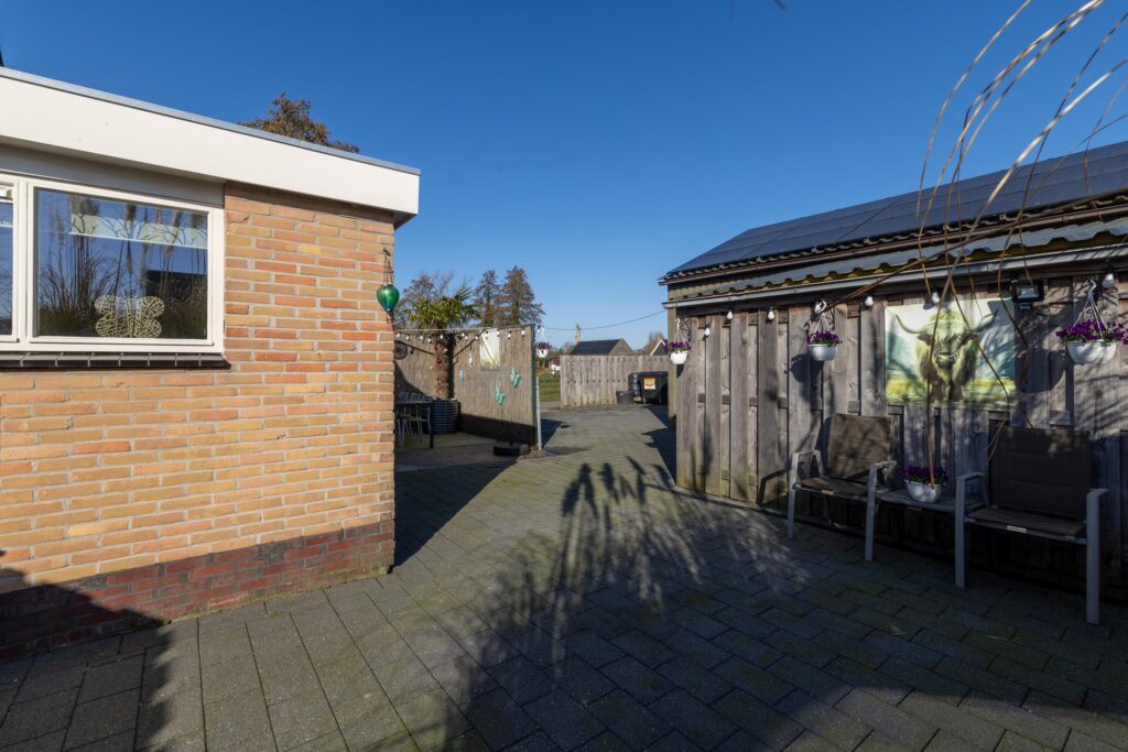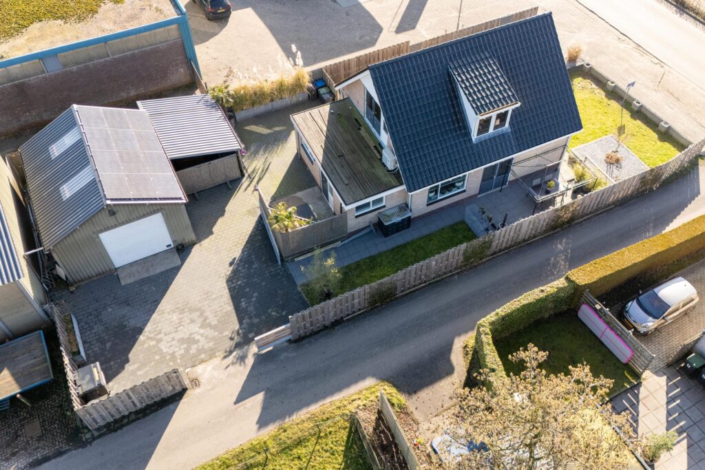 De garage is voorzien van een betonvloer, krachtstroom, vliering, handmatige roldeur en omvormer voor de zonnepanelen. Geschikt voor opslag, hobby of werkruimte. Naast de garage is een carport.