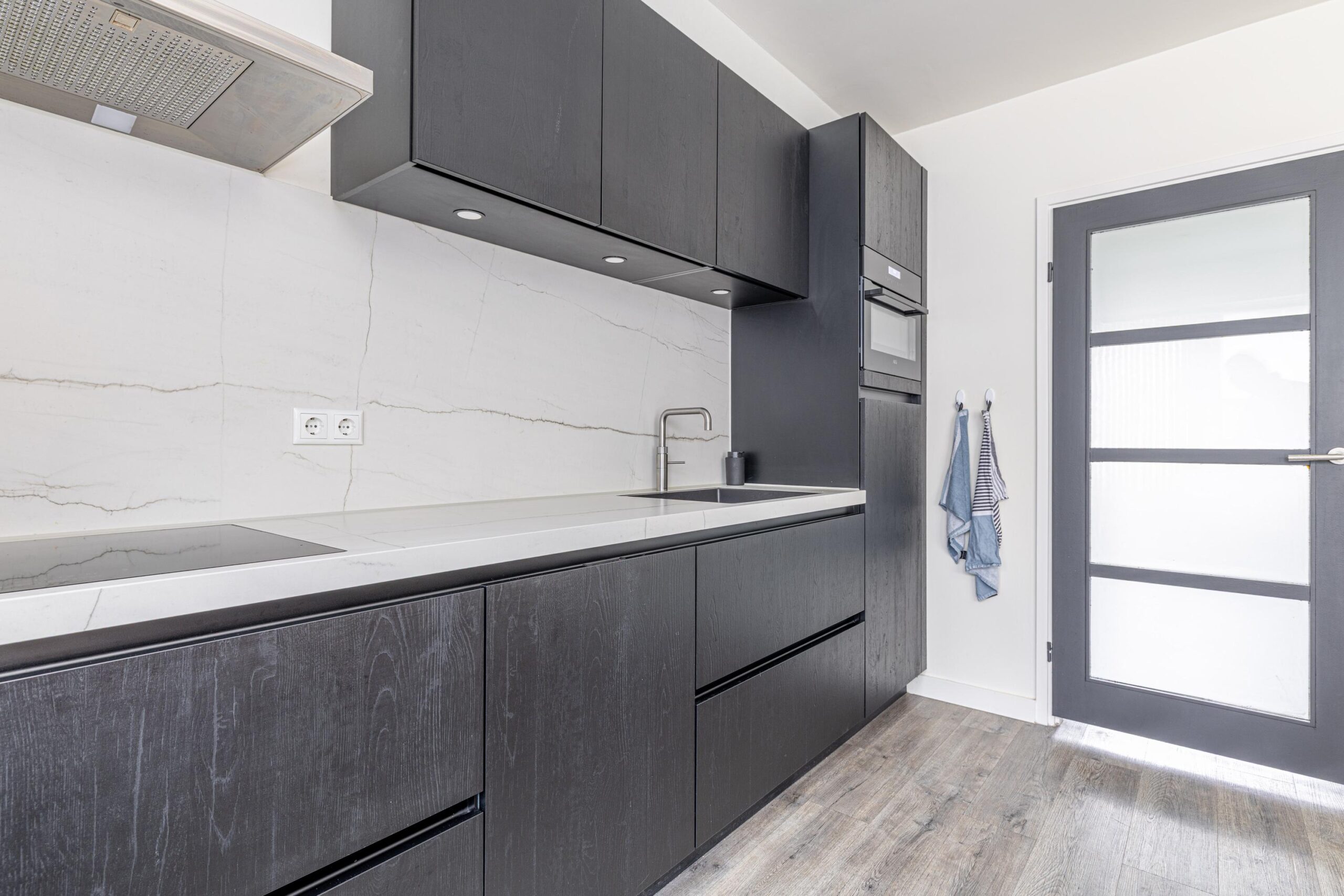 Je komt binnen in de hal, waar zich het toilet bevindt. Vanuit de hal is ook de keuken bereikbaar. De open keuken (2022) heeft een composiet aanrechtblad en achterwand en is voorzien van diverse inbouwapparatuur zoals een Quooker, koelkast, vaatwasser en een inductiekookplaat. De woonkamer heeft veel lichtinval door de grote raampartijen en een pvc vloer.